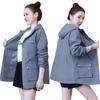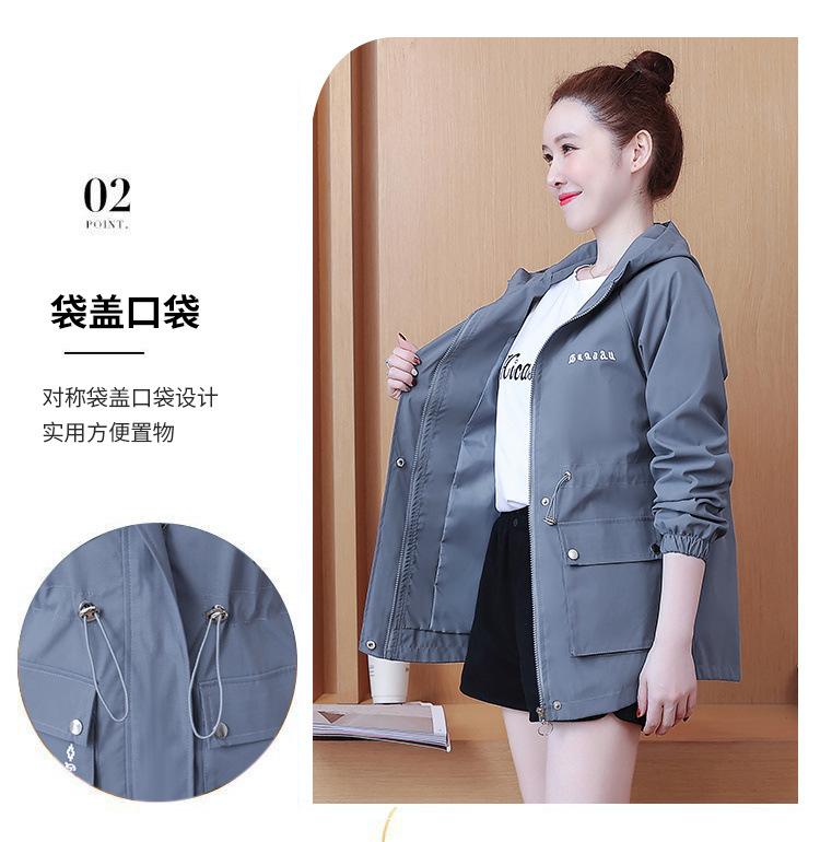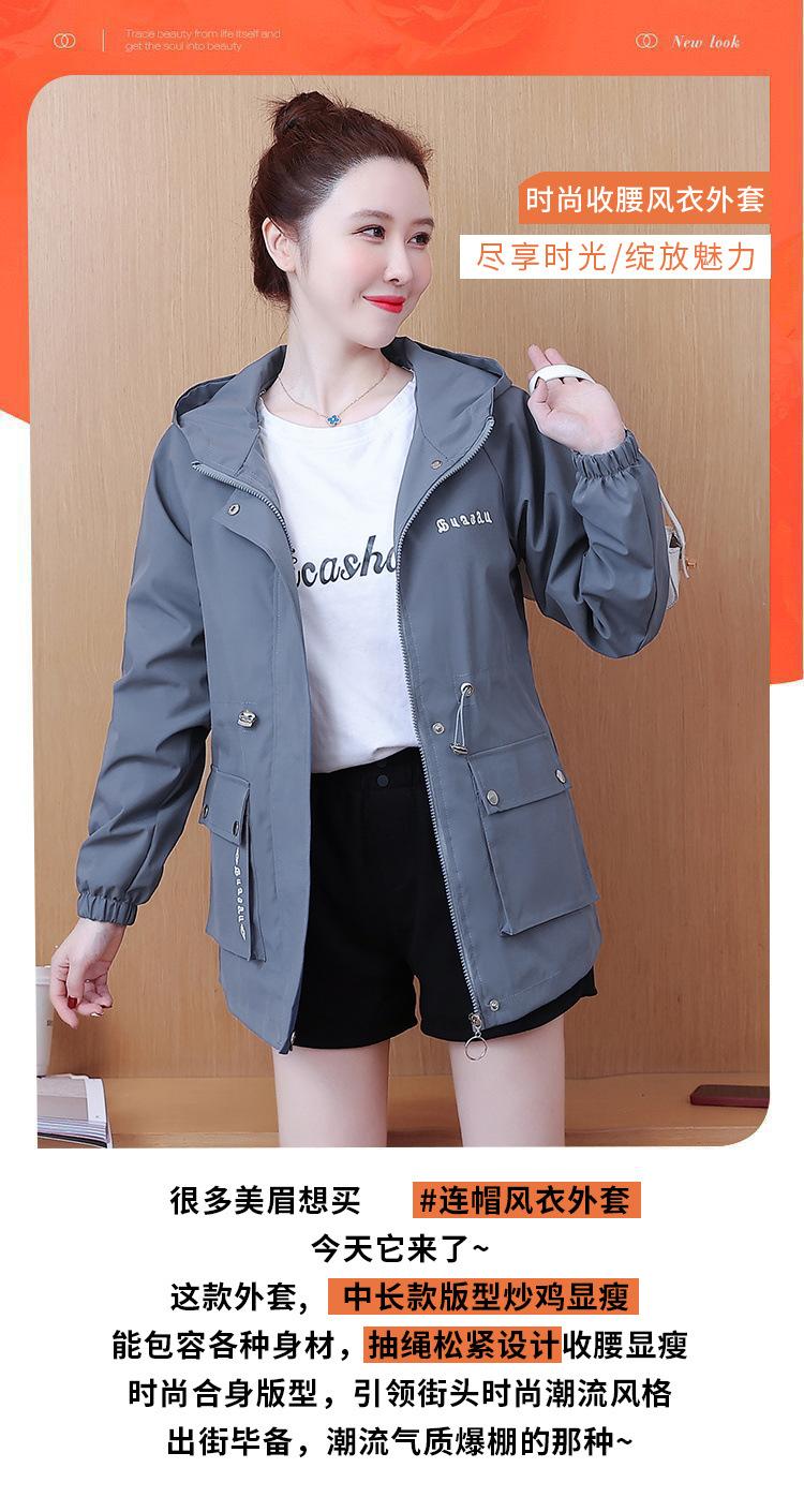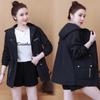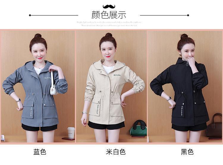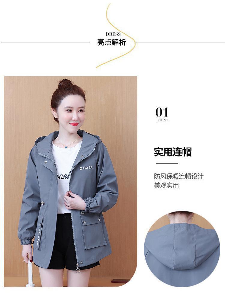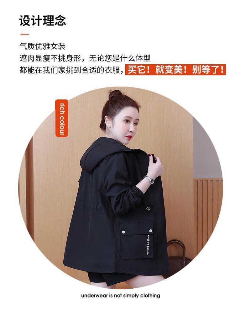 Chaqueta cortavientos para mujer, primavera y otoño 2024, estilo coreano, holgada, estilo occidental, con cintura pequeña, adelgazante, de longitud media, con capucha, a la moda.