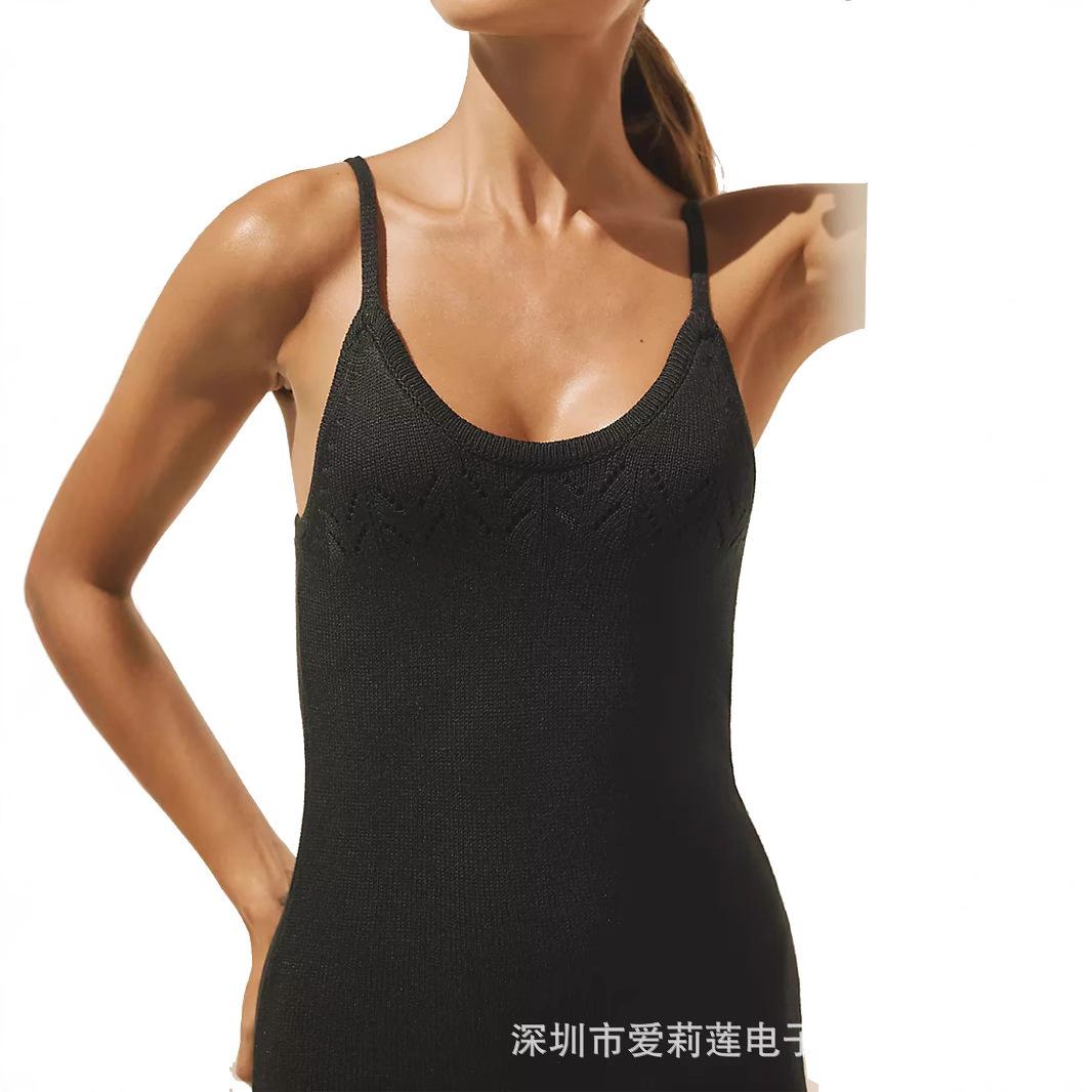 Primavera y Verano 2025 Nuevo Transfronterizo Amazon AliExpress Tejido Calado Color Sólido Casual Tirantes Moda Ropa Sexy