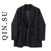 Chaqueta de traje QINSU para mujer, otoño 2024, nueva, holgada, adelgazante, de alta gama, pequeña, informal