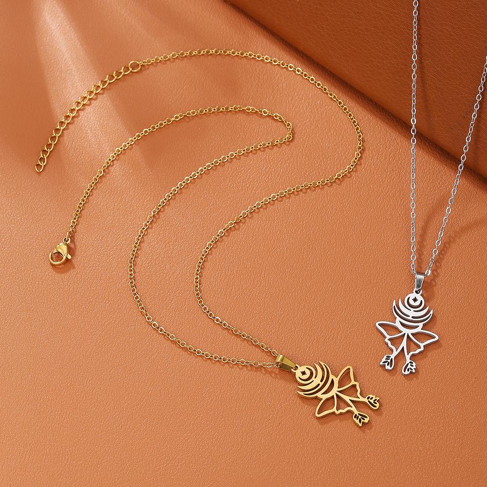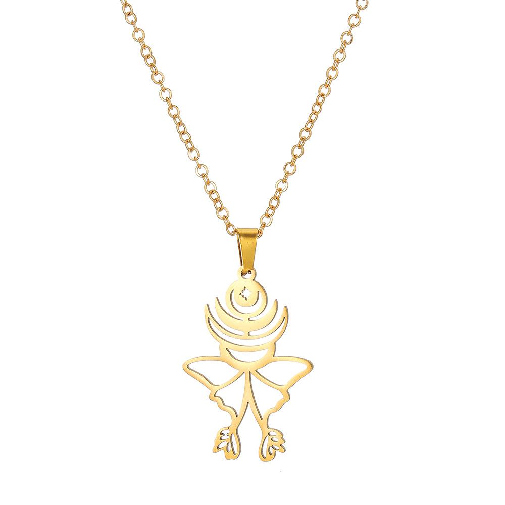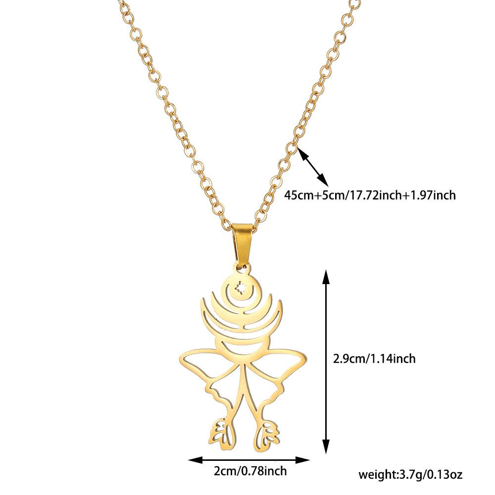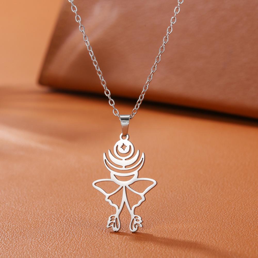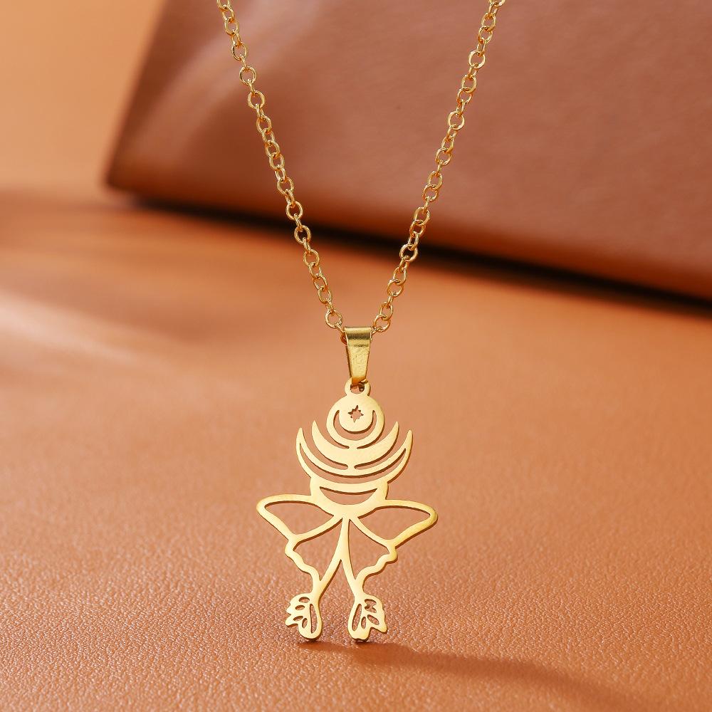 Collar de mariposa de acero inoxidable chapado en oro de 18 quilates con colgante de tótem lunar simple retro, joyería de nicho europea y americana.
