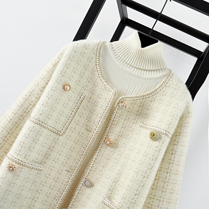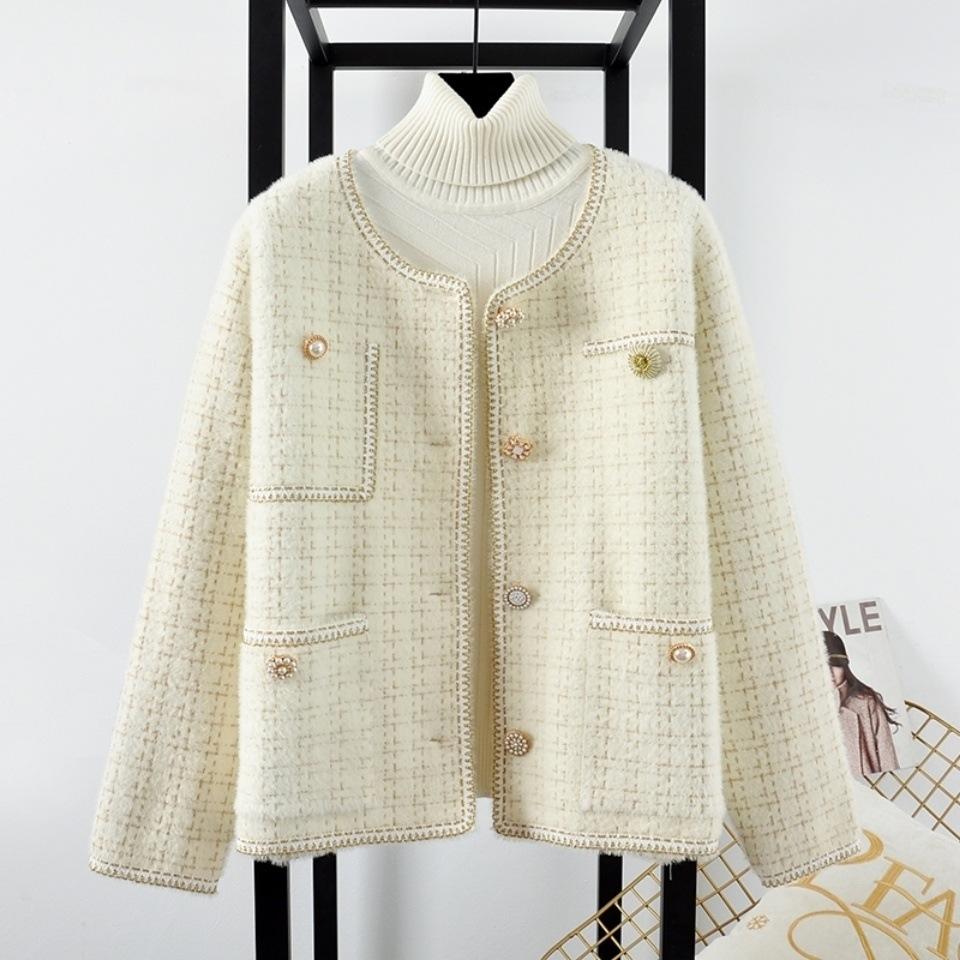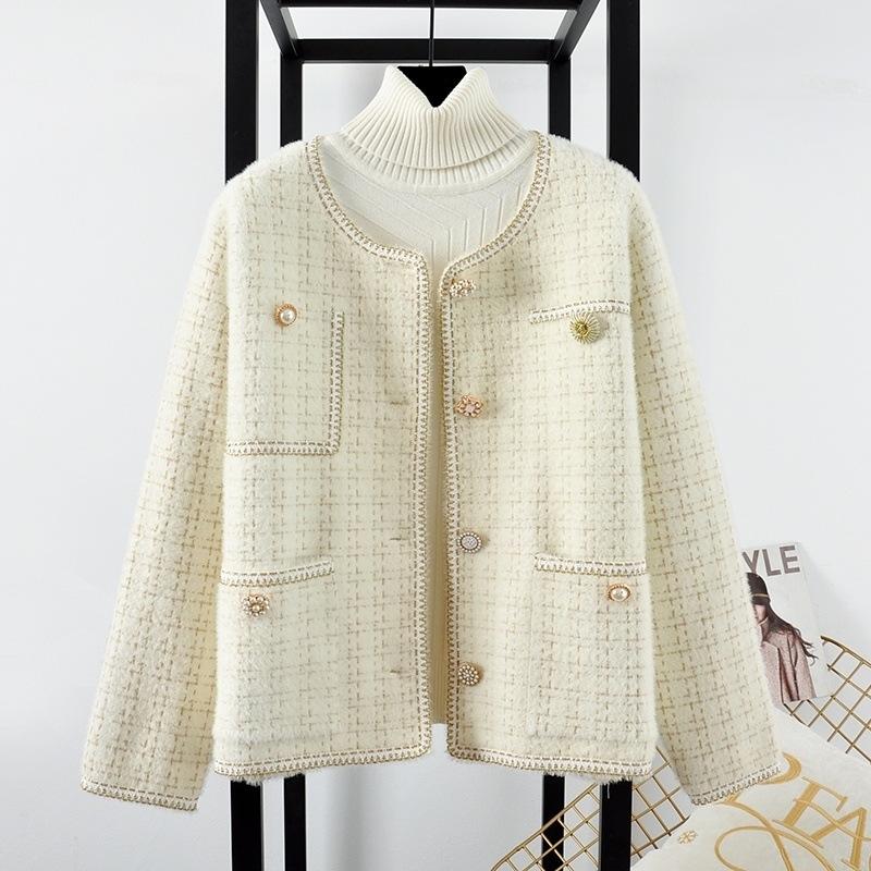 [Sin caída del cabello] Abrigo de piel de visón sintética para mujer, estilo nuevo de fragancia pequeña, cárdigan de invierno de estilo extranjero, ropa de mujer para otoño e invierno