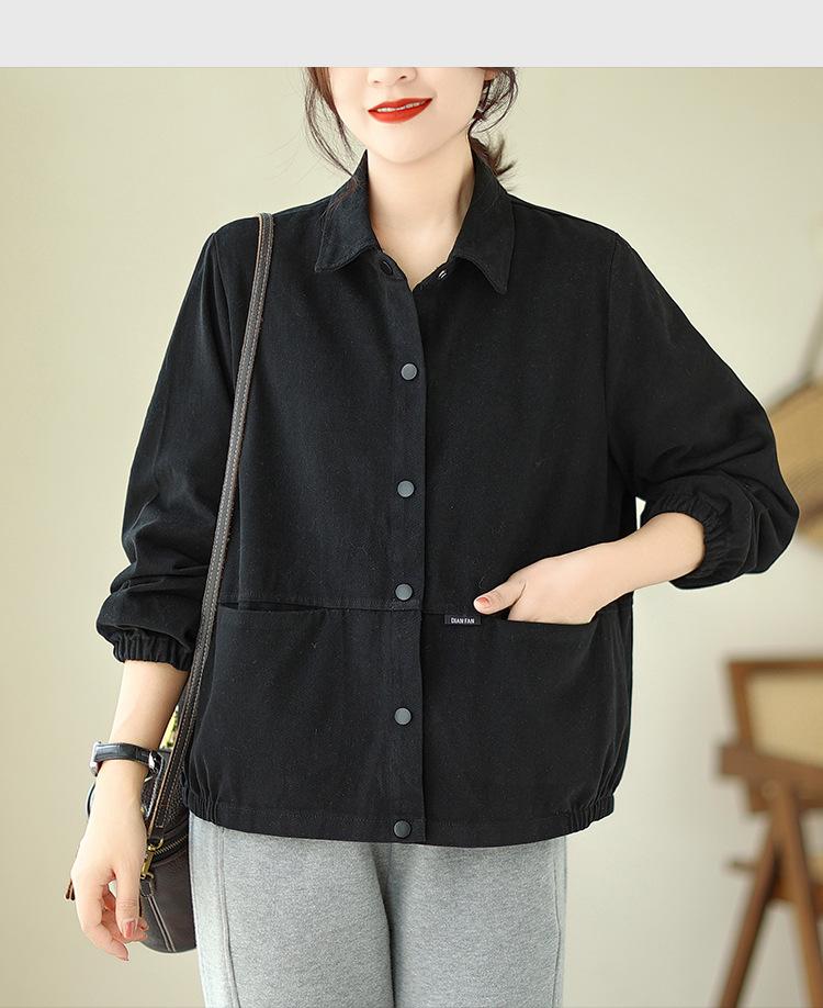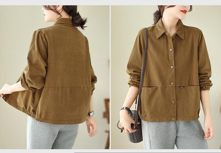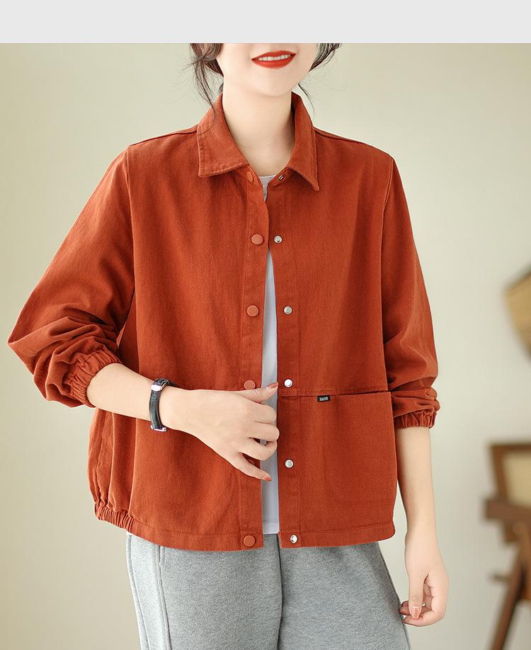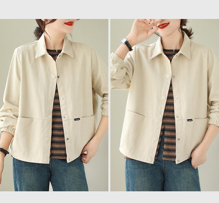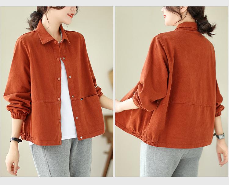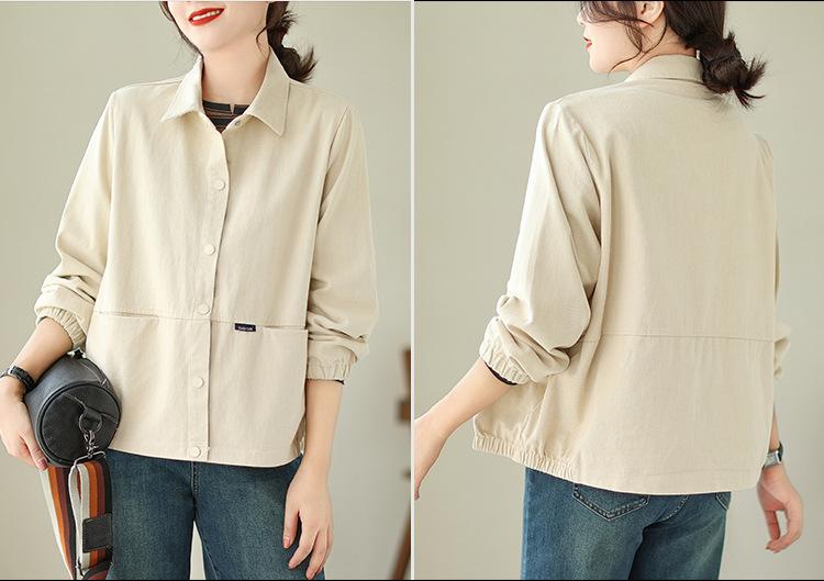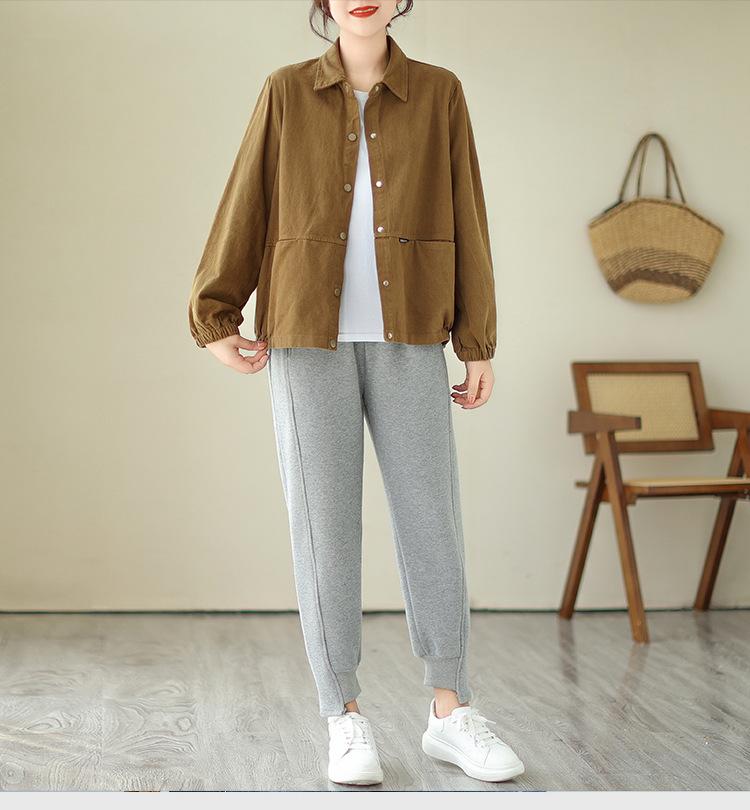 Chaqueta nueva de otoño 2024 con solapa, informal, holgada, ajustada, coreana, de manga larga, de color sólido, para mujer