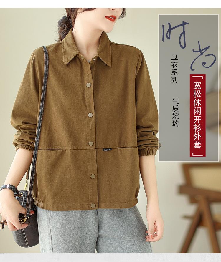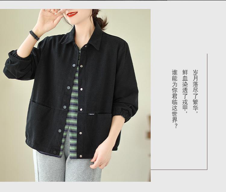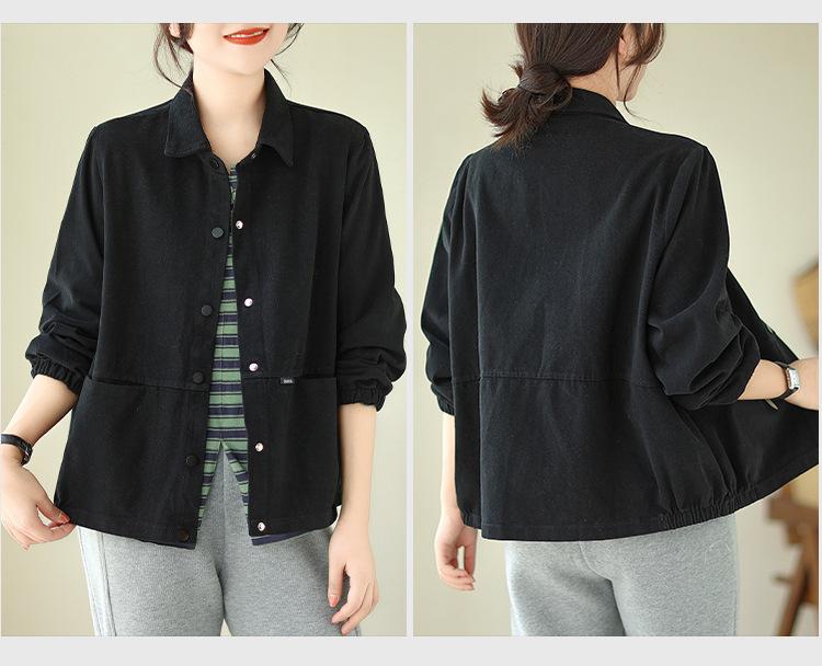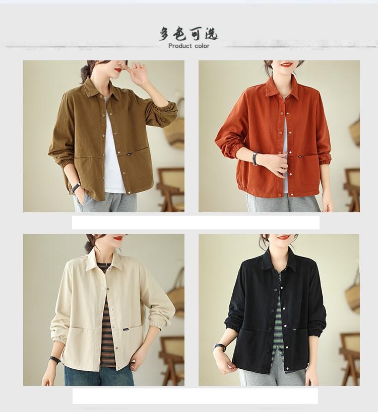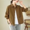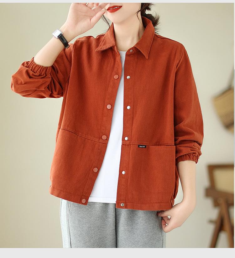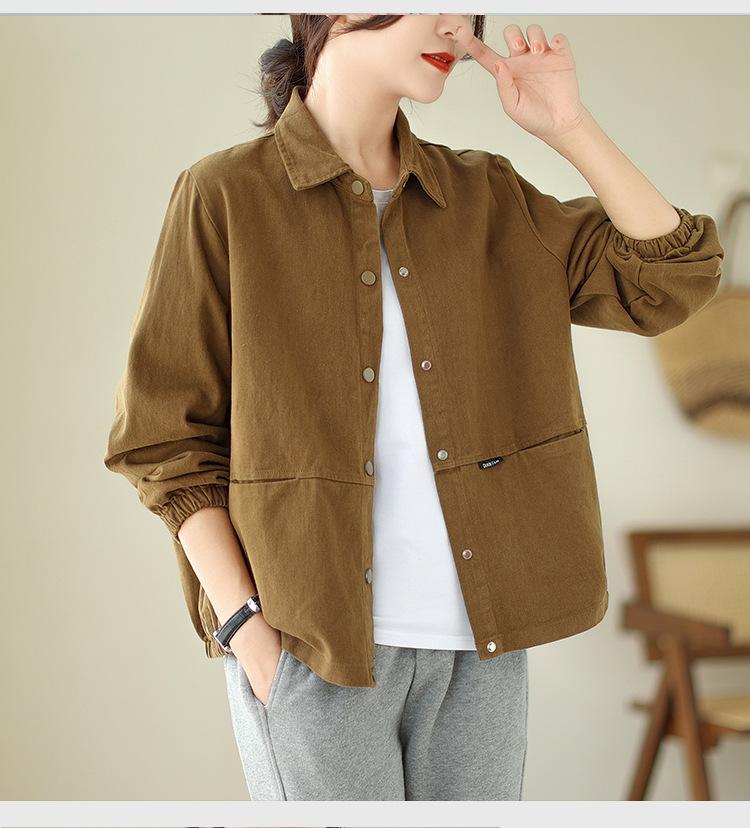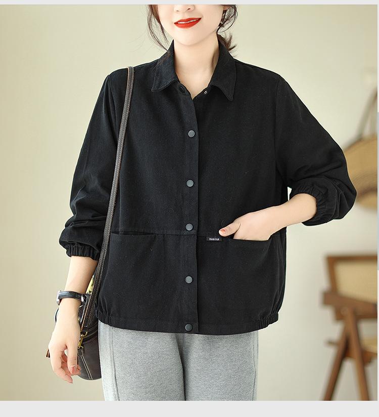 Chaqueta nueva de otoño 2024 con solapa, informal, holgada, ajustada, coreana, de manga larga, de color sólido, para mujer
