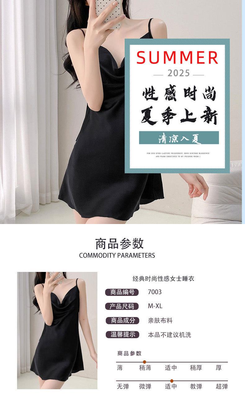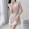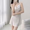 Pijama Sexy de Seda de Hielo para Mujer Verano Nuevo Estilo de Alta Gama Cuello Oscilante Hermoso Espalda Descubierta Camisola para Usar Fuera Ropa de Casa de Seda