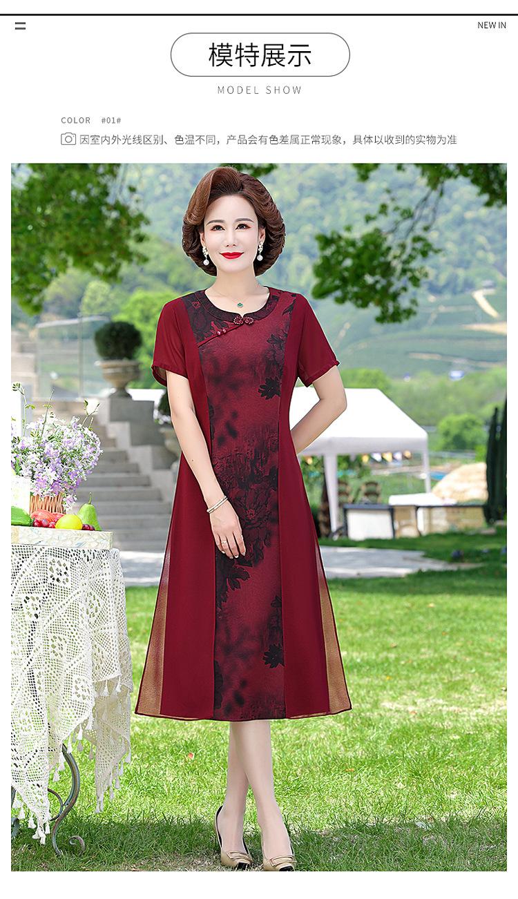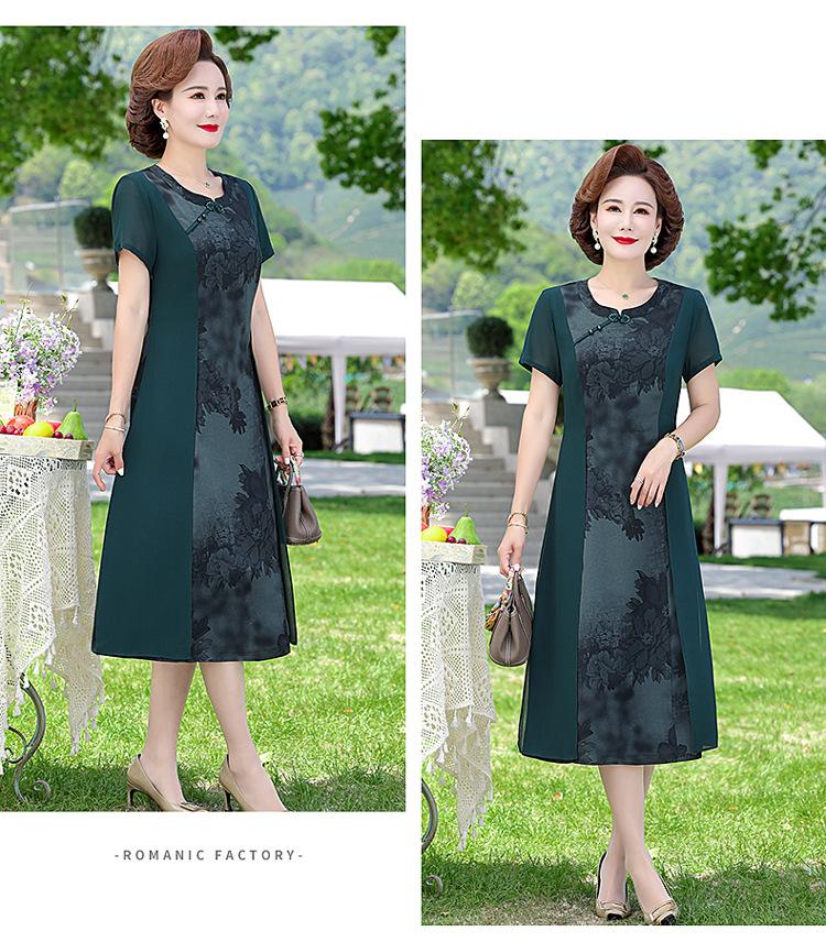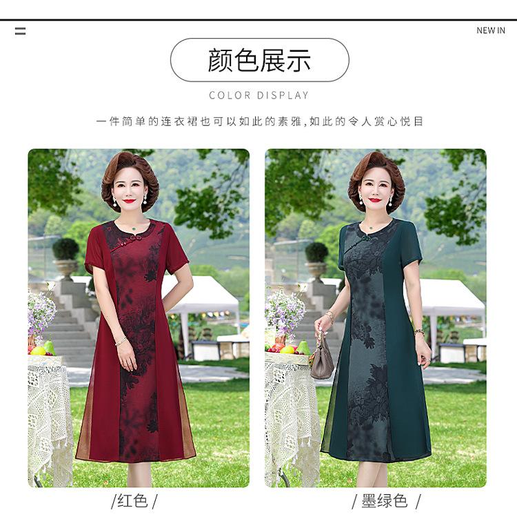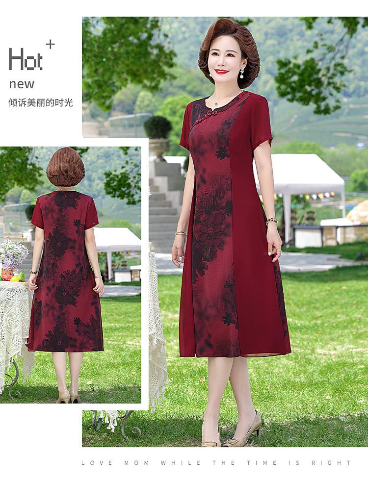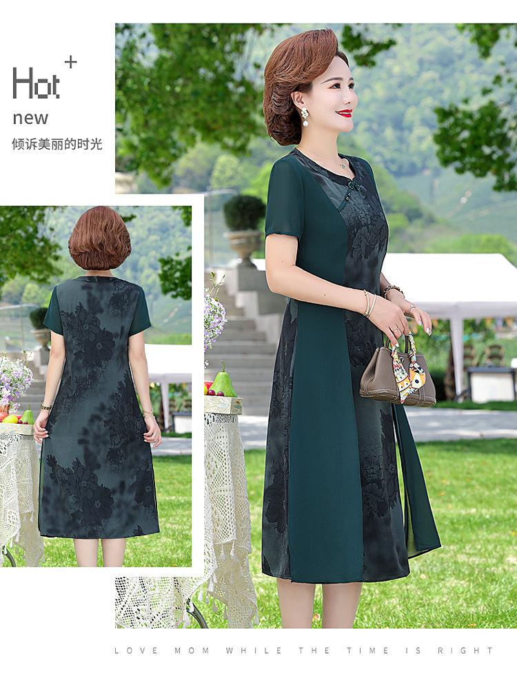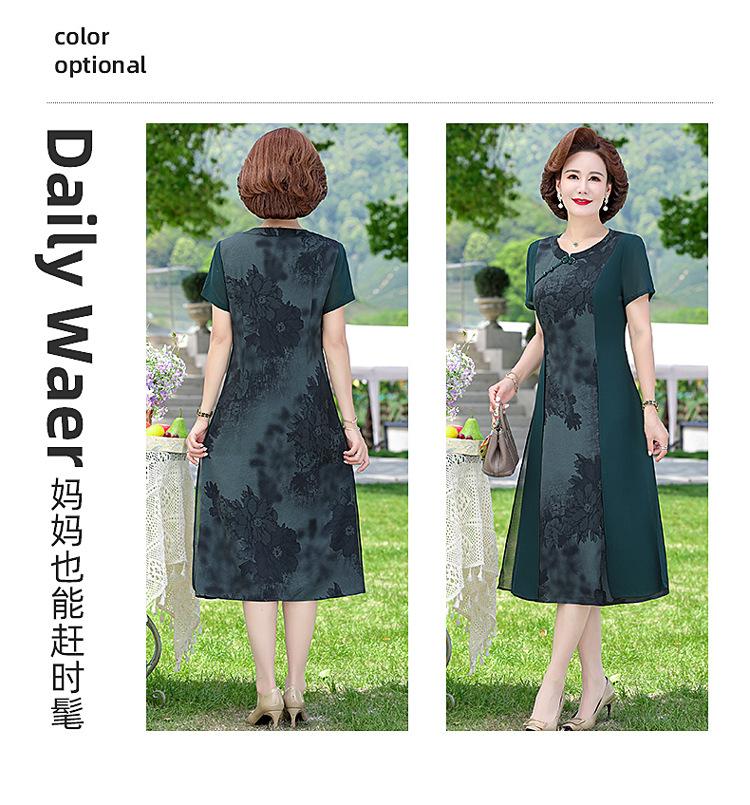 Vestido de manga corta para mamá, para mujer, verano 2024, nuevo estilo, estilo occidental, para mediana edad, elegante, floral, falda cheongsam, adelgazante