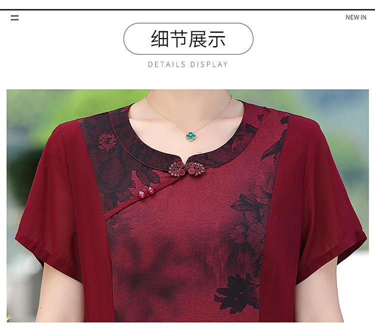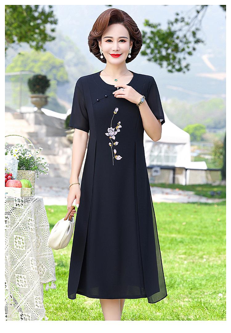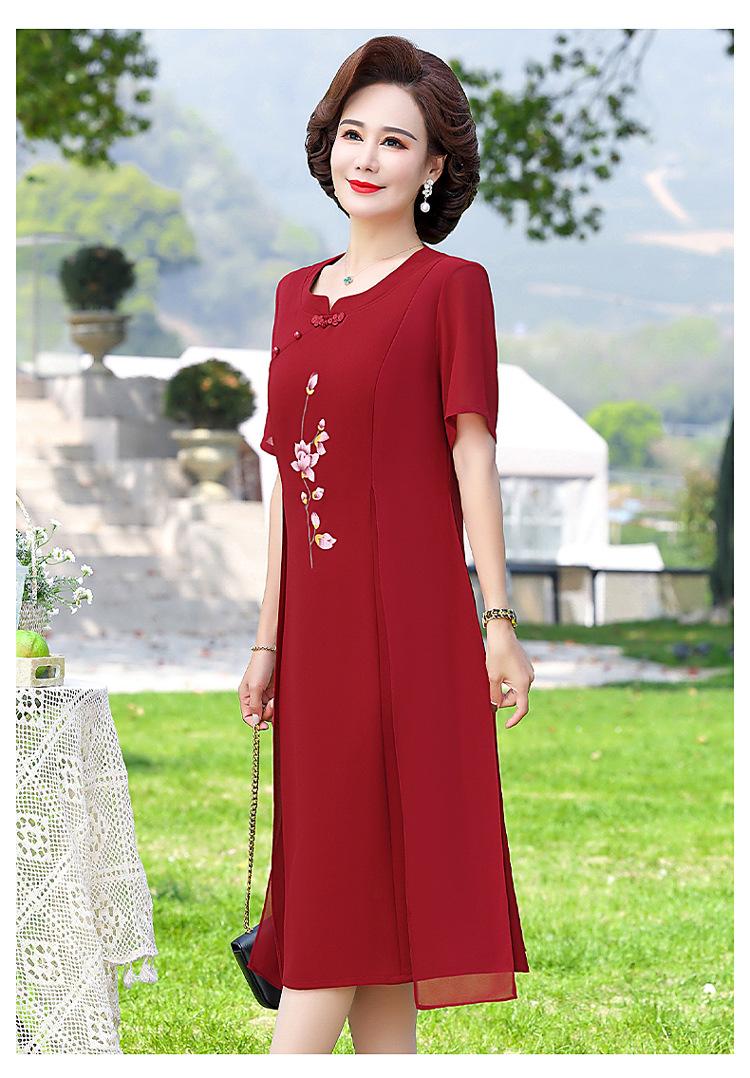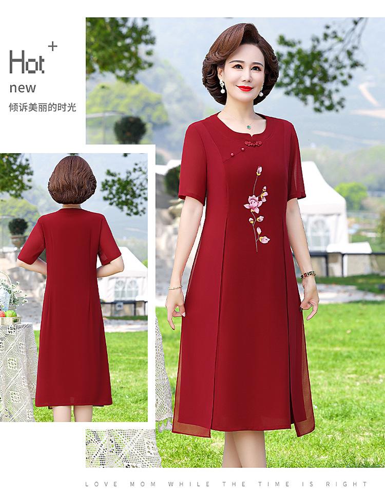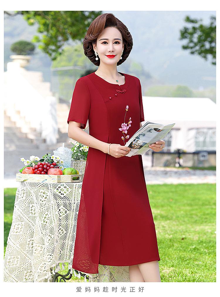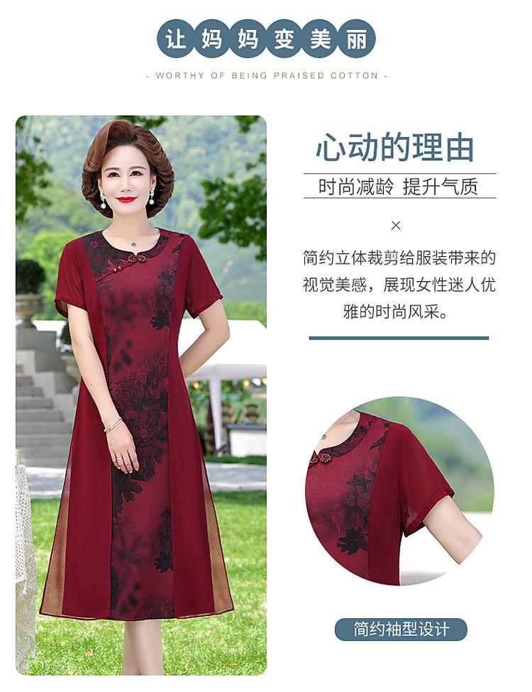 Vestido de manga corta para mamá, para mujer, verano 2024, nuevo estilo, estilo occidental, para mediana edad, elegante, floral, falda cheongsam, adelgazante