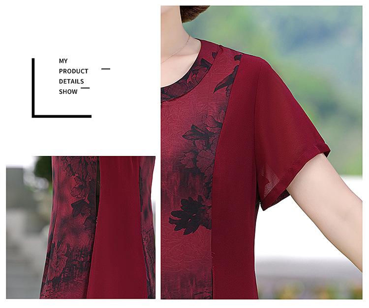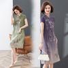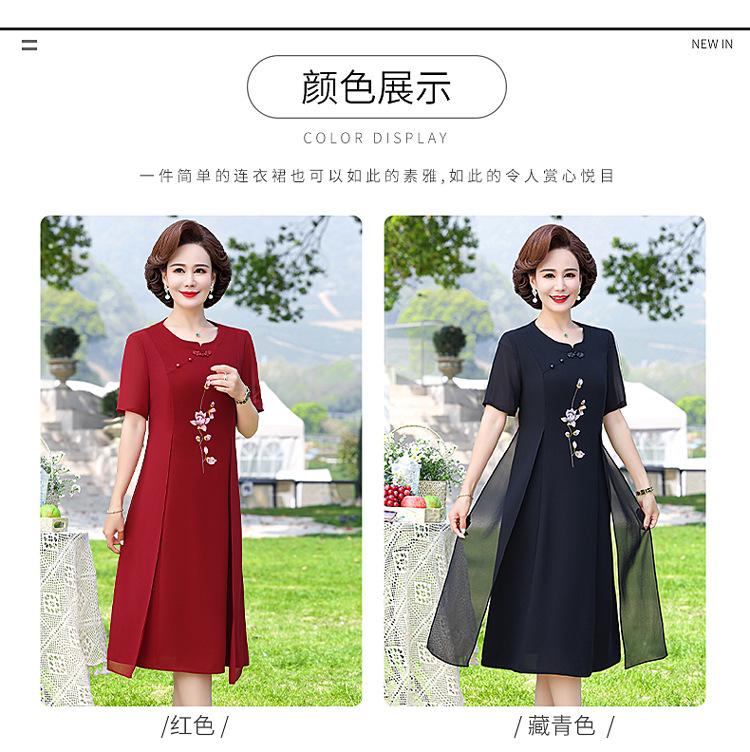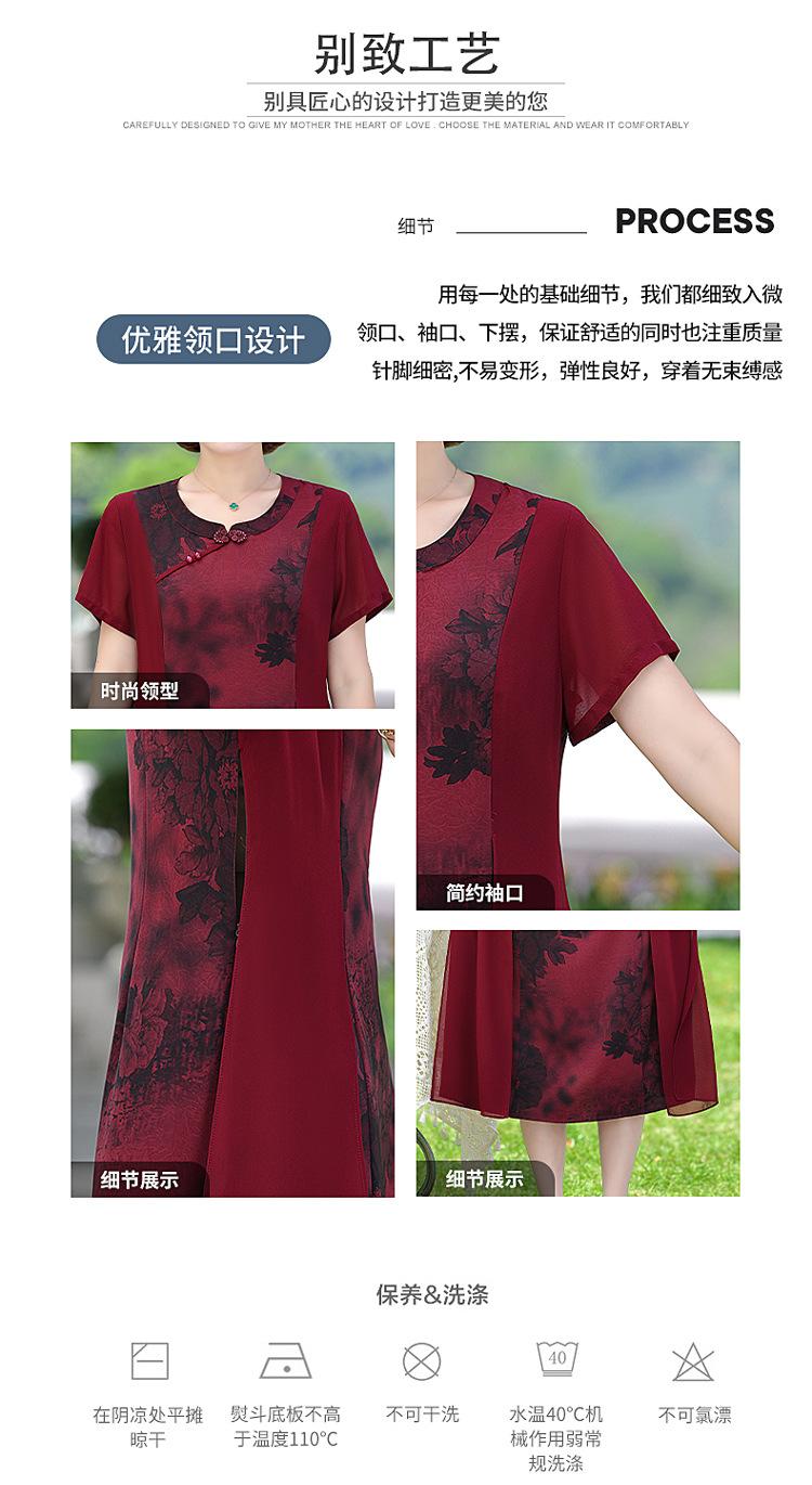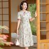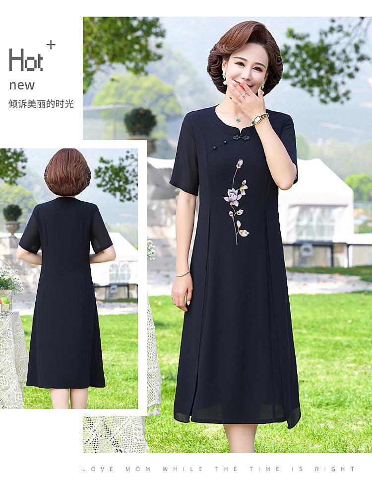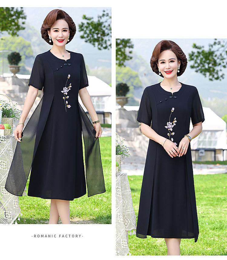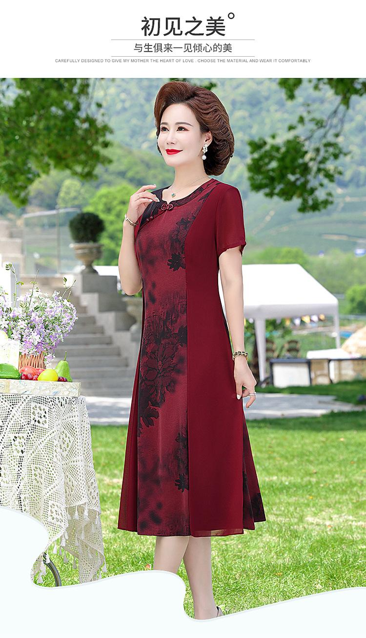 Vestido de manga corta para mamá, para mujer, verano 2024, nuevo estilo, estilo occidental, para mediana edad, elegante, floral, falda cheongsam, adelgazante