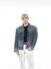 Chaqueta vaquera estilo americano con degradado retro para hombre, nueva marca de moda de otoño e invierno, chaqueta informal holgada con solapa