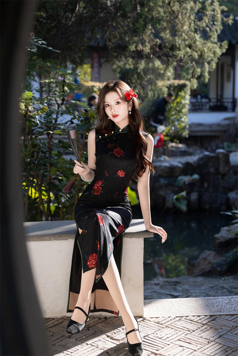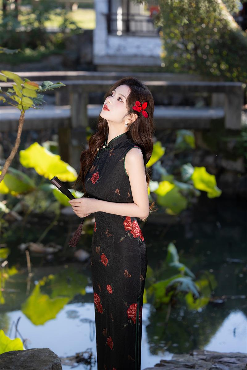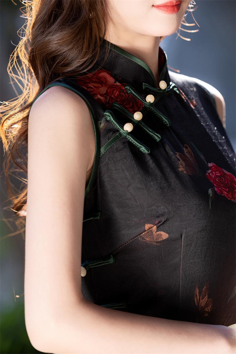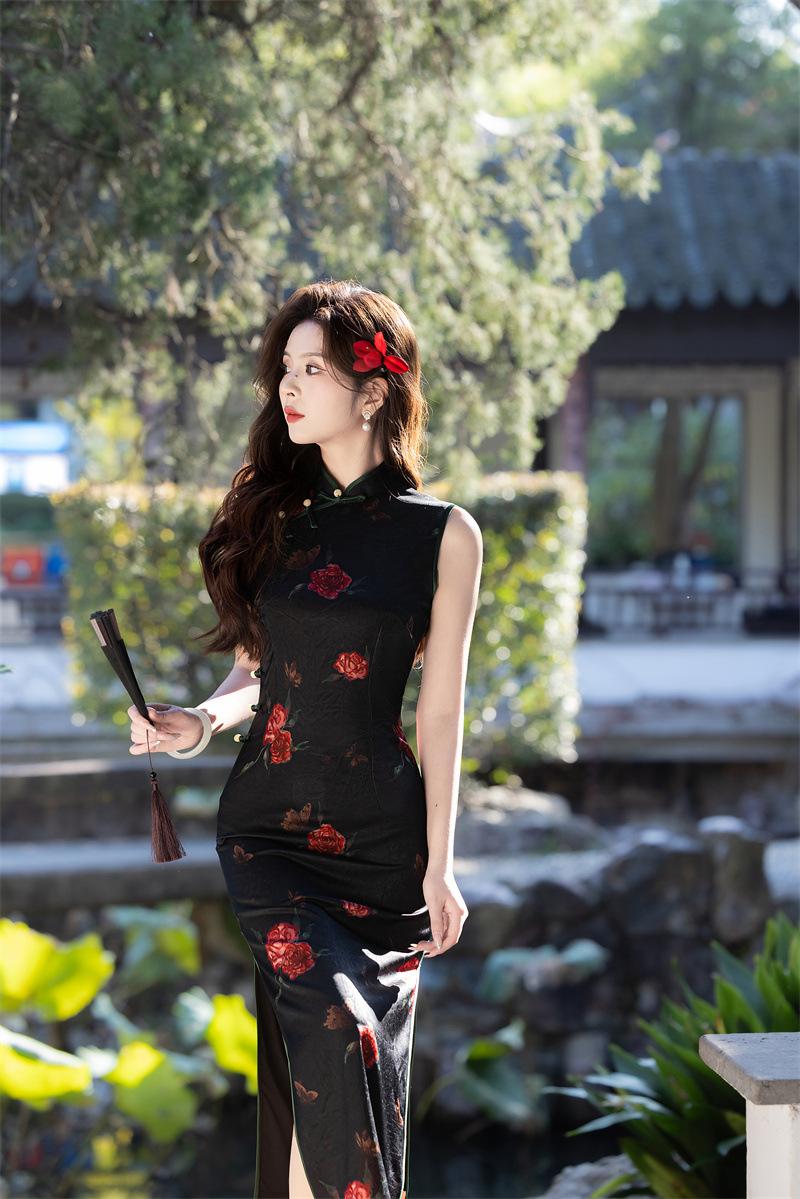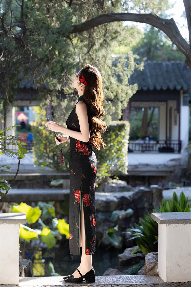 Características:Cheongsam nuevo, tela, textura suave, buena caída, no se encoge, no se decolora, no hace bolitas, ligera elasticidad, más característico de la nación china, bienvenido a comprar,