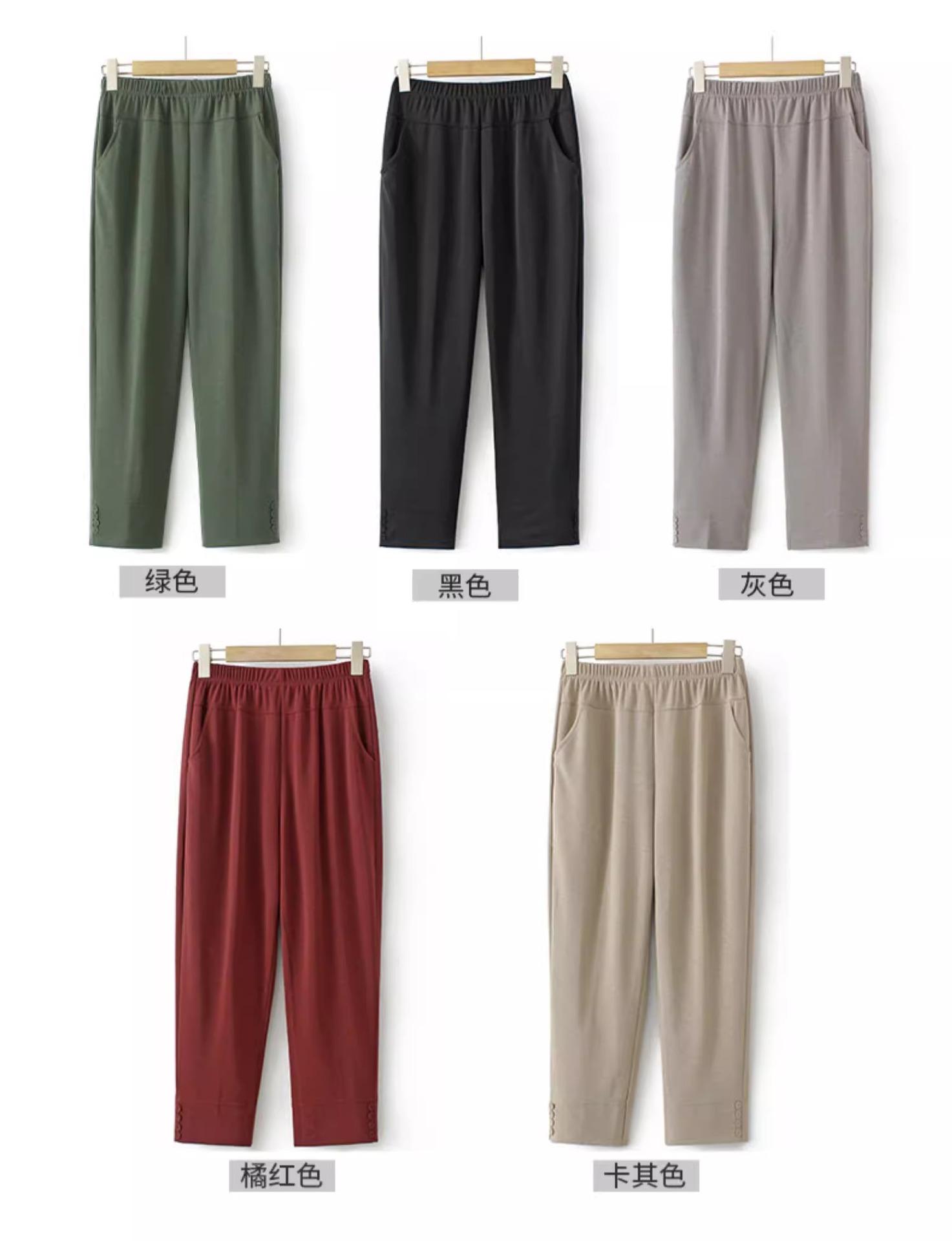 Pantalones de Mamá Verano Delgados Seda de Hielo Pantalones Recortados para Mujeres de Mediana Edad y Ancianas Talla Extra Pantalones Rectos Sueltos para la Abuela