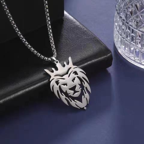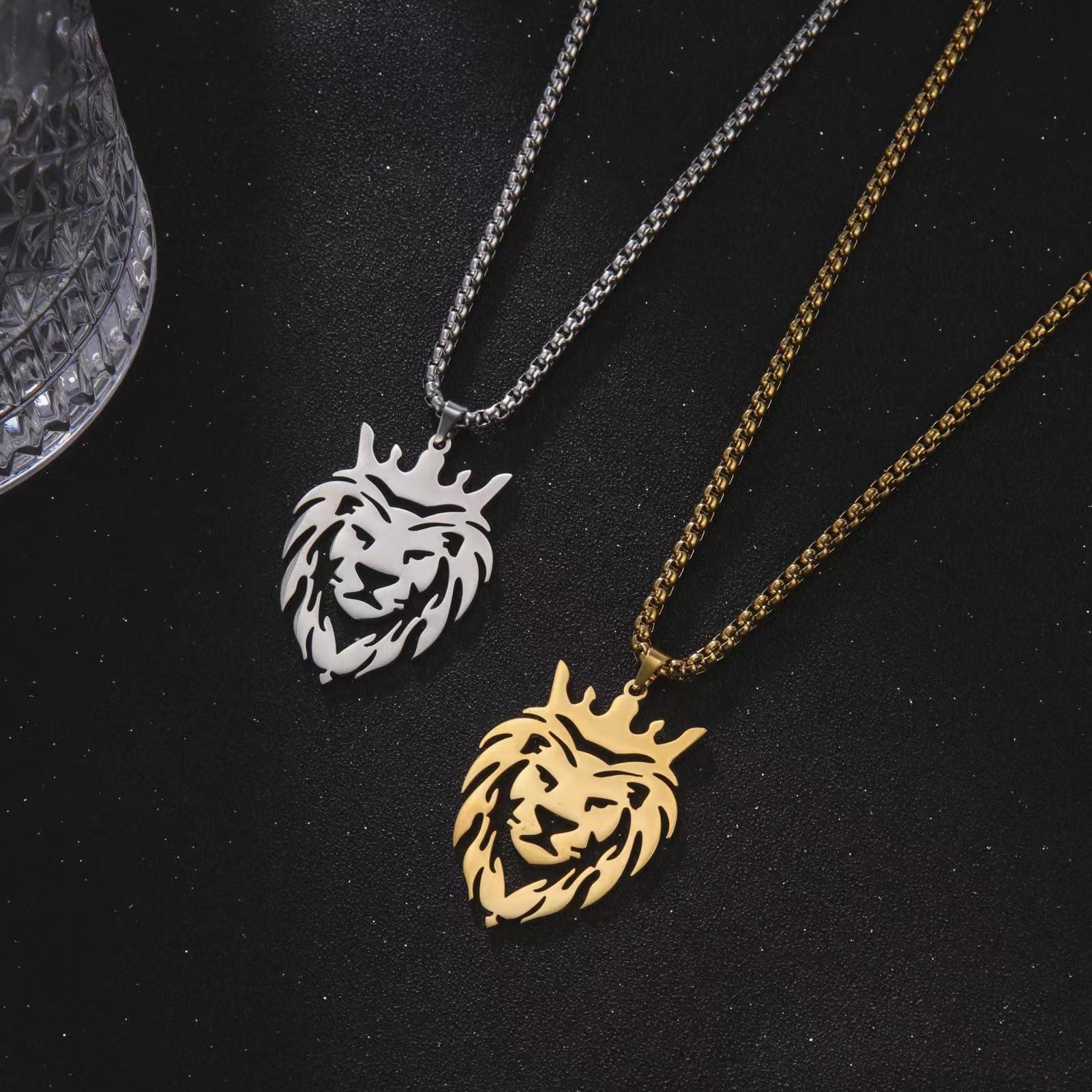 Collar con colgante de Rey León hueco, joyería de acero de titanio, cadena de personalidad con hueso de serpiente, cadena corta para hombres y mujeres, temperamento frío, accesorios de moda.