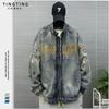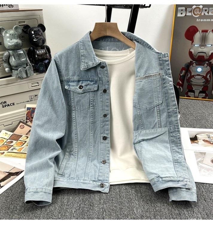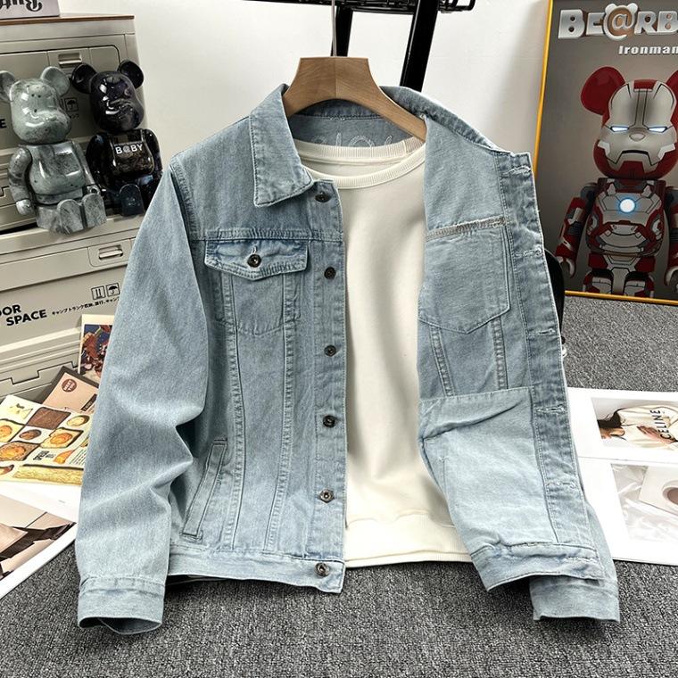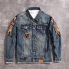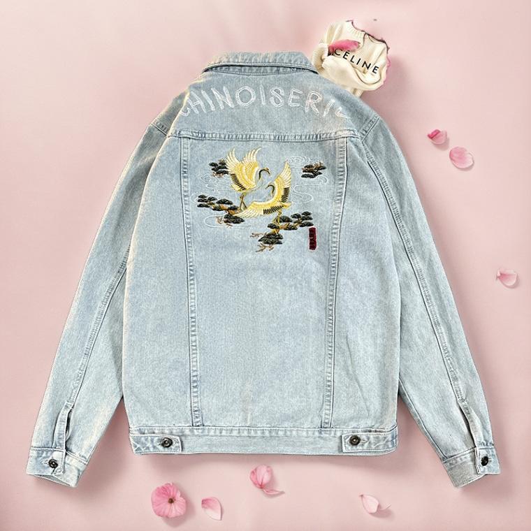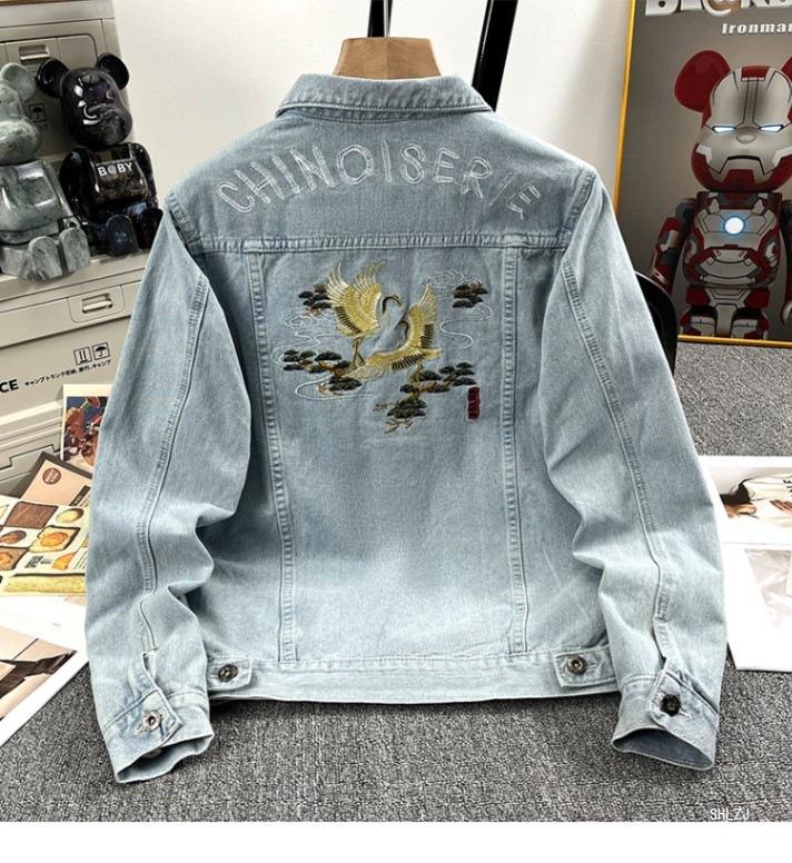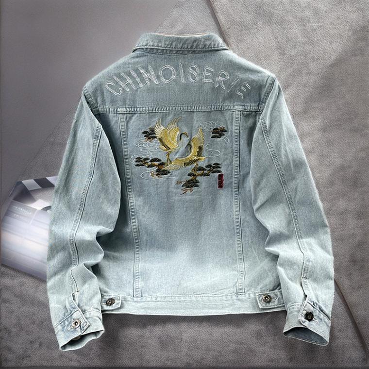 Chaqueta de mezclilla bordada nueva de primavera y otoño para hombre con patrón de grulla, marca de moda, lavada, vintage, chaqueta ajustada, tendencia