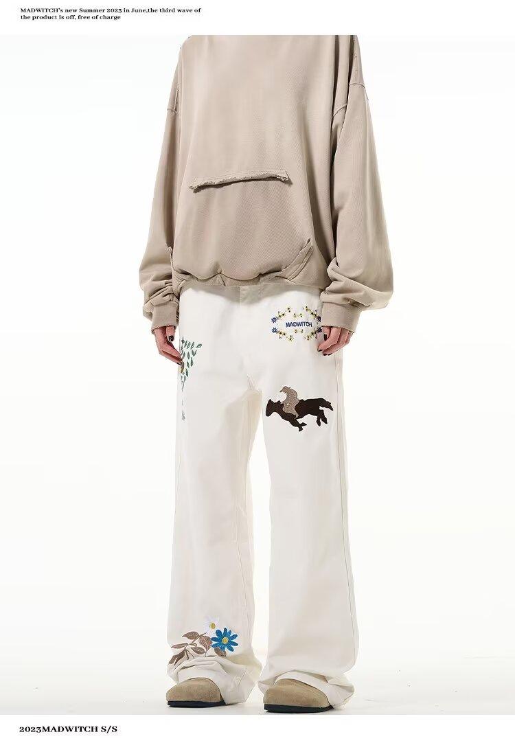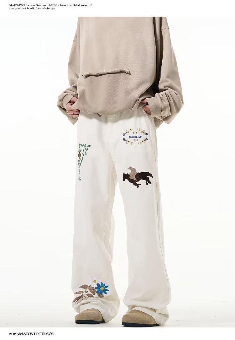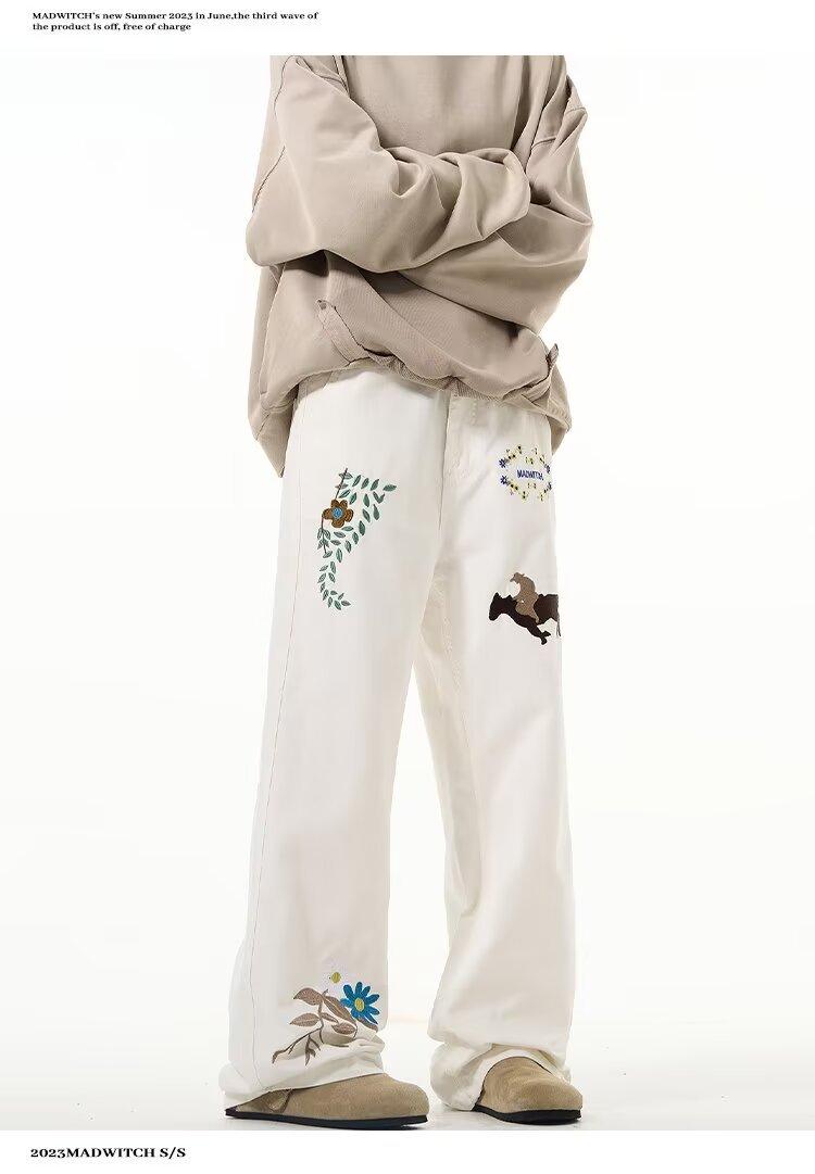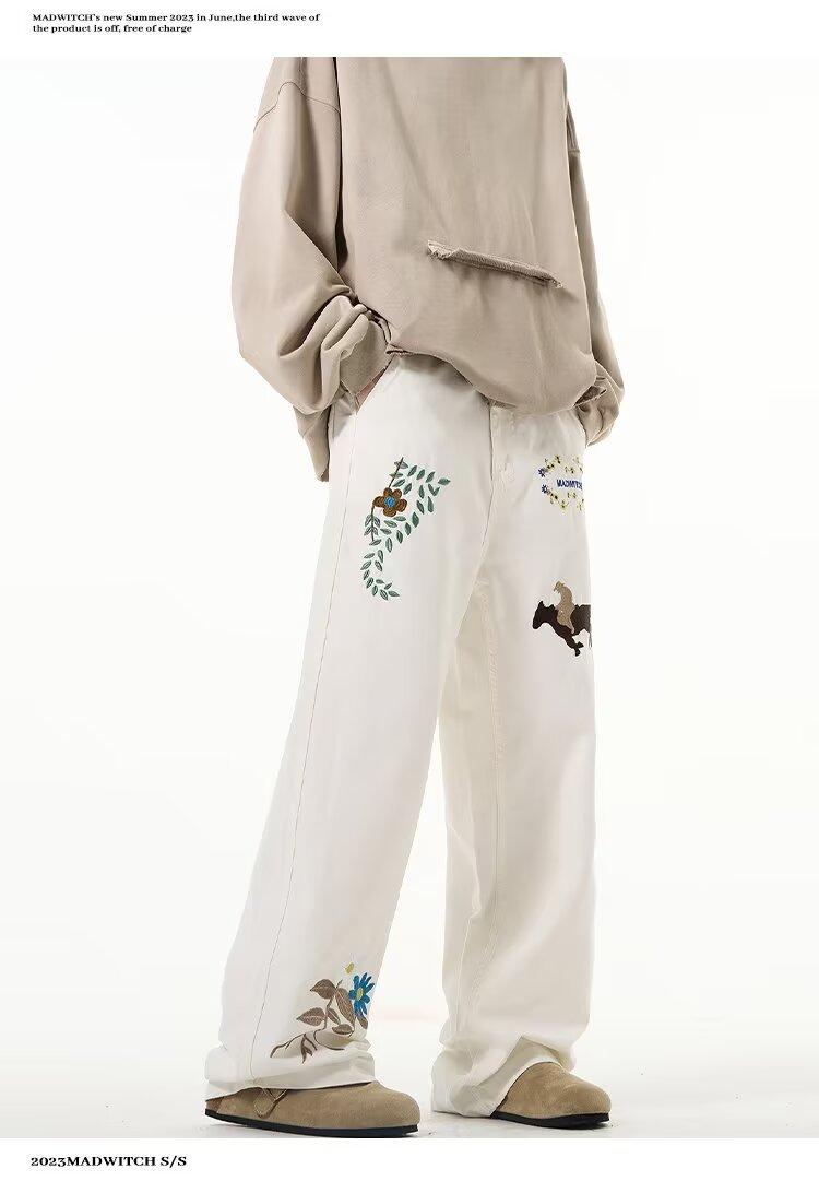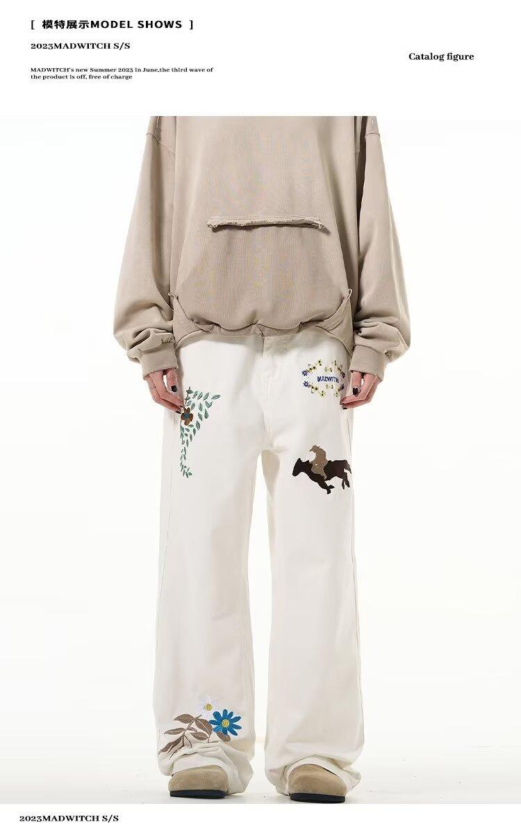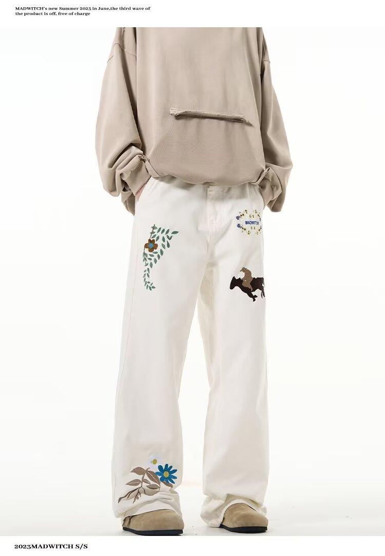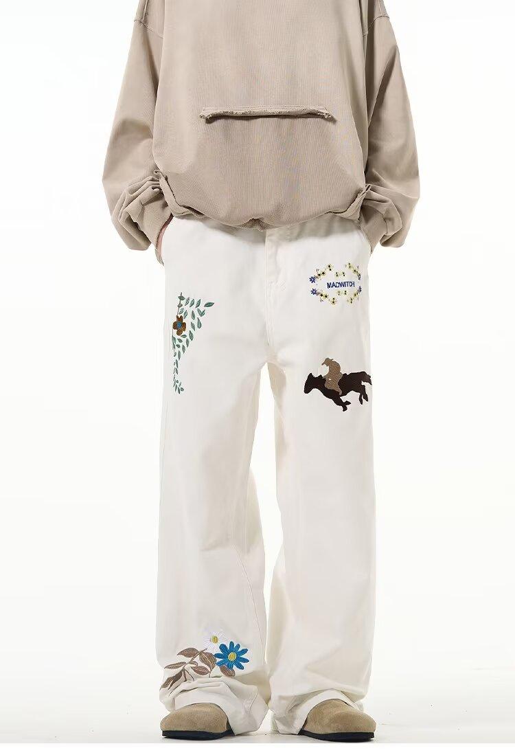 Diseño Sense Flores y Flores Caballo Humano Bordado Jeans Rectos Pantalones Casuales Holgados de Moda Otoño 2024 para Mujer