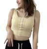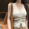Camisola de punto para mujer, ropa interior pura y sexy para chica, nueva prenda exterior de verano 2023, top corto sin mangas con huecos