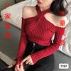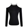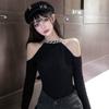 Diseño Otoño y Primavera 2025 Top Ajustado Sexy Halter Cuello Descubierto Manga Larga Negro para Mujer Camiseta Básica Tejida para Mujer