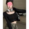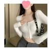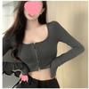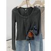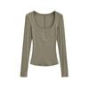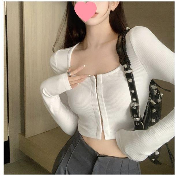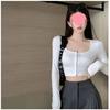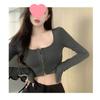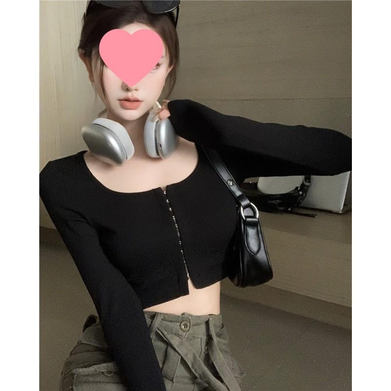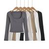 Camiseta ajustada de manga larga con cuello en U y corte bajo para mujer, estilo europeo y americano, sexy, de cintura corta, al por mayor