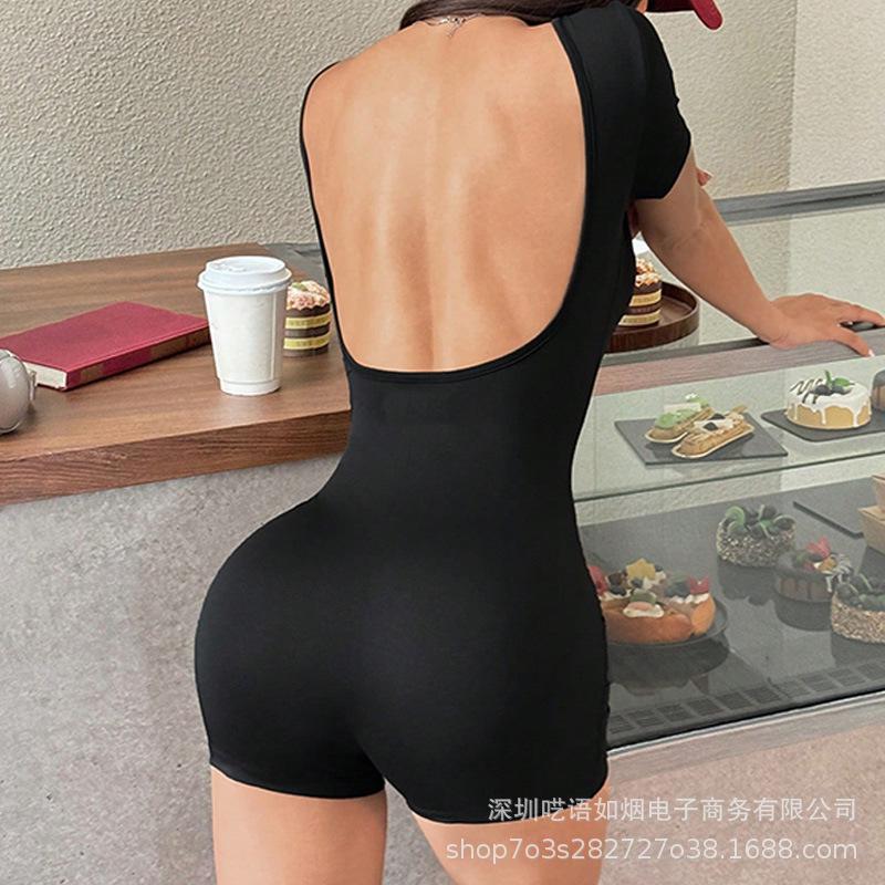 2025 Nuevo Europeo y Americano Transfronterizo Sexy Ajustado Sexy Chica Caliente Espalda Descubierta Deportivo Verano Mono Corto para Mujer