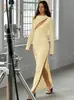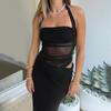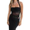 Moda Europea y Americana Estilo Sexy Vestido con Costuras de Malla Corte Slim Sin Espalda Color Sólido Cuello Halter Elegante Vestido Largo para Mujer