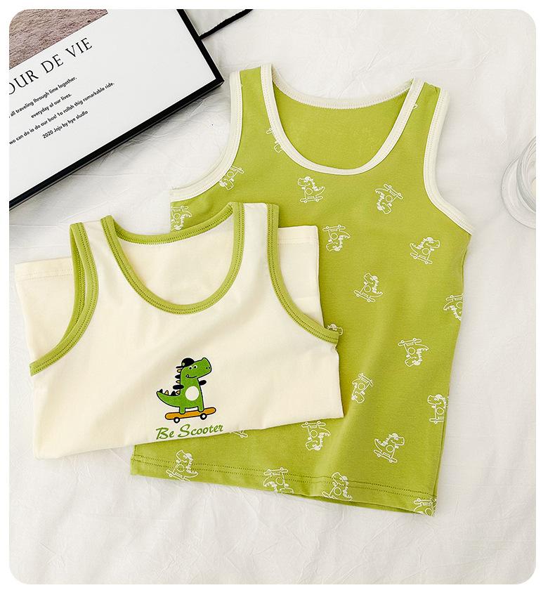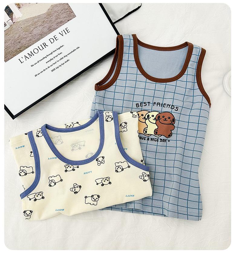 Chaleco de algodón y licra para niños, de verano 2025, con forma de I y estampado de dibujos animados multicolor, de una sola pieza, para niños y niñas.