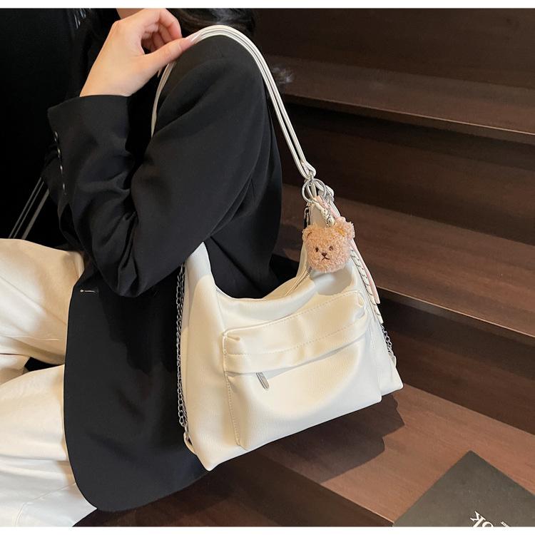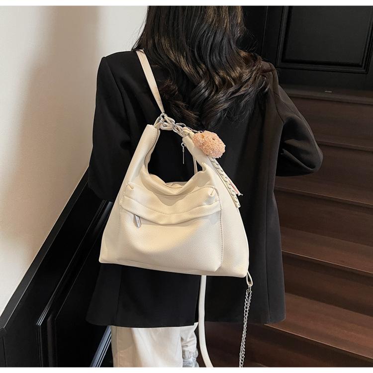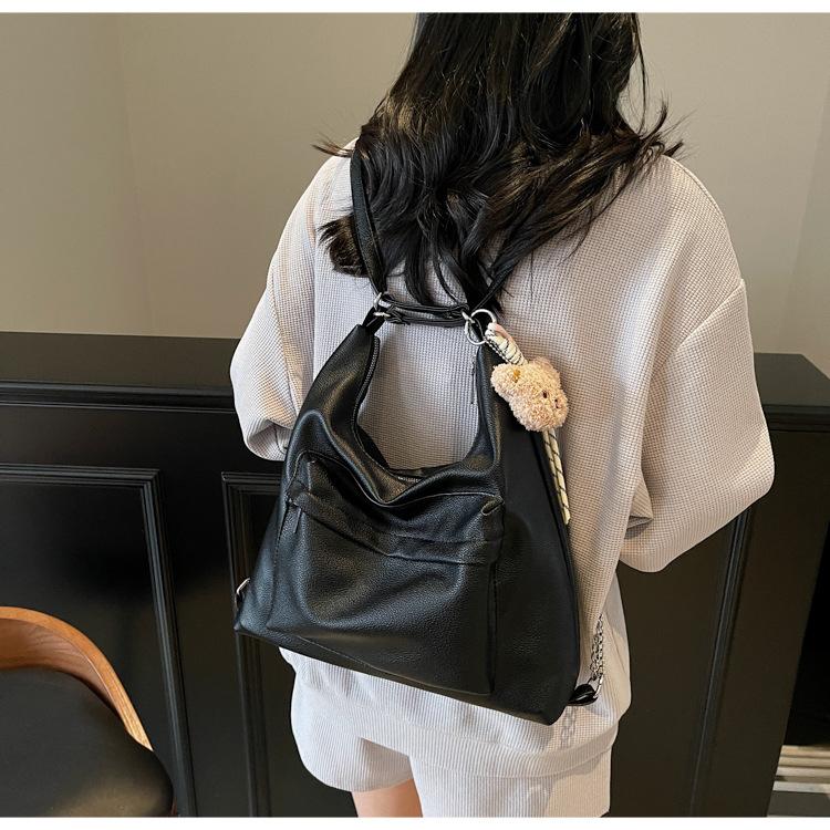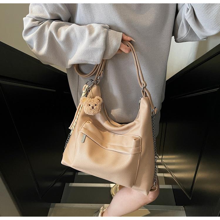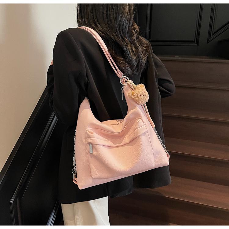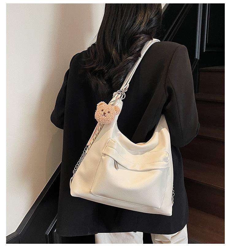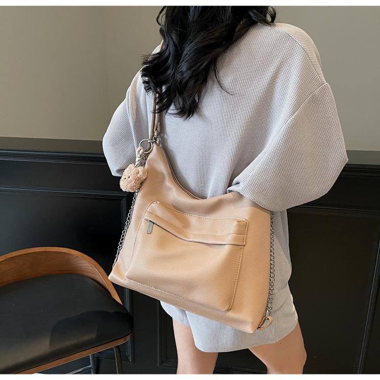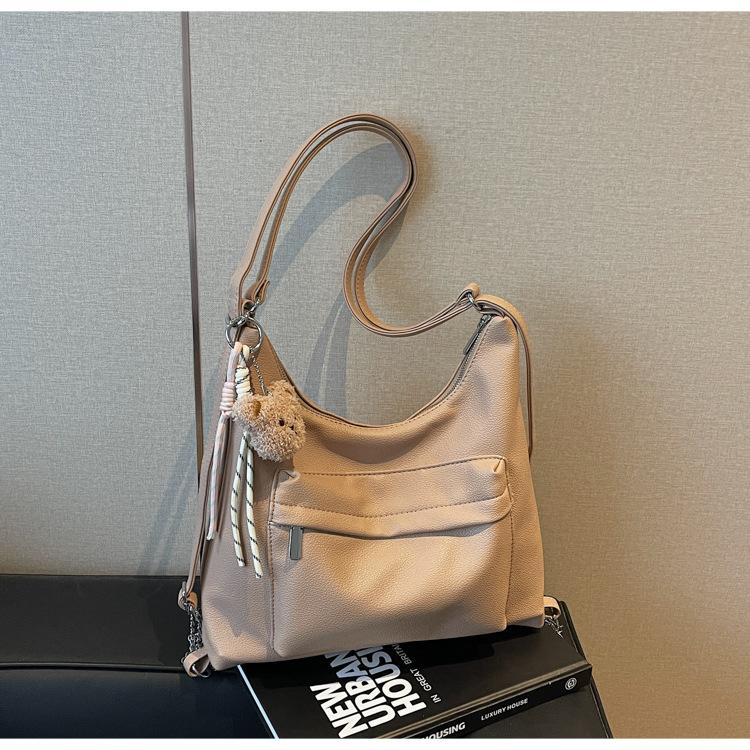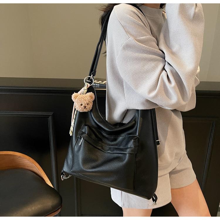 Bolso de mano de hombro de gran capacidad, de cuero suave y sencillo, personalizado, de color sólido, con múltiples compartimentos, para mujer, primavera de 2025