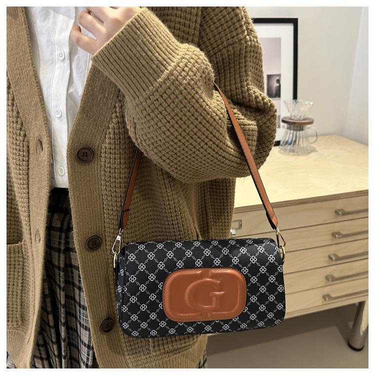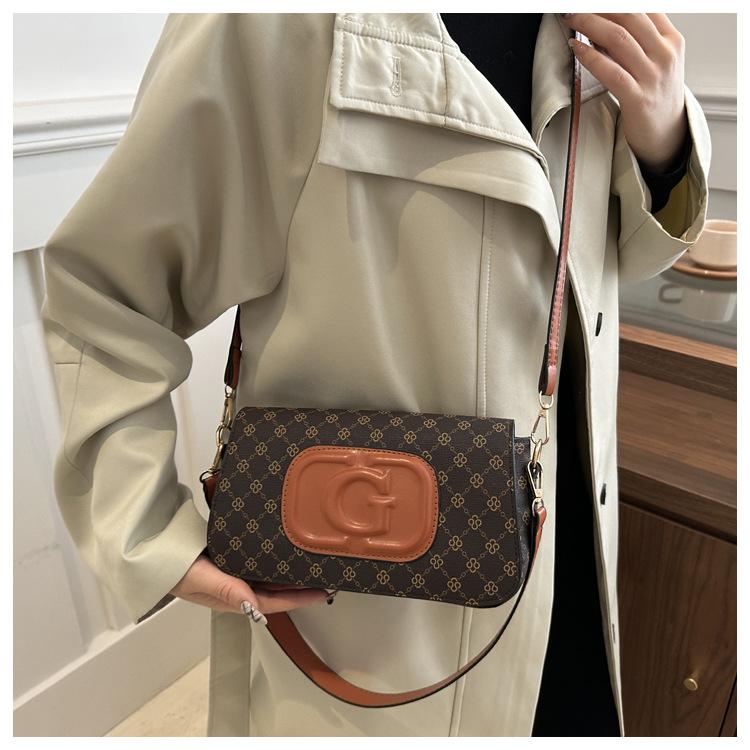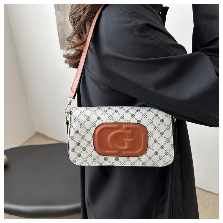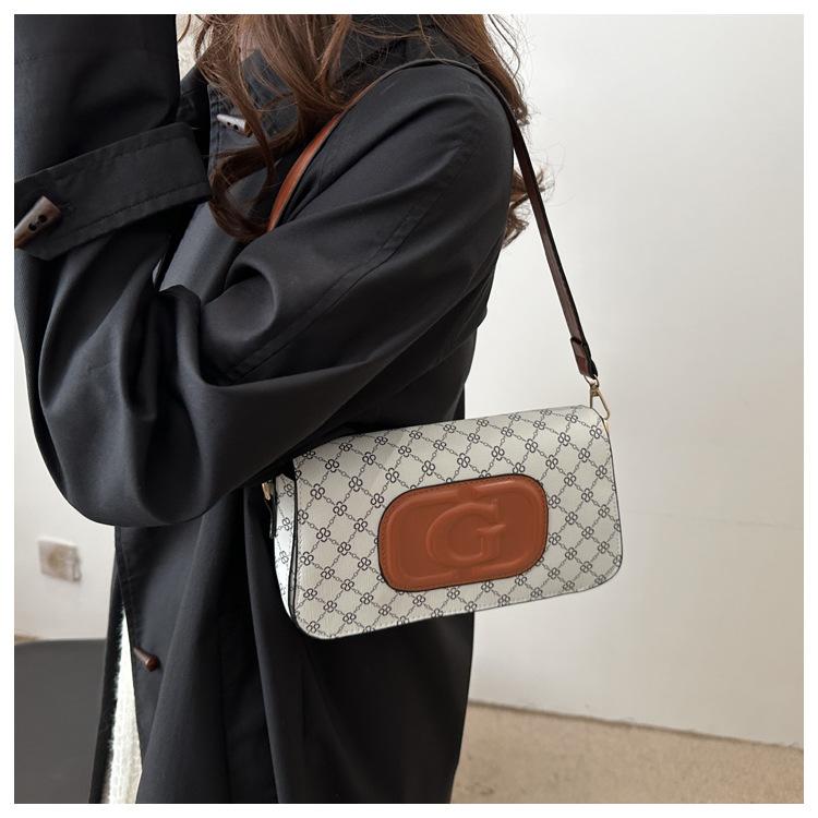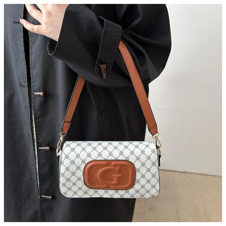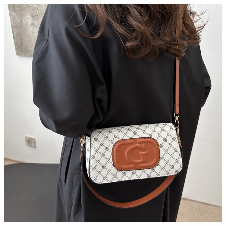 Bolso bandolera retro con diseño cruzado para mujer, estilo francés, moderno, pequeño, cuadrado, con estampado, elegante y moderno.