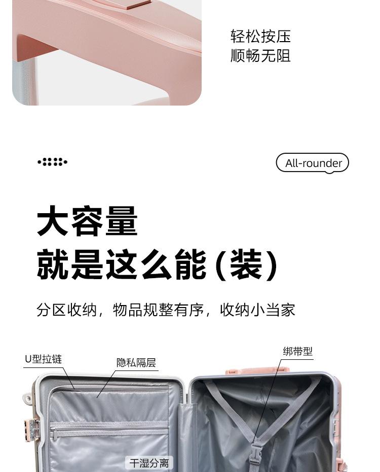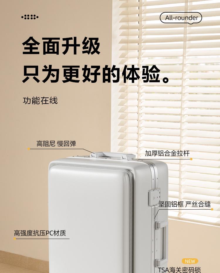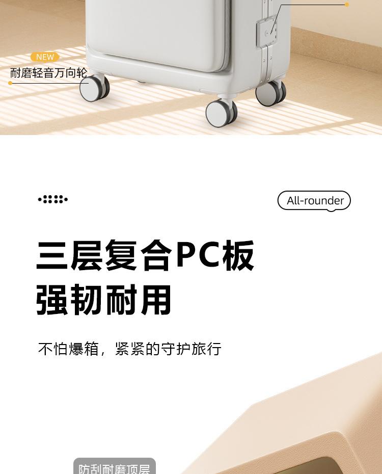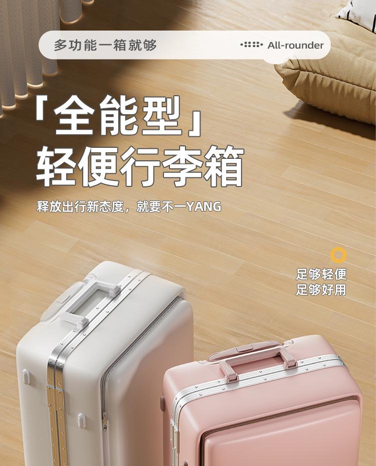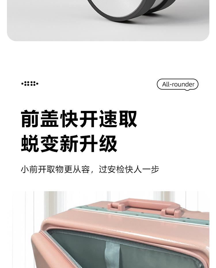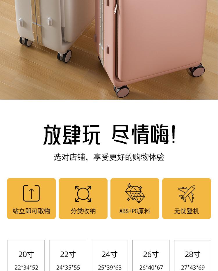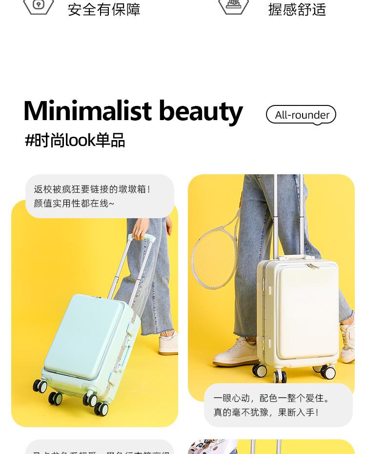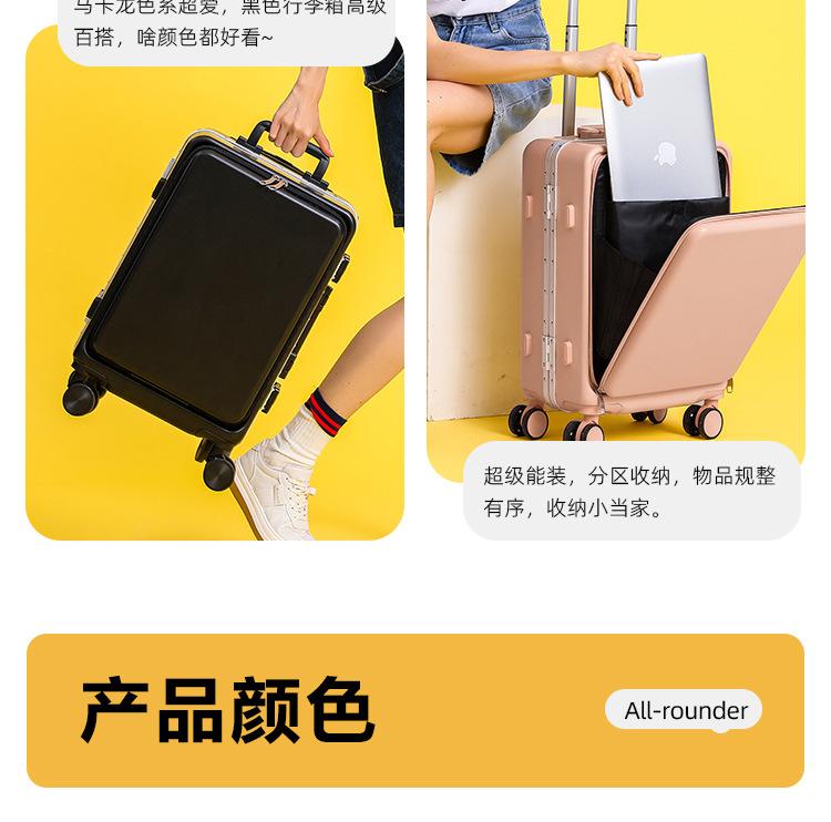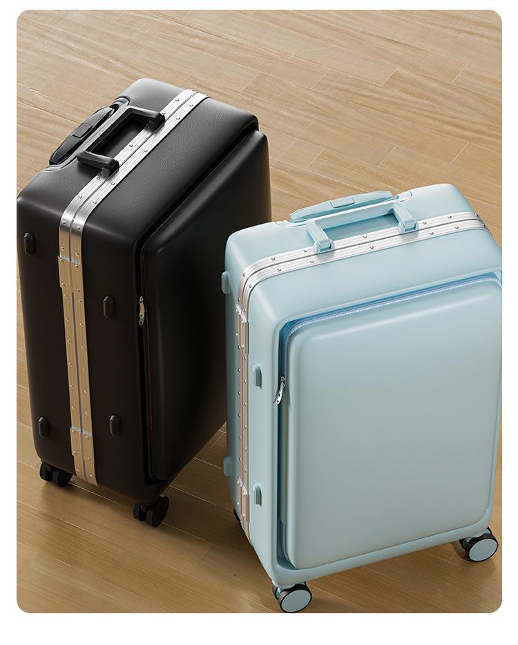 Maleta con ruedas y apertura frontal de 20 pulgadas, súper ligera, pequeña, de 24 pulgadas, multifuncional, con marco de aluminio y contraseña.