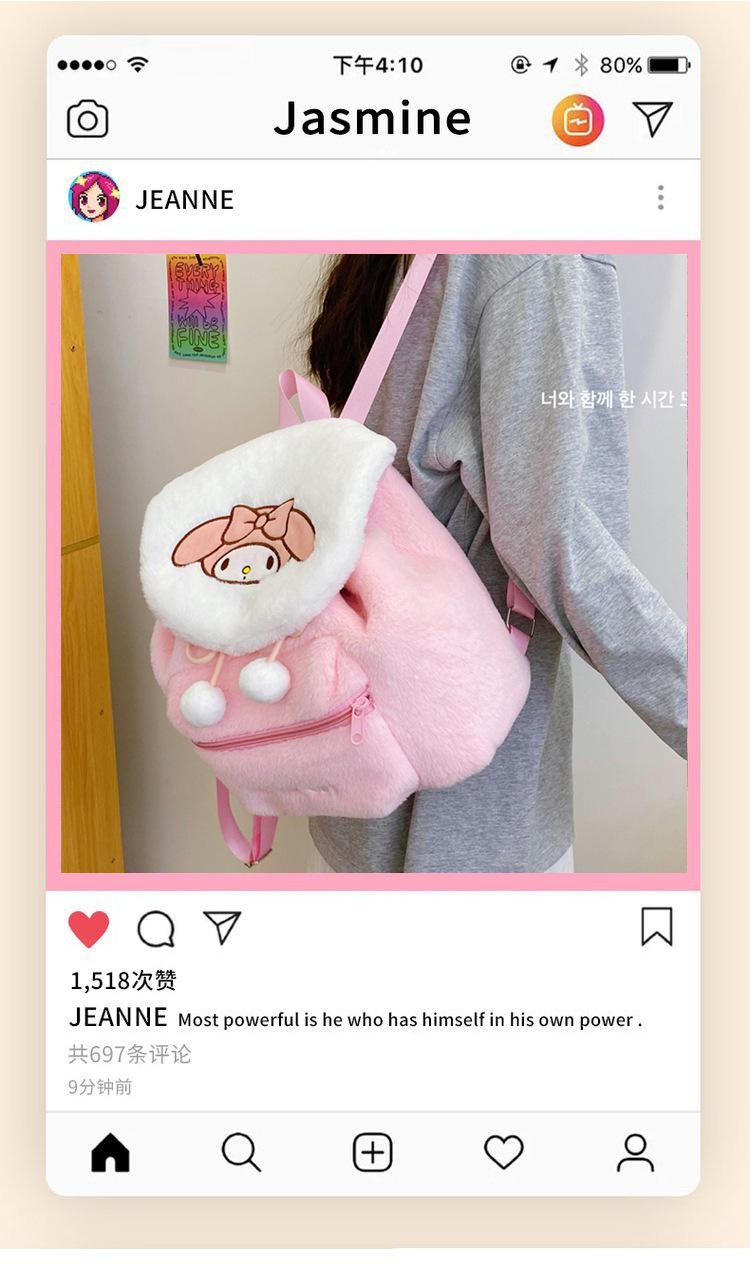 Ventas Directas de Fábrica Serie Sanrio Gran Capacidad Mochila de Peluche de Dibujos Animados Linda Almacenamiento Moda y Versátil