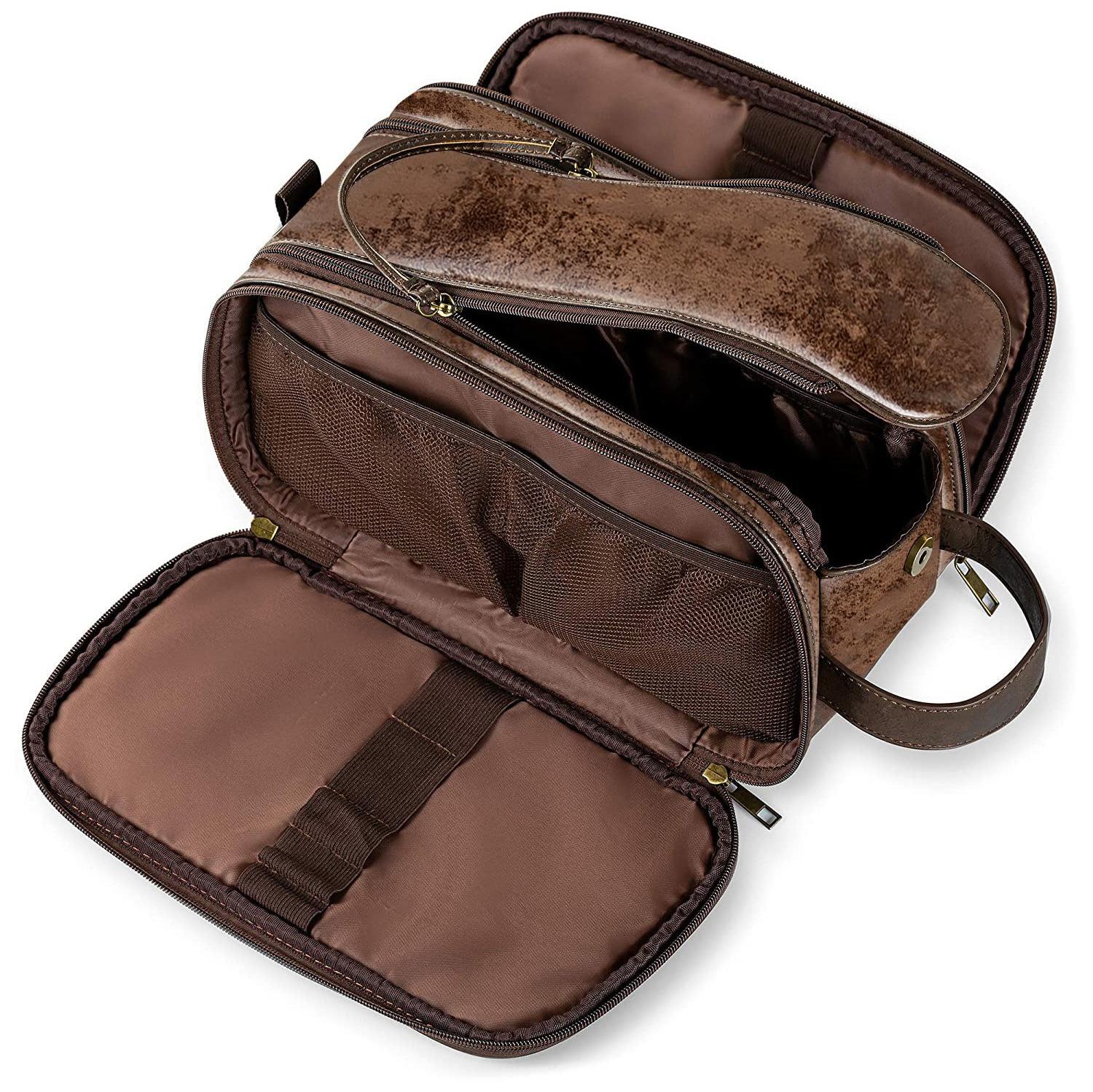 Compra Neceser de cuero para hombre, novedad 2024, de gran capacidad, portátil, para cosméticos, vintage, para guardar artículos de tocador al por mayor en Joom.pro