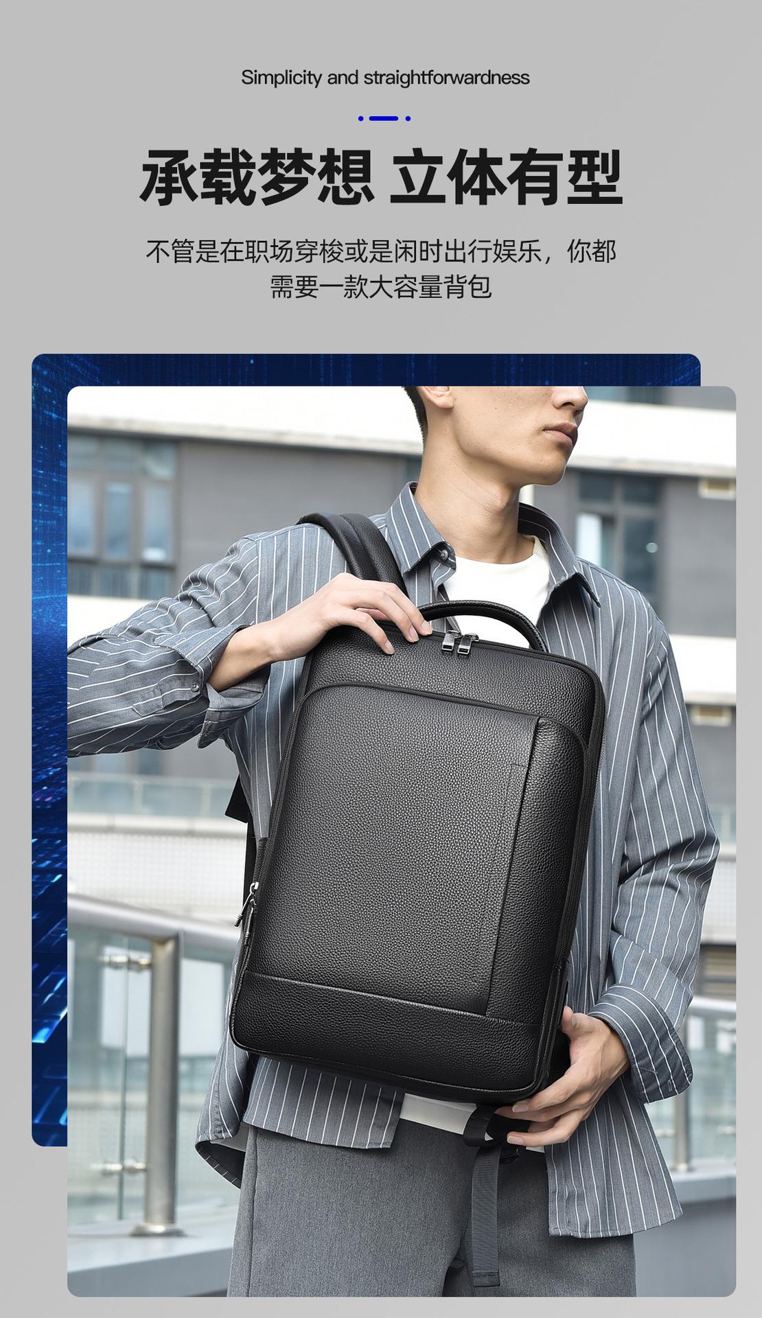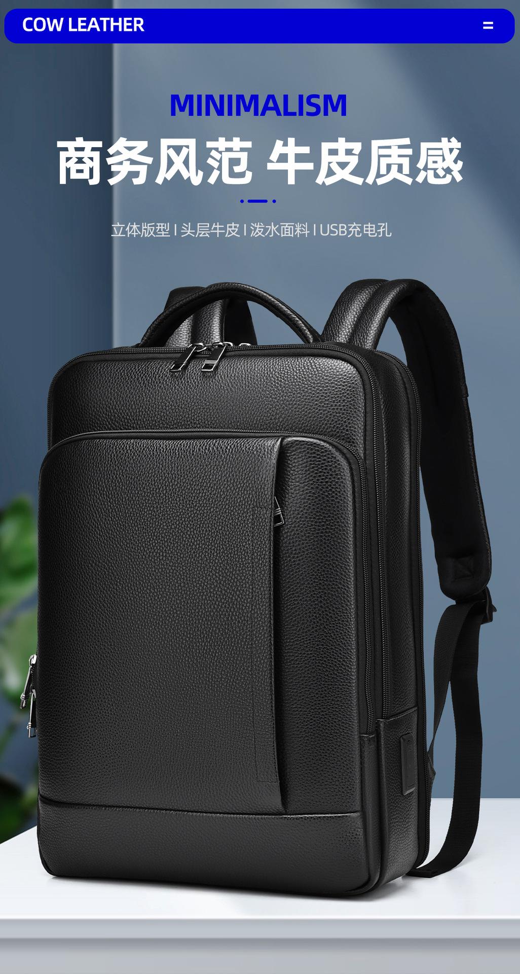 Nueva Mochila de Negocios para Hombre de Cuero Genuino Mochila Transfronteriza de Gran Capacidad Cuero de Vaca de Capa Superior Mochila de Sensación Superior