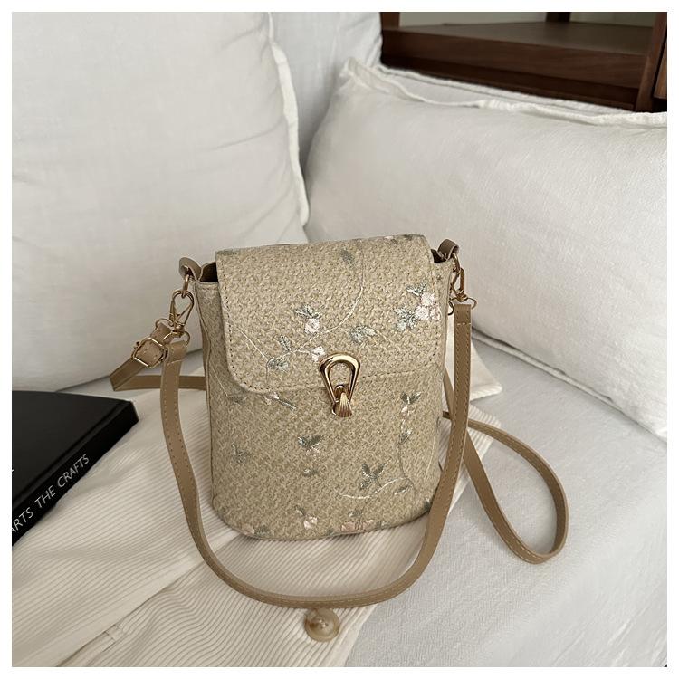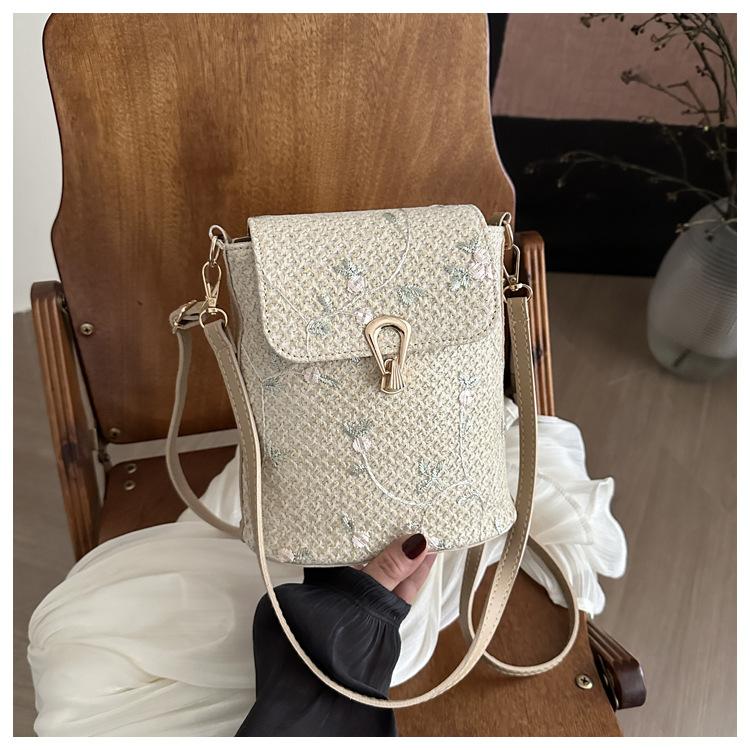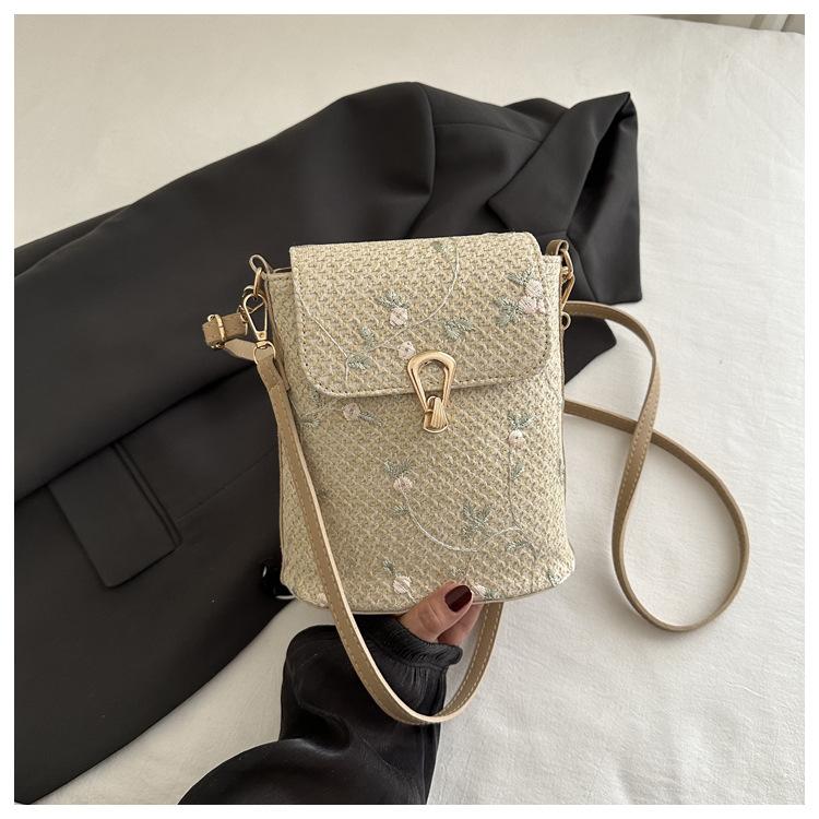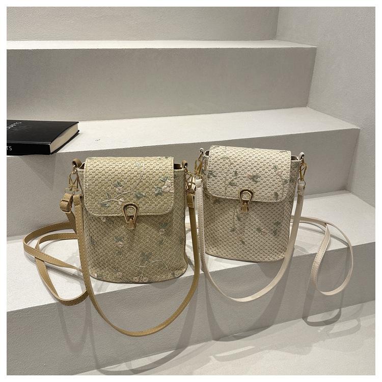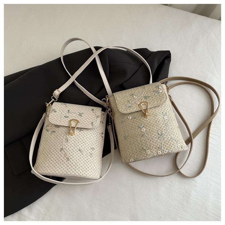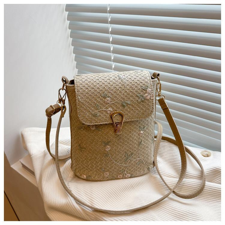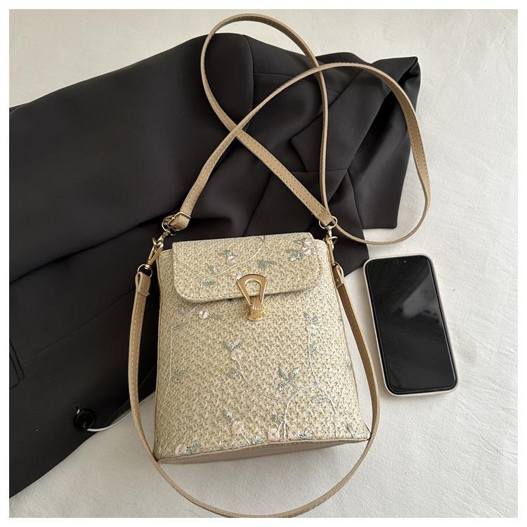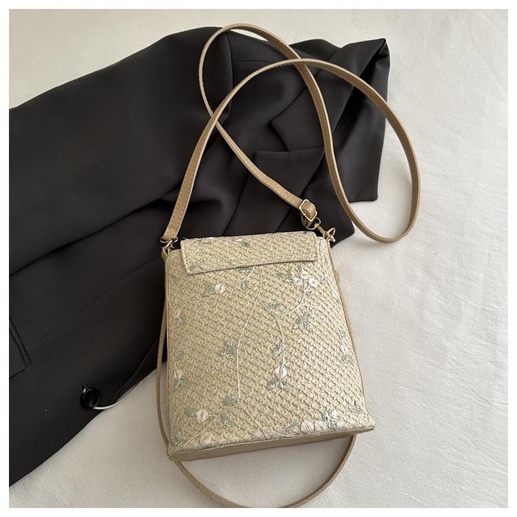 Bolso de paja de verano para mujer, nuevo estilo 2025, tejido con encaje floral, bolso bandolera combinable.