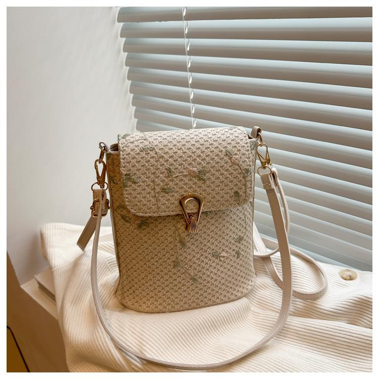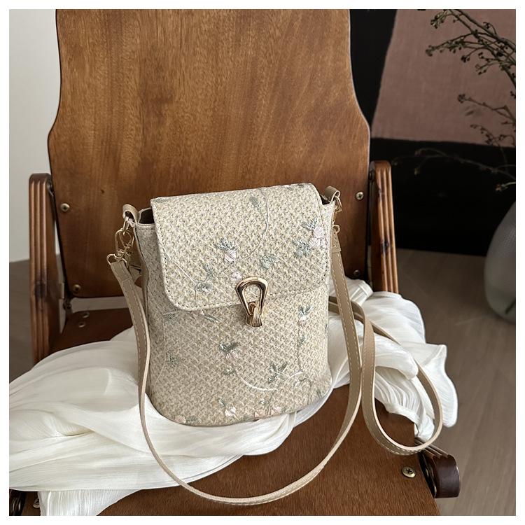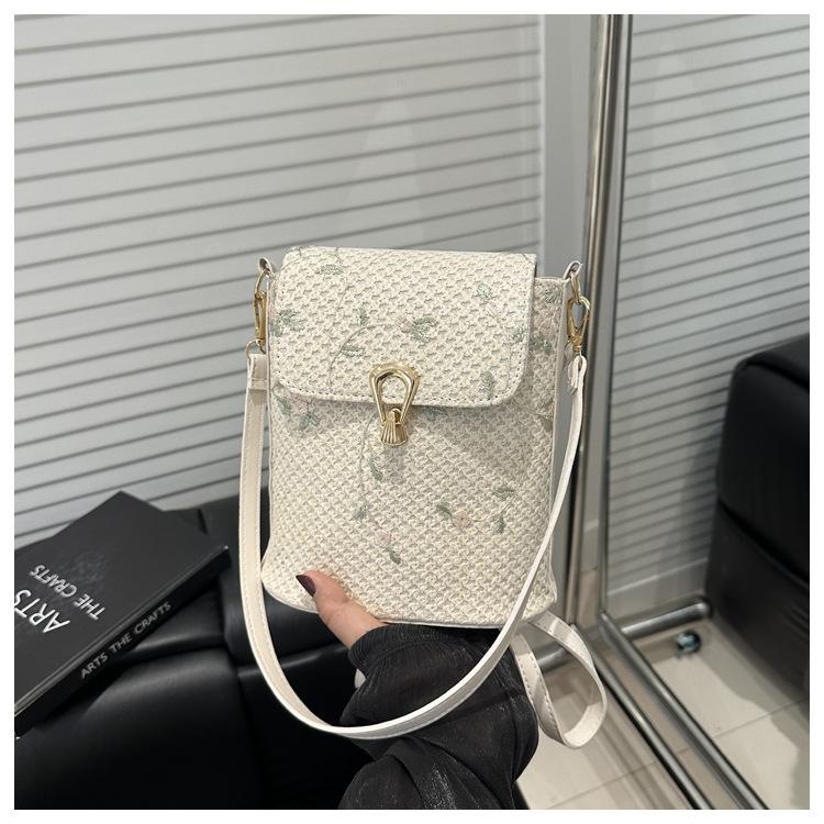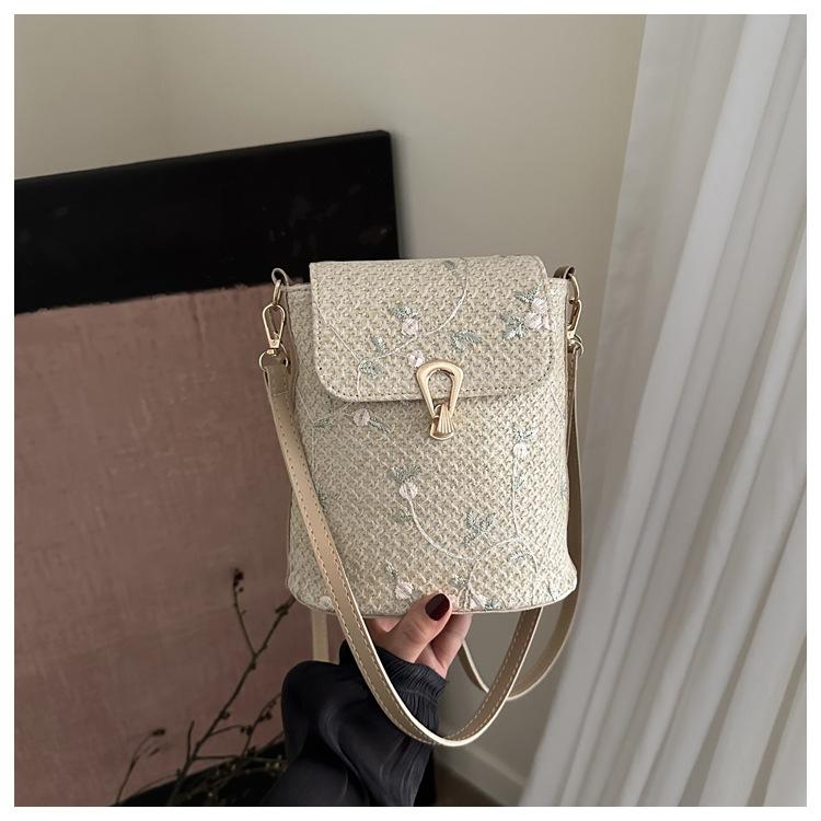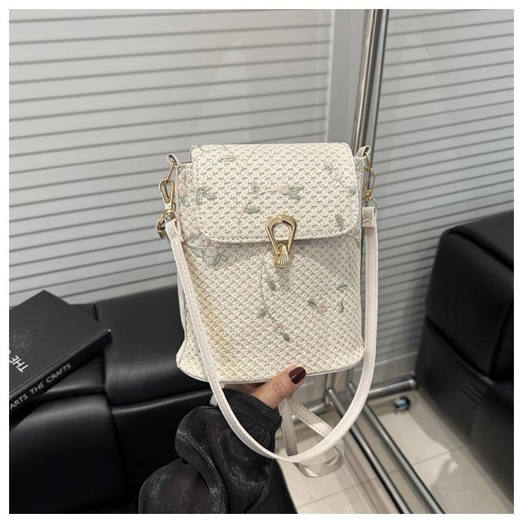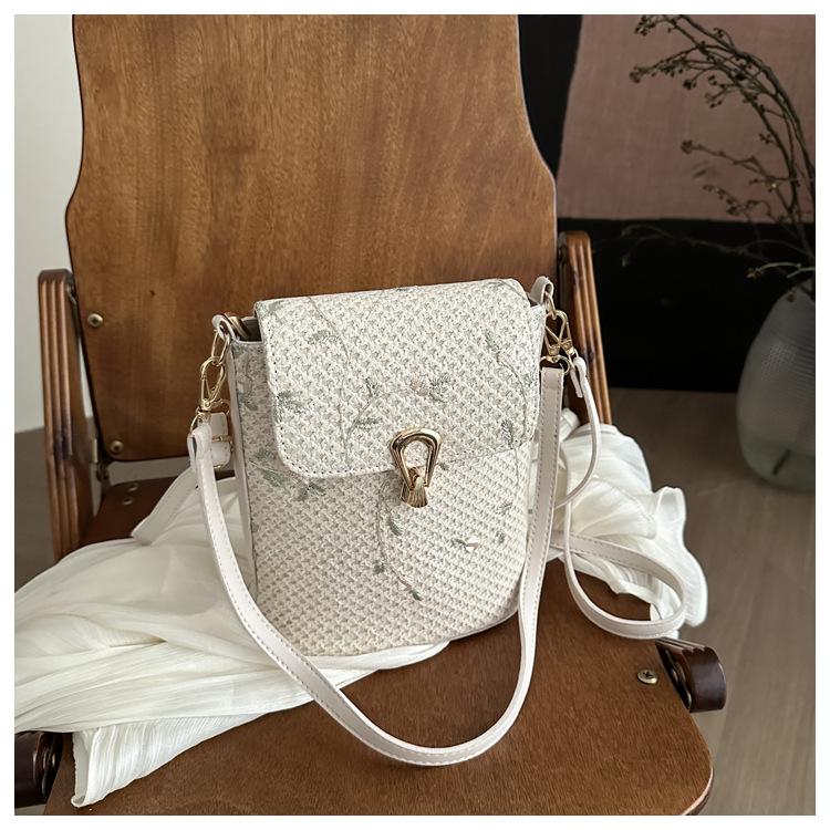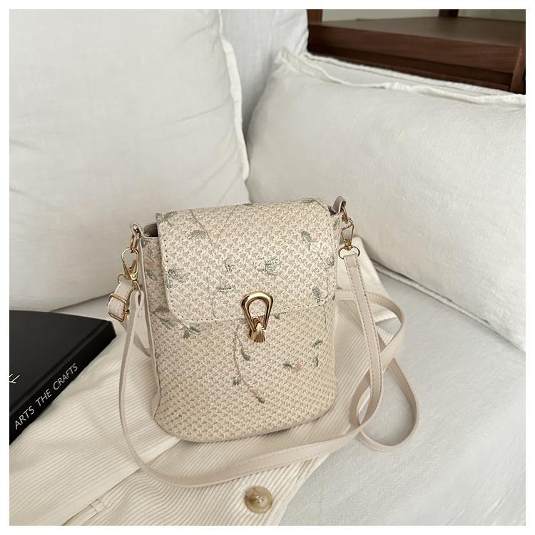 Bolso de paja de verano para mujer, nuevo estilo 2025, tejido con encaje floral, bolso bandolera combinable.