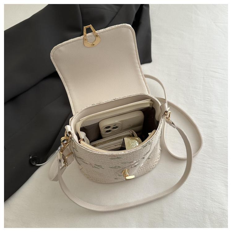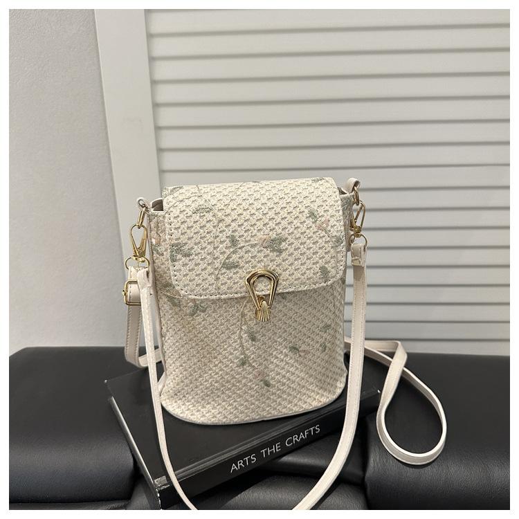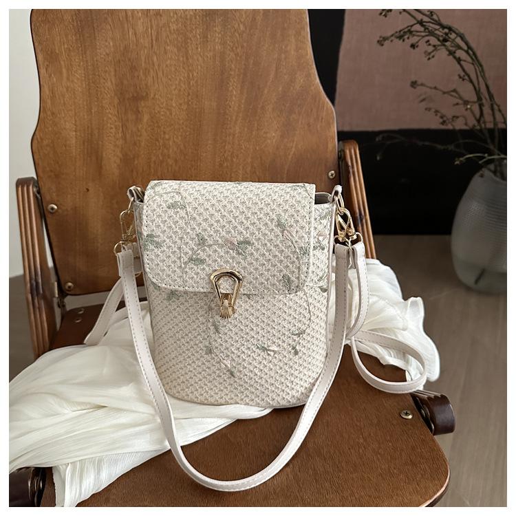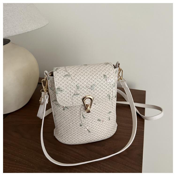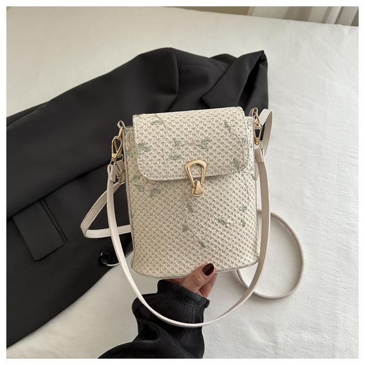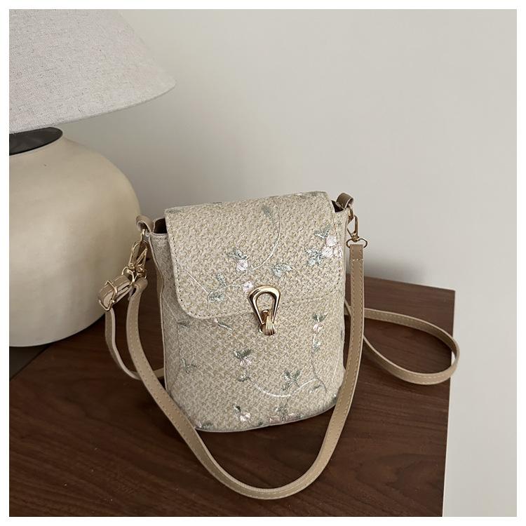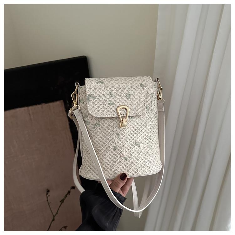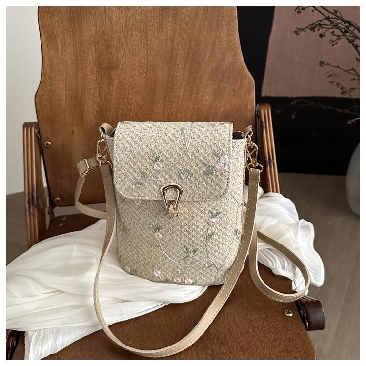 Bolso de paja de verano para mujer, nuevo estilo 2025, tejido con encaje floral, bolso bandolera combinable.