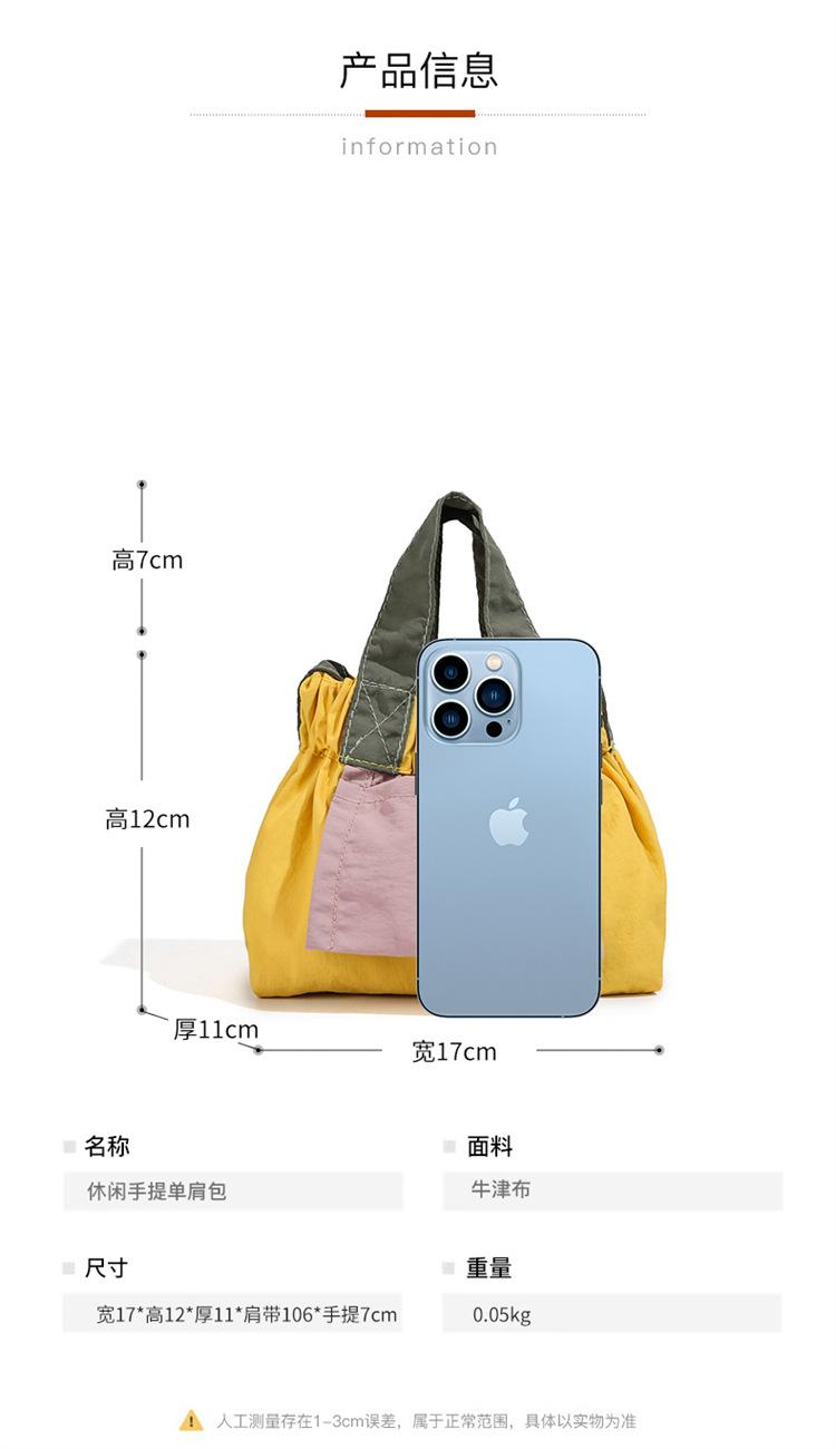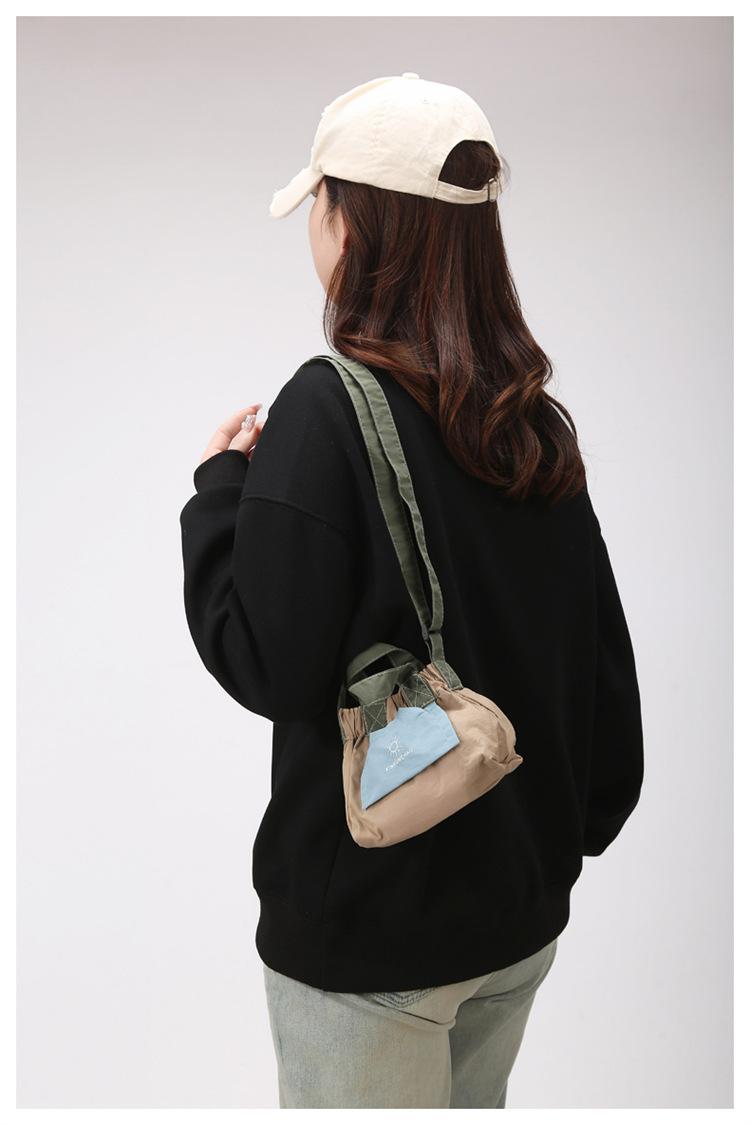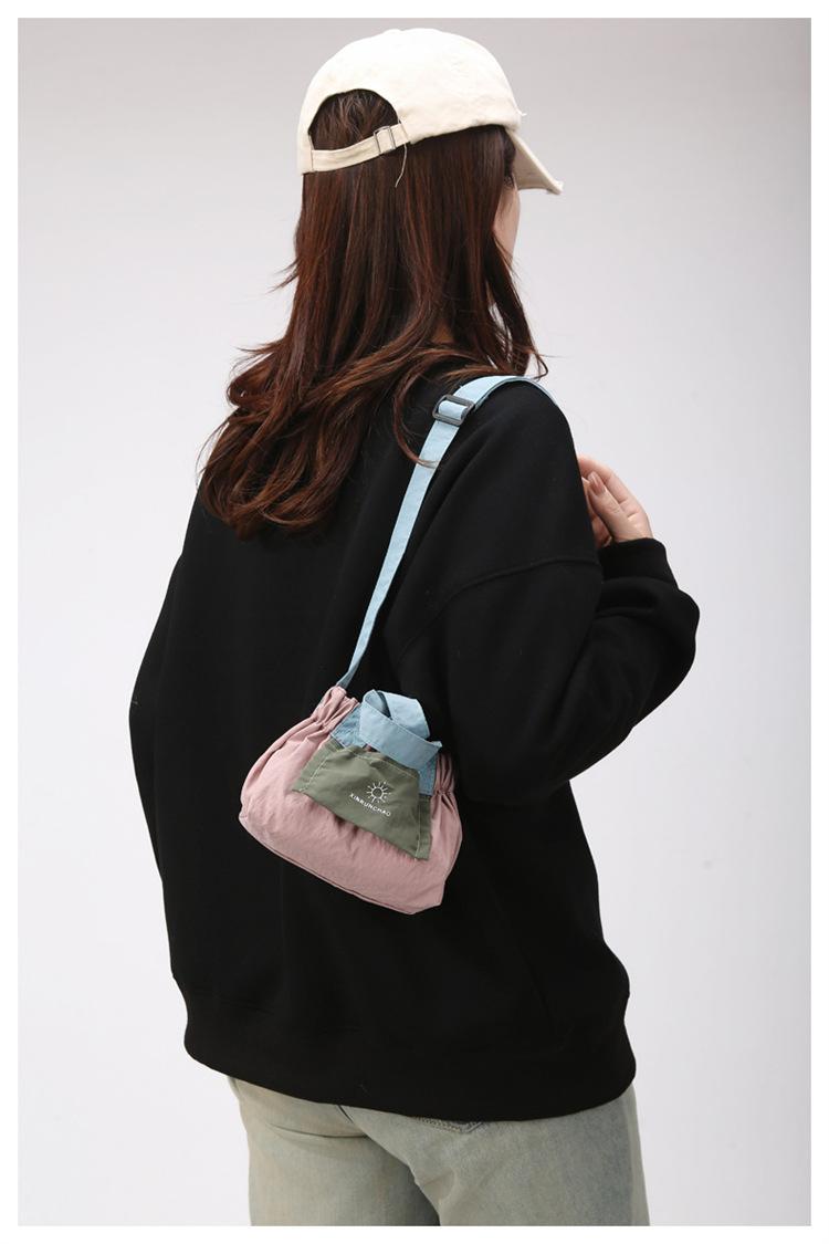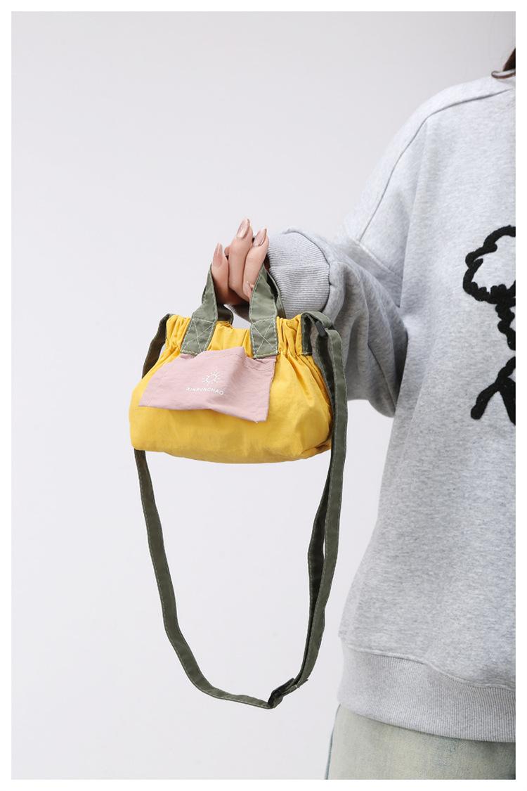 2025 Primavera y Verano Nuevo Coreano Simple Color Contraste Fresco Bolso de Hombro Nylon Bolso Tipo Cubo Hombro Bandolera