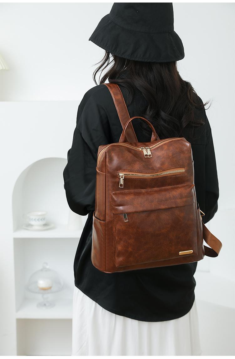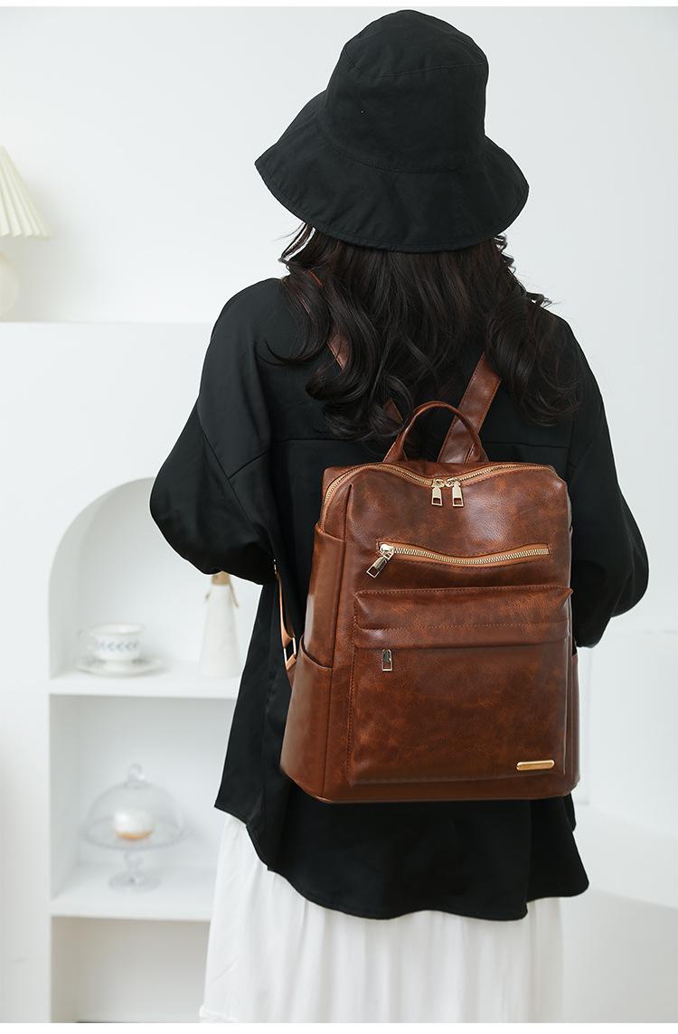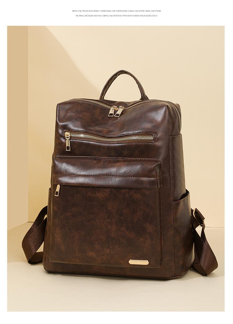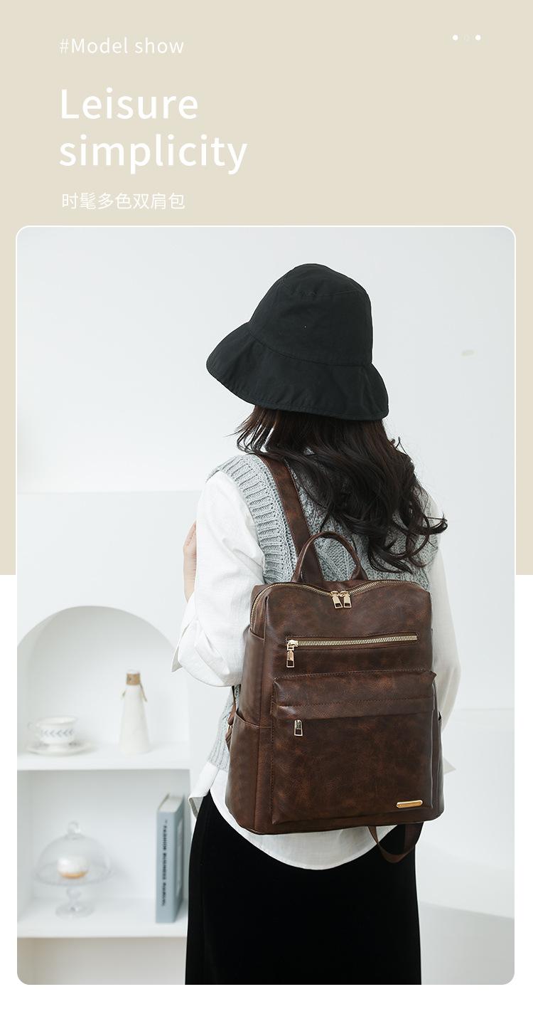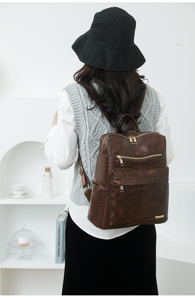 Mochila de viaje mochila con textura de PU 2025 nueva mochila casual para mujer retro europea y americana de gran capacidad mujeres