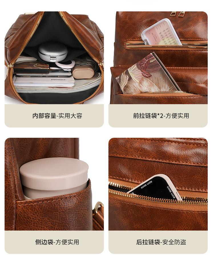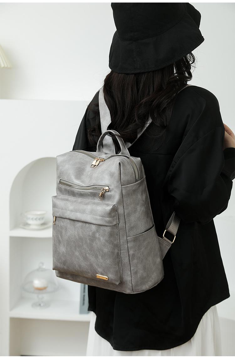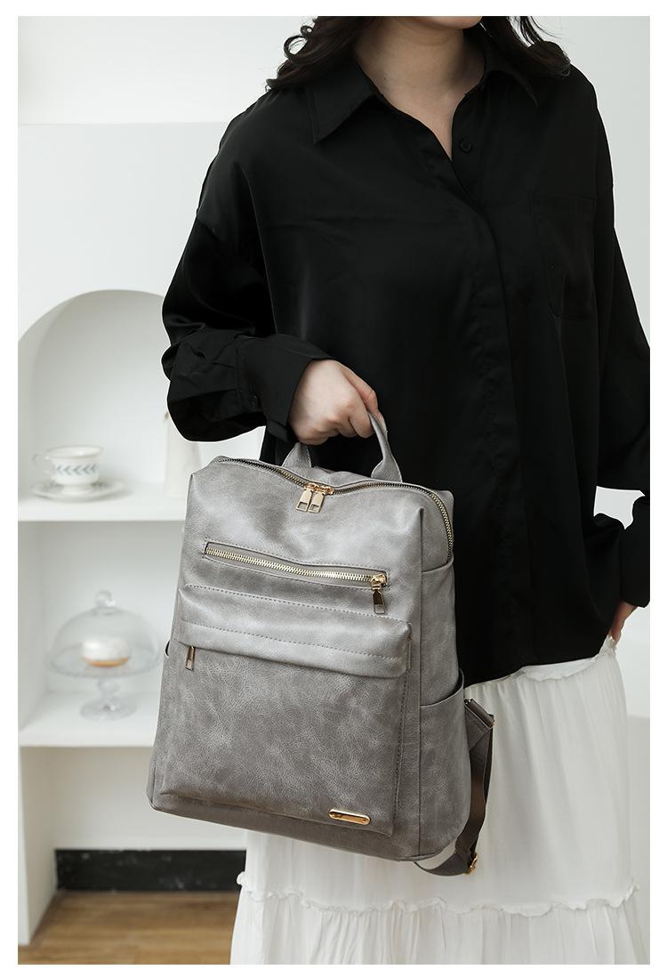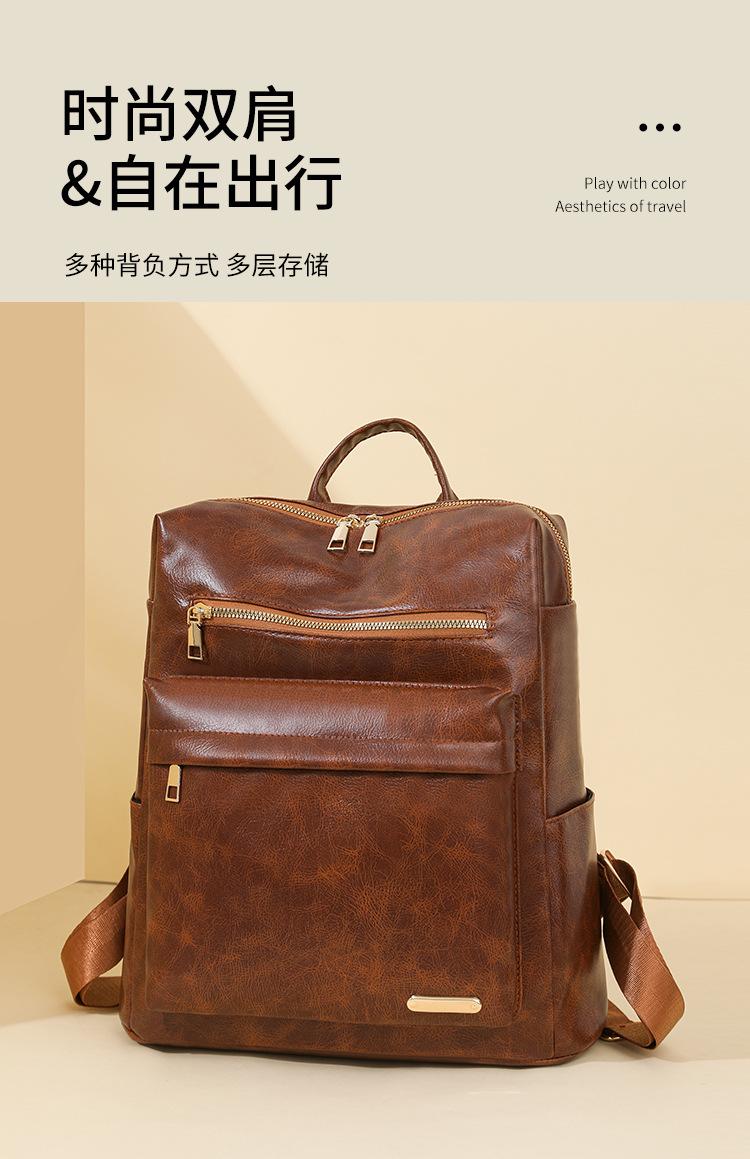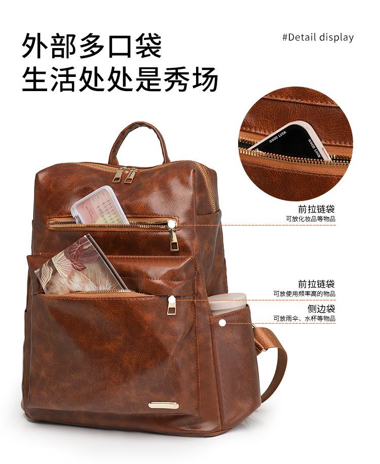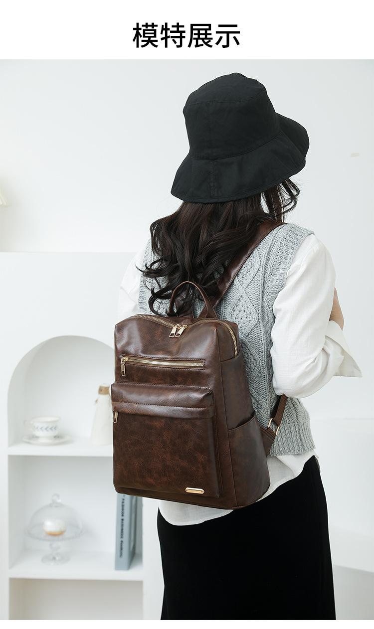 Mochila de viaje mochila con textura de PU 2025 nueva mochila casual para mujer retro europea y americana de gran capacidad mujeres