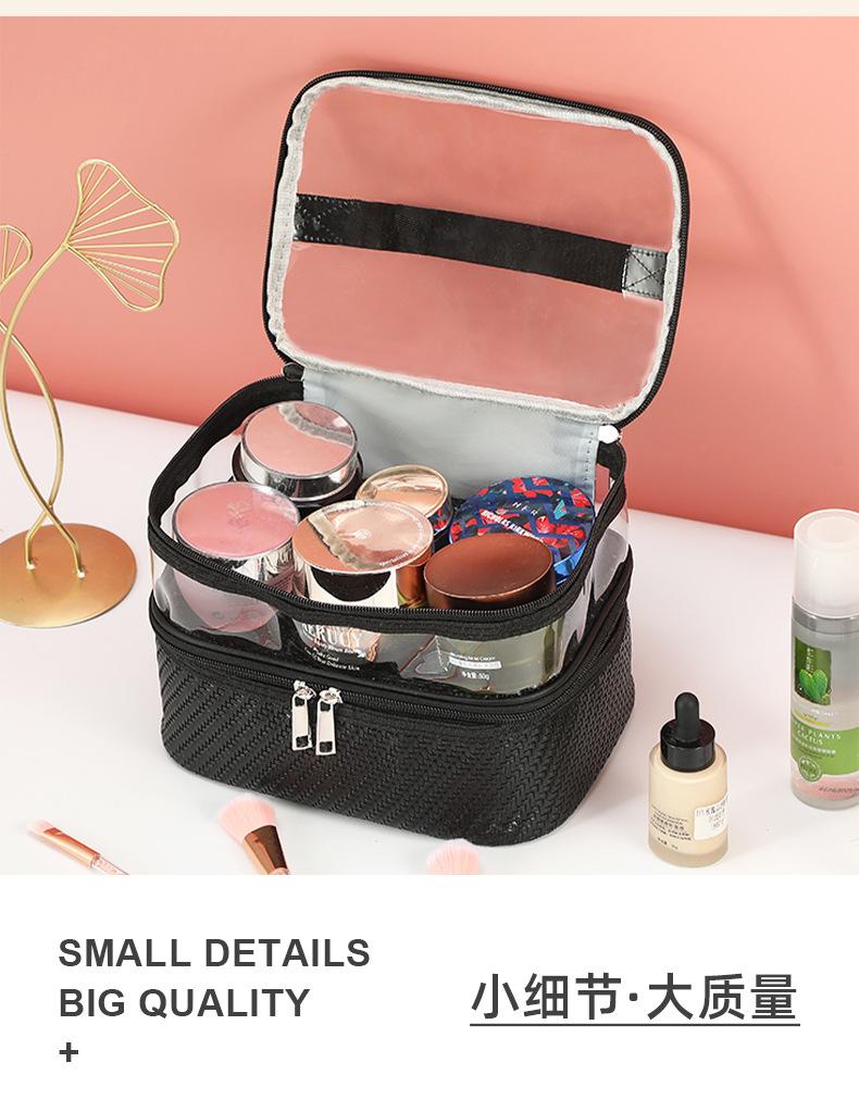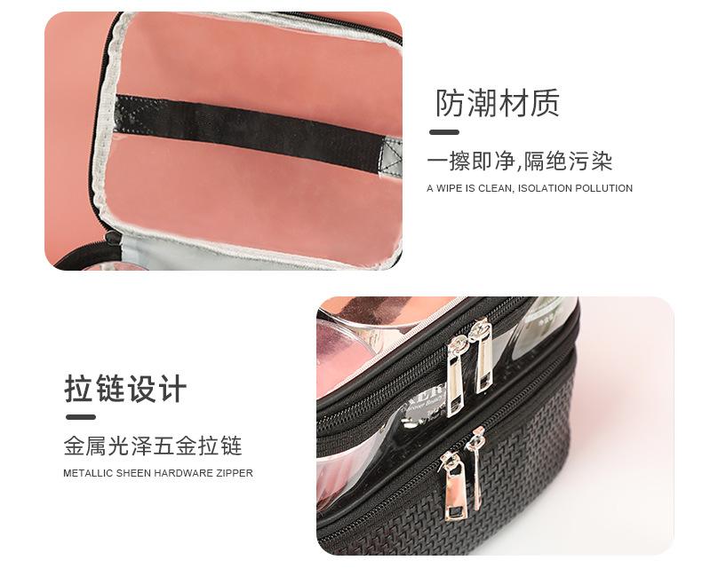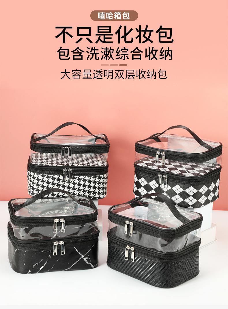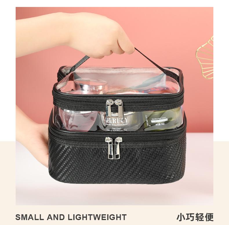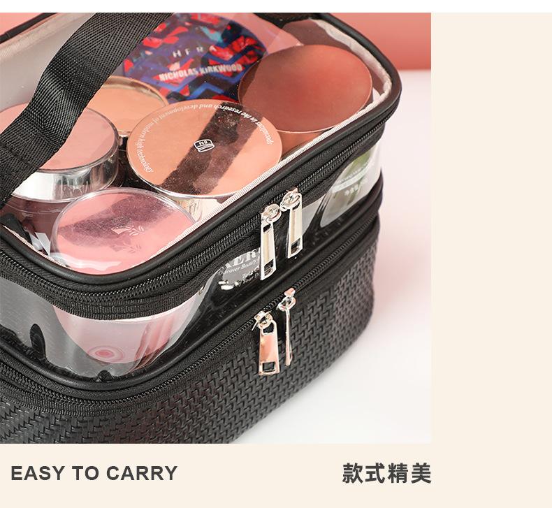 Bolsa de almacenamiento de cosméticos de viaje de doble capa, transparente, impermeable, de gran capacidad, portátil, europea y americana, bolsa de lavado portátil multifuncional