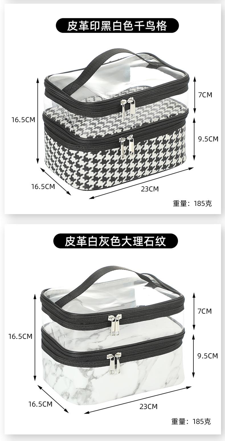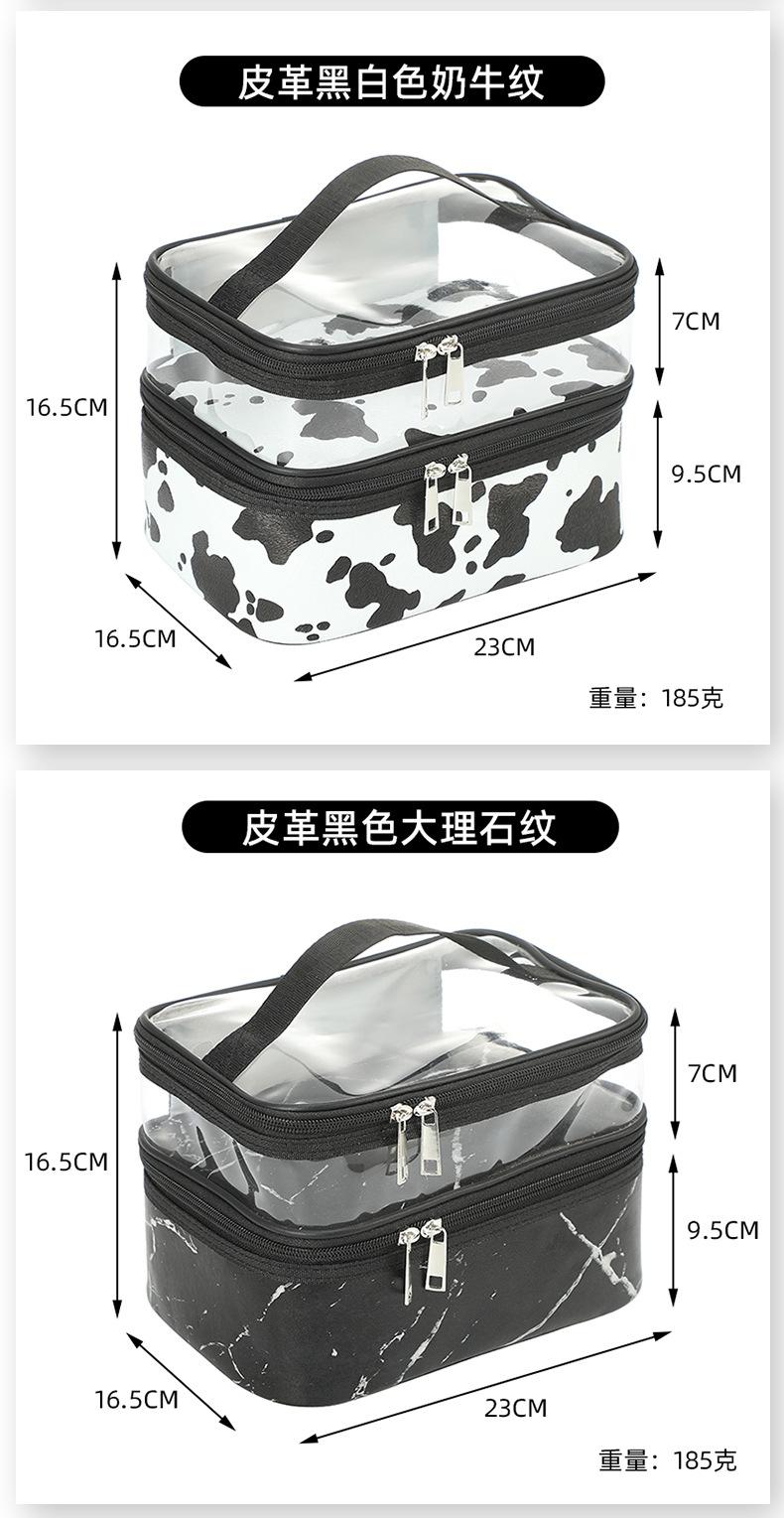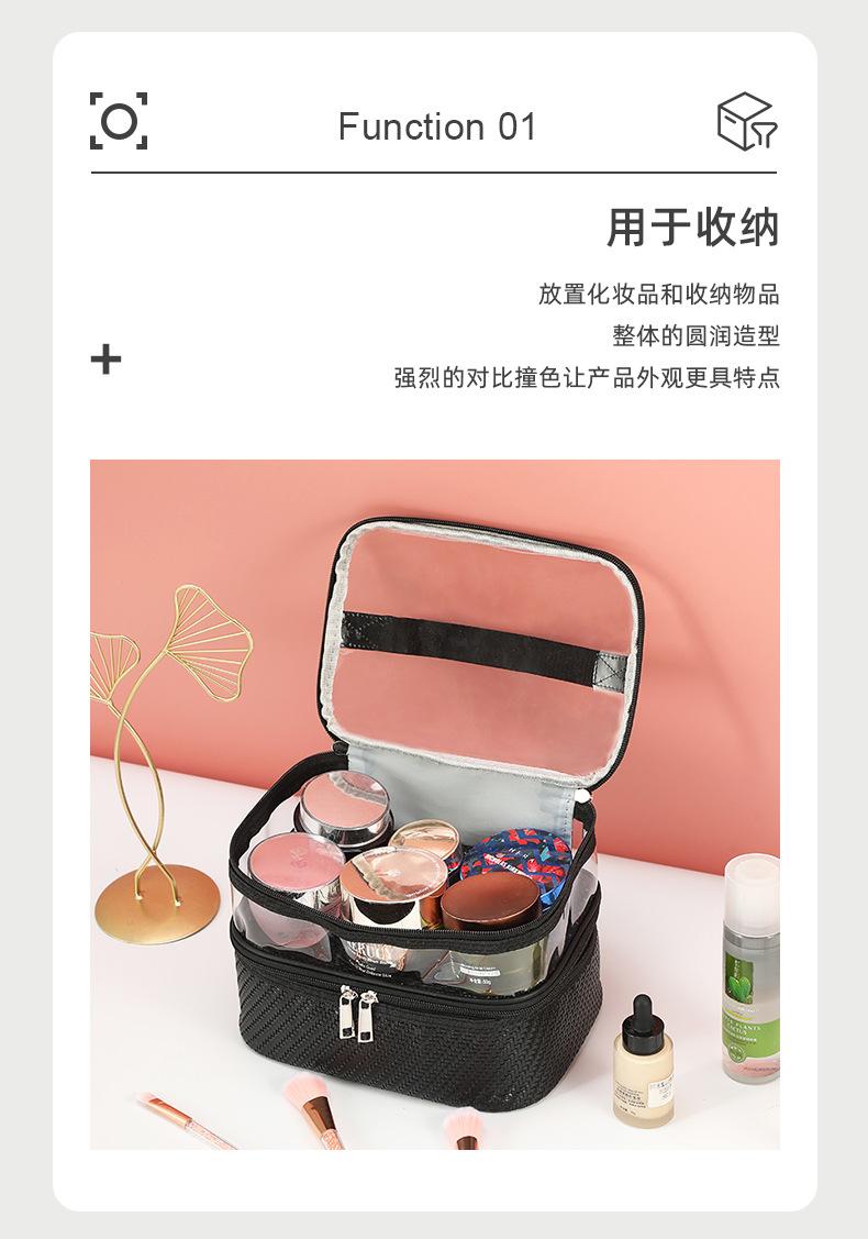 Bolsa de almacenamiento de cosméticos de viaje de doble capa, transparente, impermeable, de gran capacidad, portátil, europea y americana, bolsa de lavado portátil multifuncional