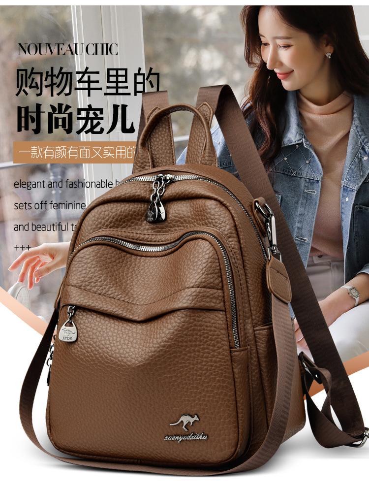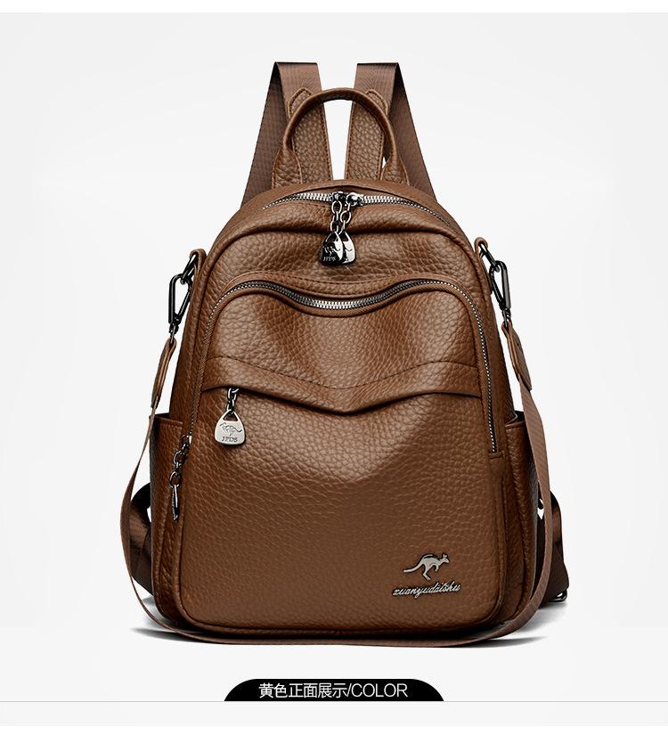 Mochila de Cuero Suave de Venta Caliente de Comercio Exterior Nuevo Estilo Simple Gran Capacidad Mochila de Viaje Multifuncional Bolsa Escolar para Estudiantes Bolsa de Viaje
