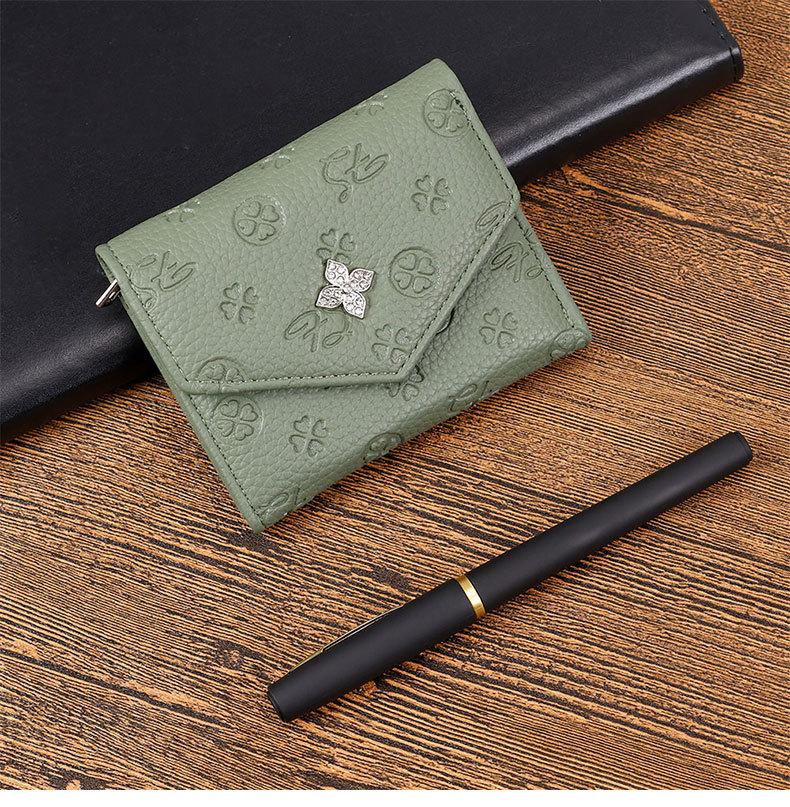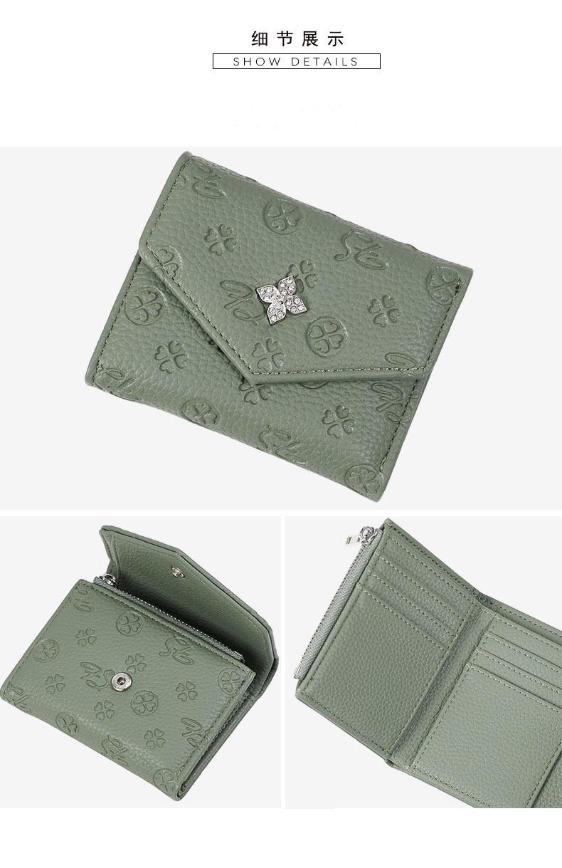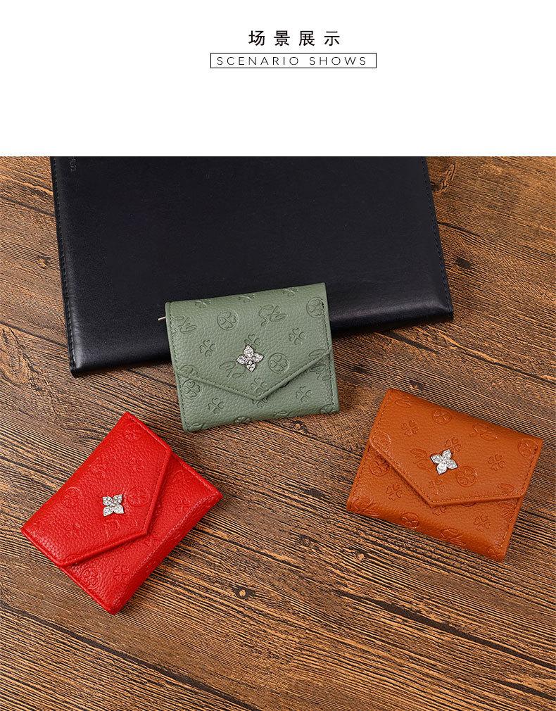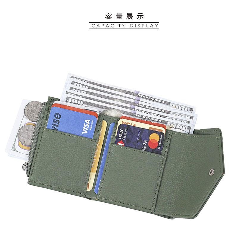 Mini Billetera para Mujer con Relieve Billetera de Alta Gama para Mujer con Textura de Cuero Genuino Bolsa para Tarjetas de Gran Capacidad Triple Billetera para Monedas