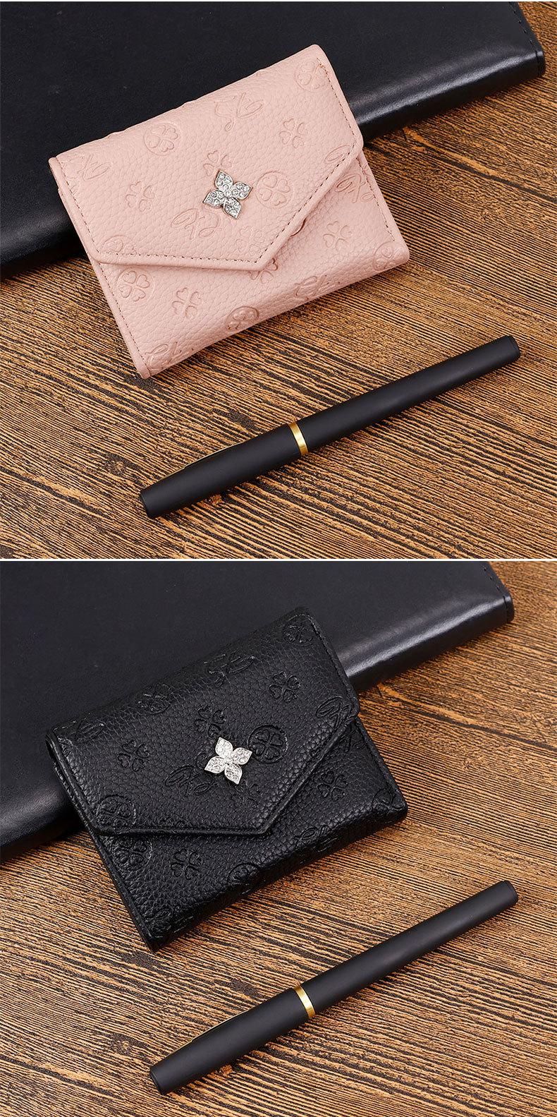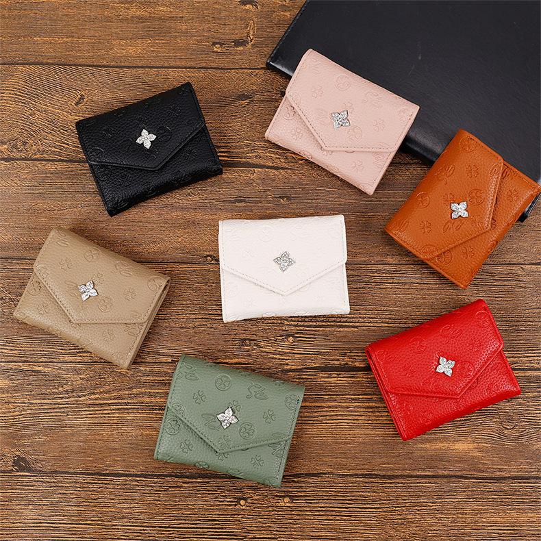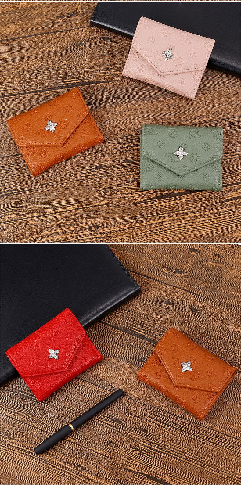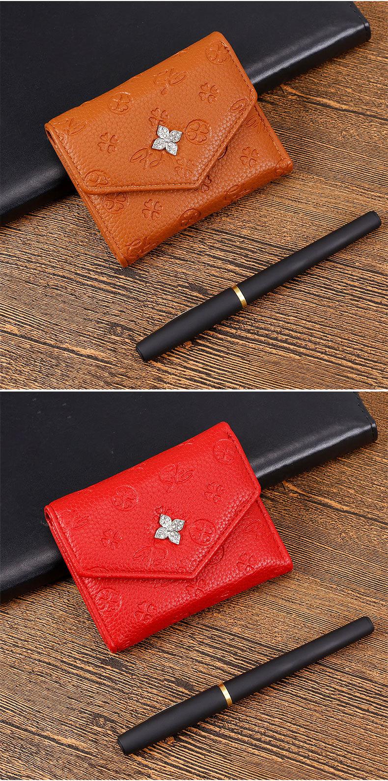 Mini Billetera para Mujer con Relieve Billetera de Alta Gama para Mujer con Textura de Cuero Genuino Bolsa para Tarjetas de Gran Capacidad Triple Billetera para Monedas