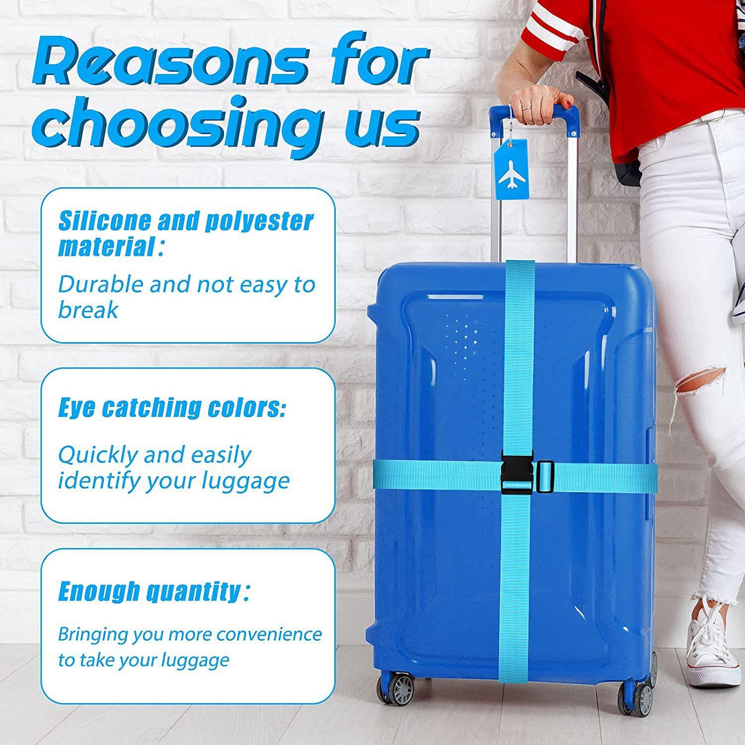 Juego de 4 piezas de correas de equipaje de una palabra más 4 etiquetas de equipaje de silicona volumen: 18cm*17cm*5cm