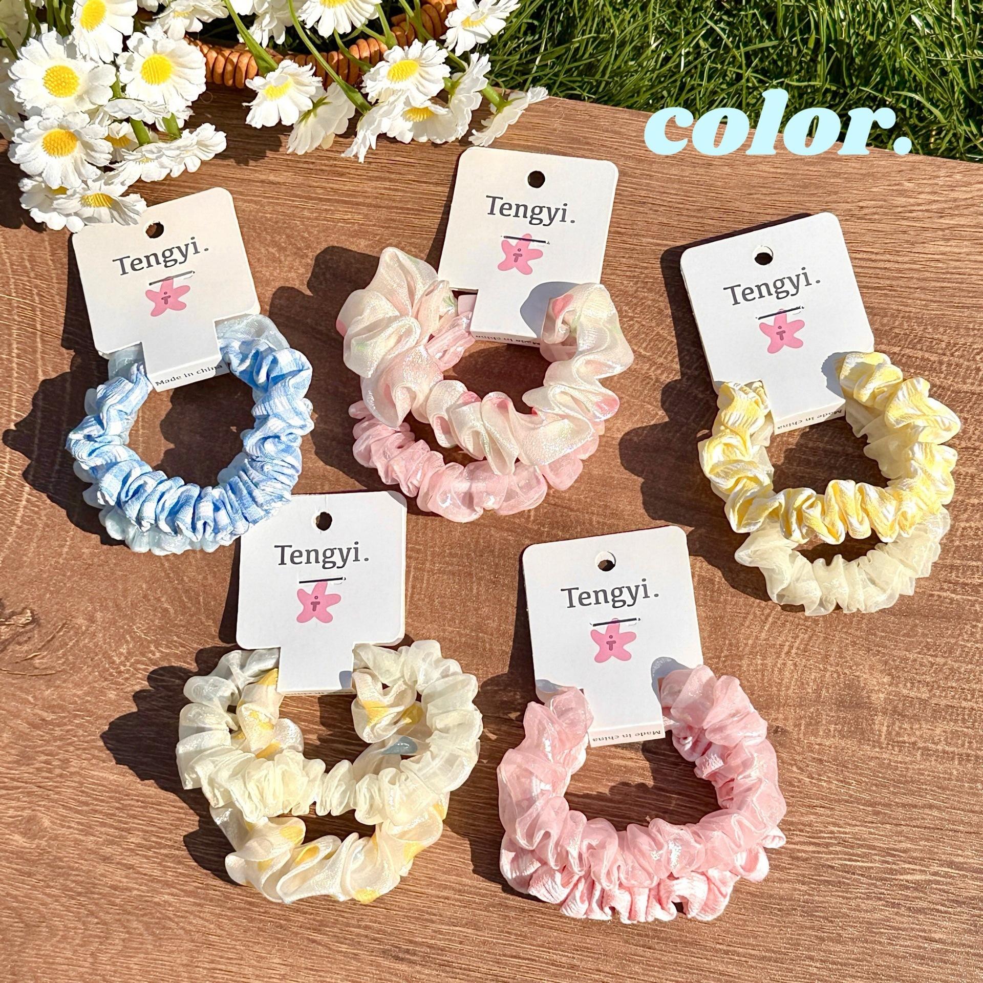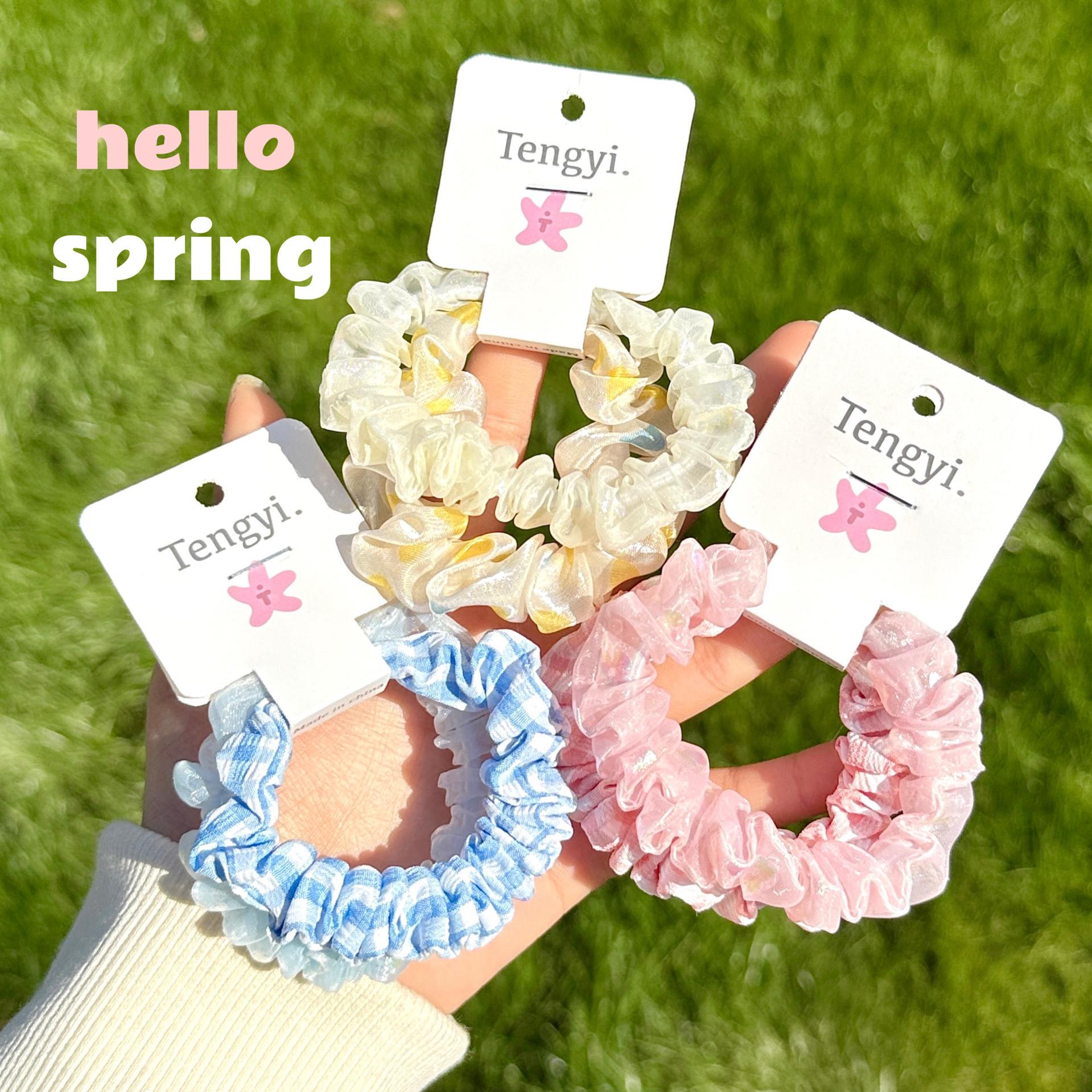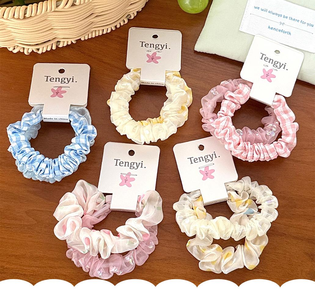 1#Pink checkered small intestine hair tie, 2#Yellow series-checkered small intestine hair tie, 3#Blue-checkere...