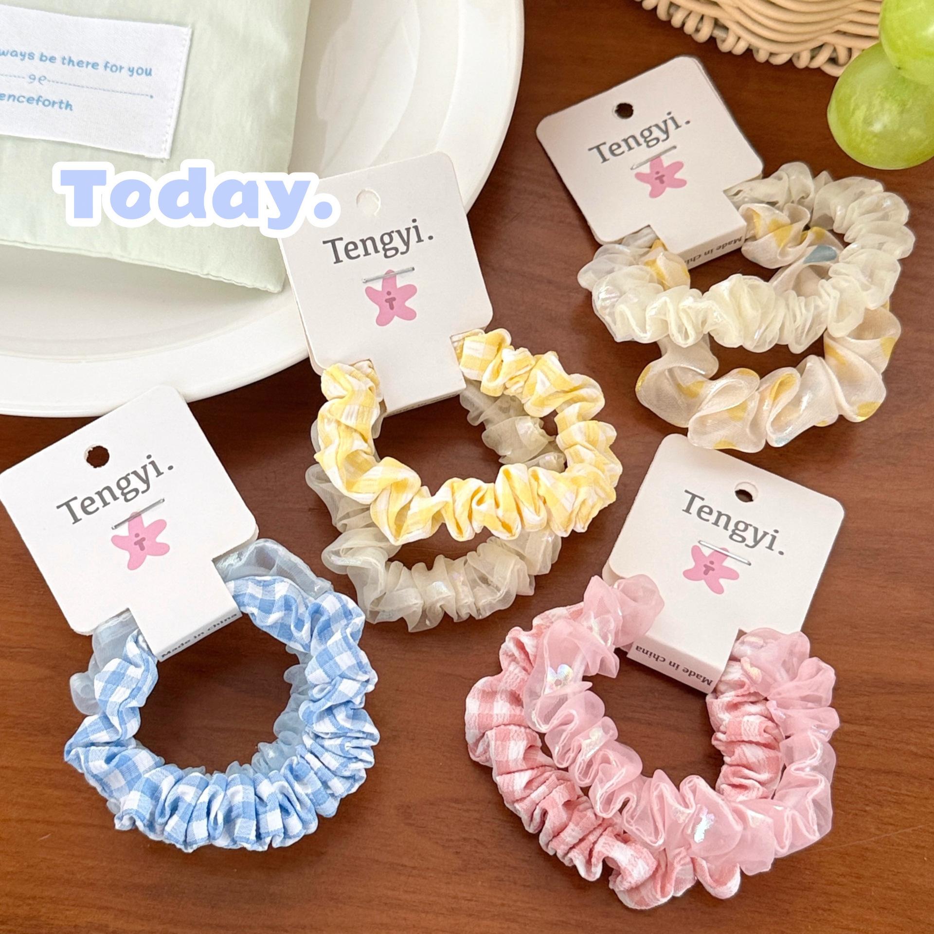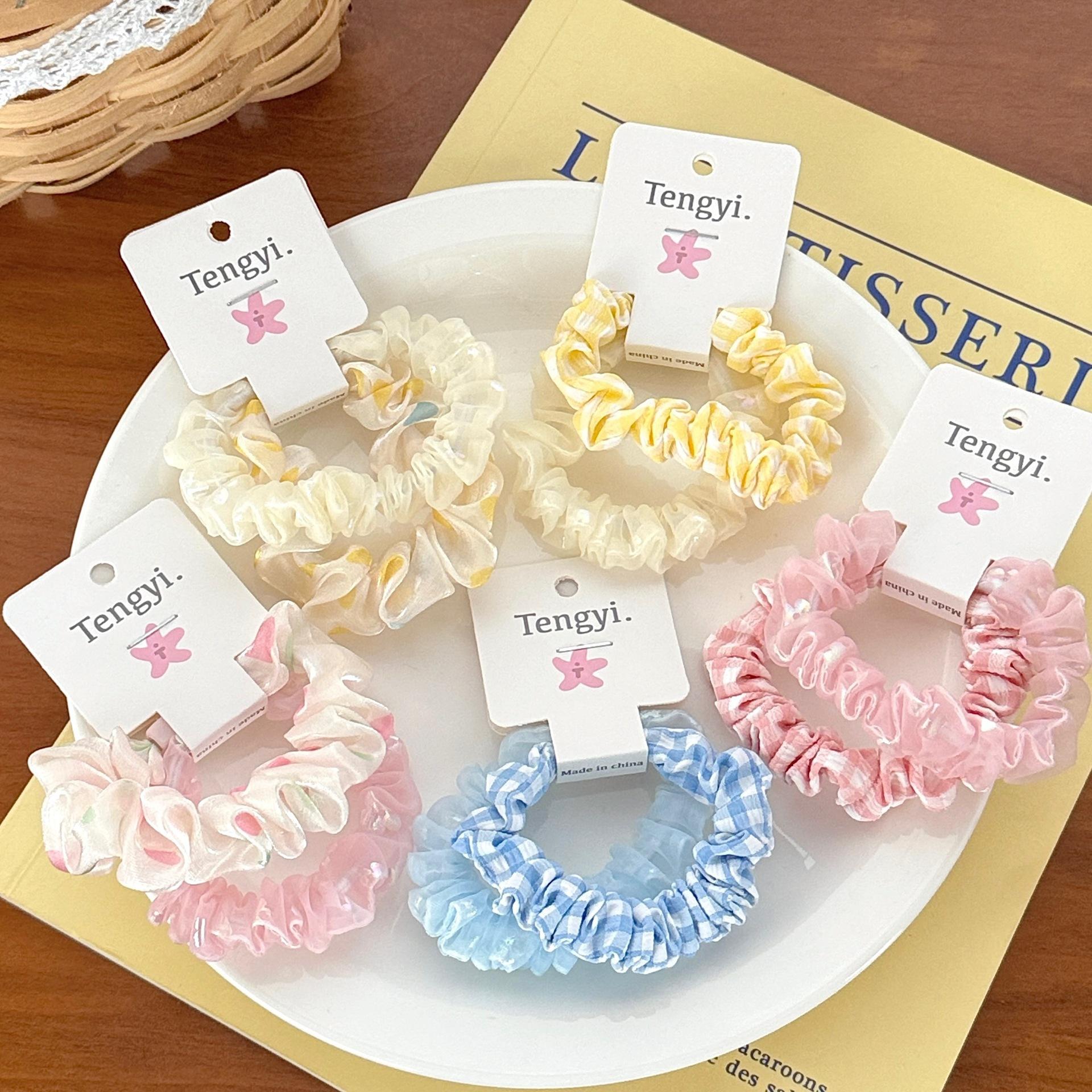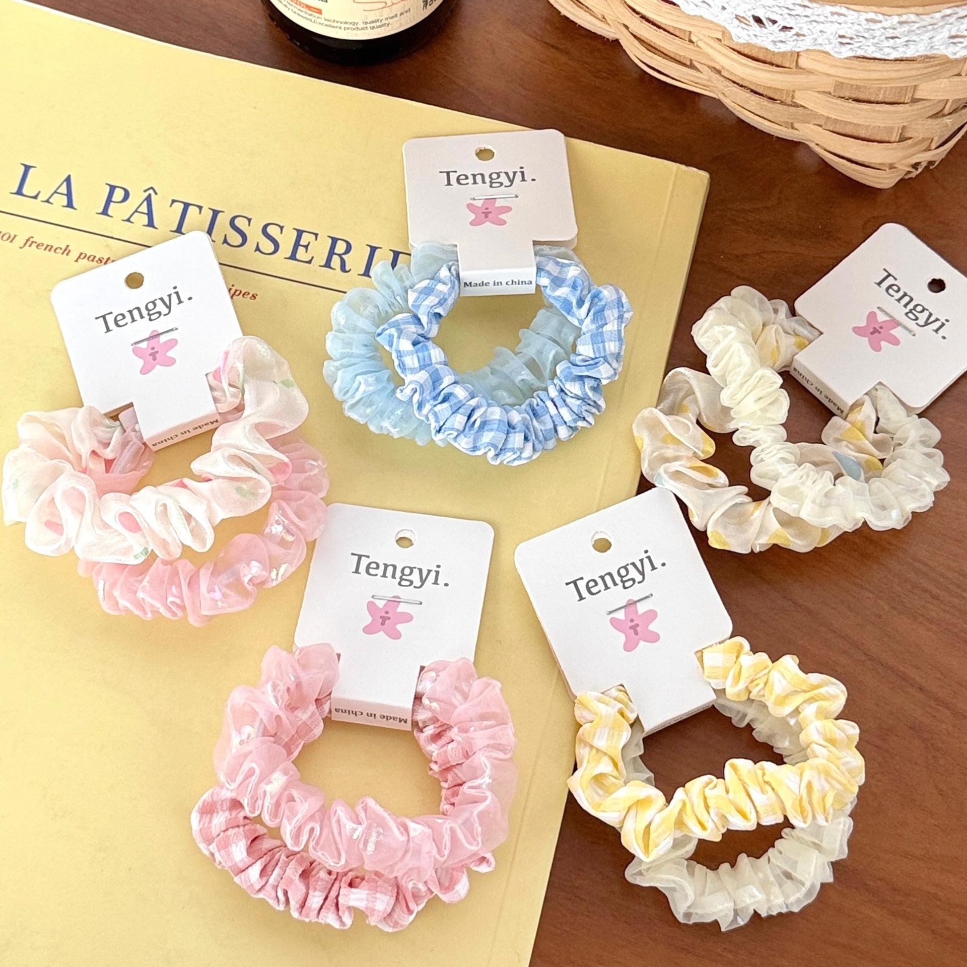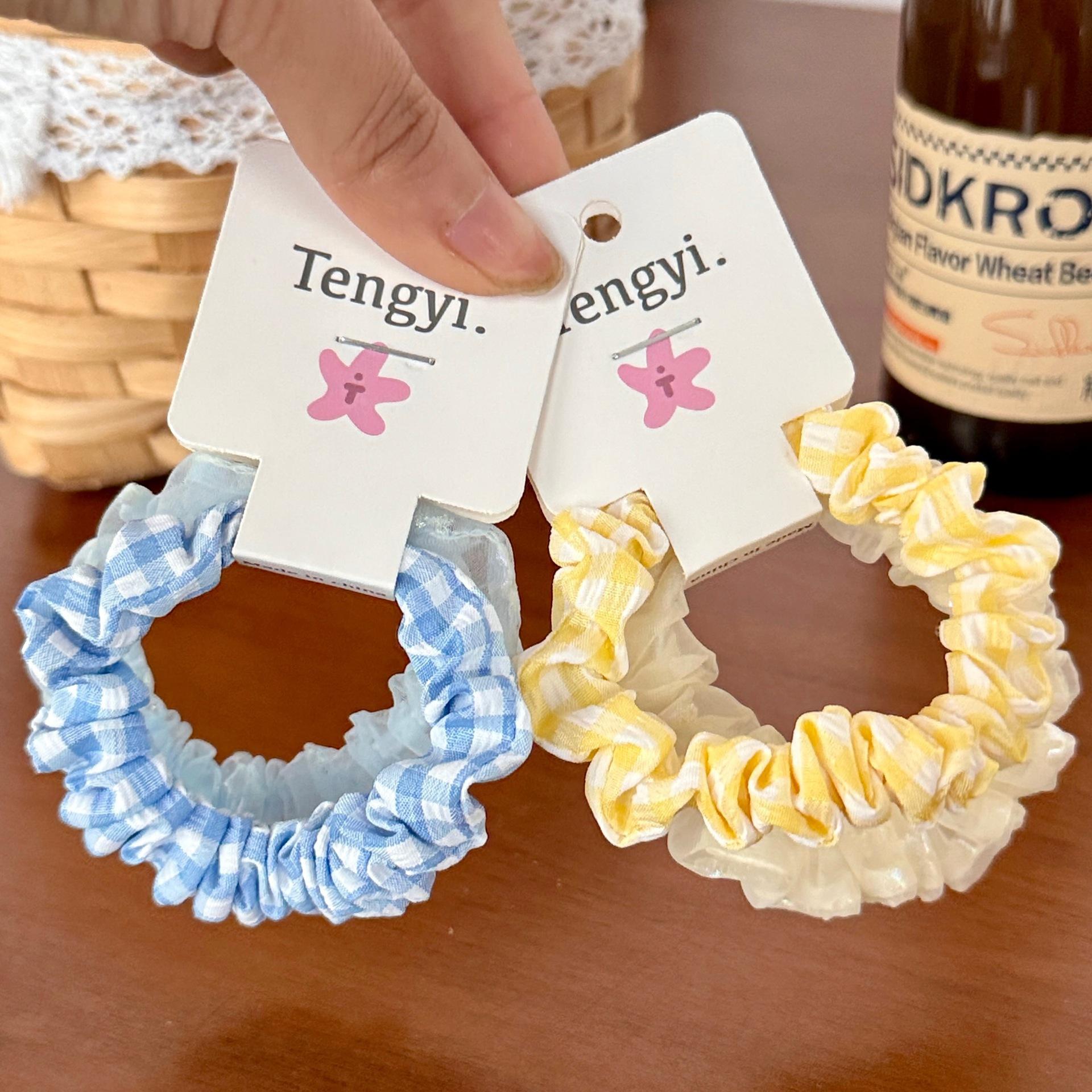 Anillo para el cabello de malla a cuadros para el intestino delgado, traje pequeño y fresco, tocado de cuerda para el cabello, accesorio para el cabello de cuerda para el cabello que combina con todo, paquete de 2