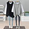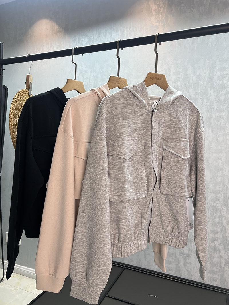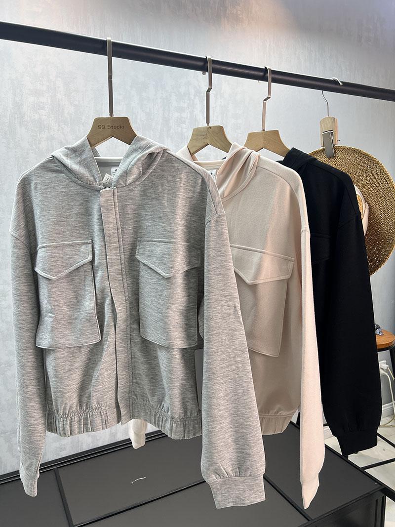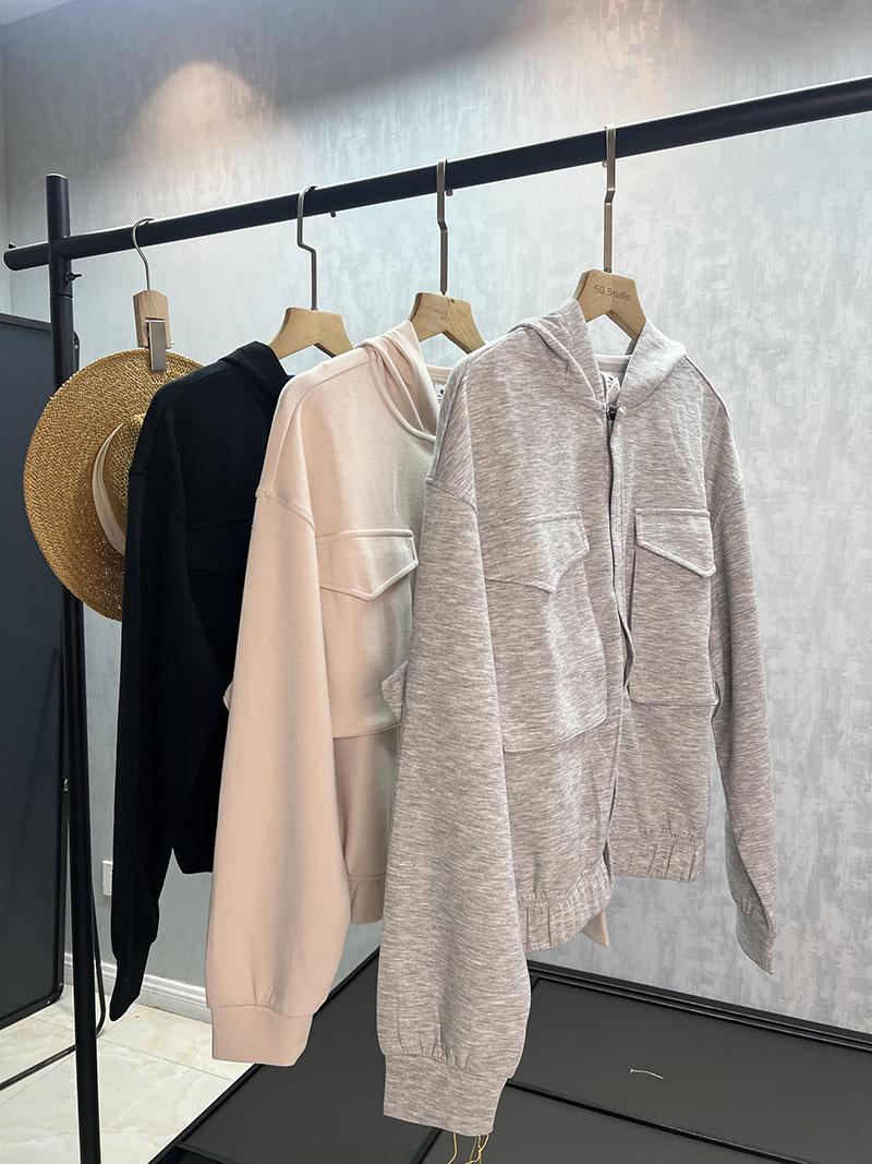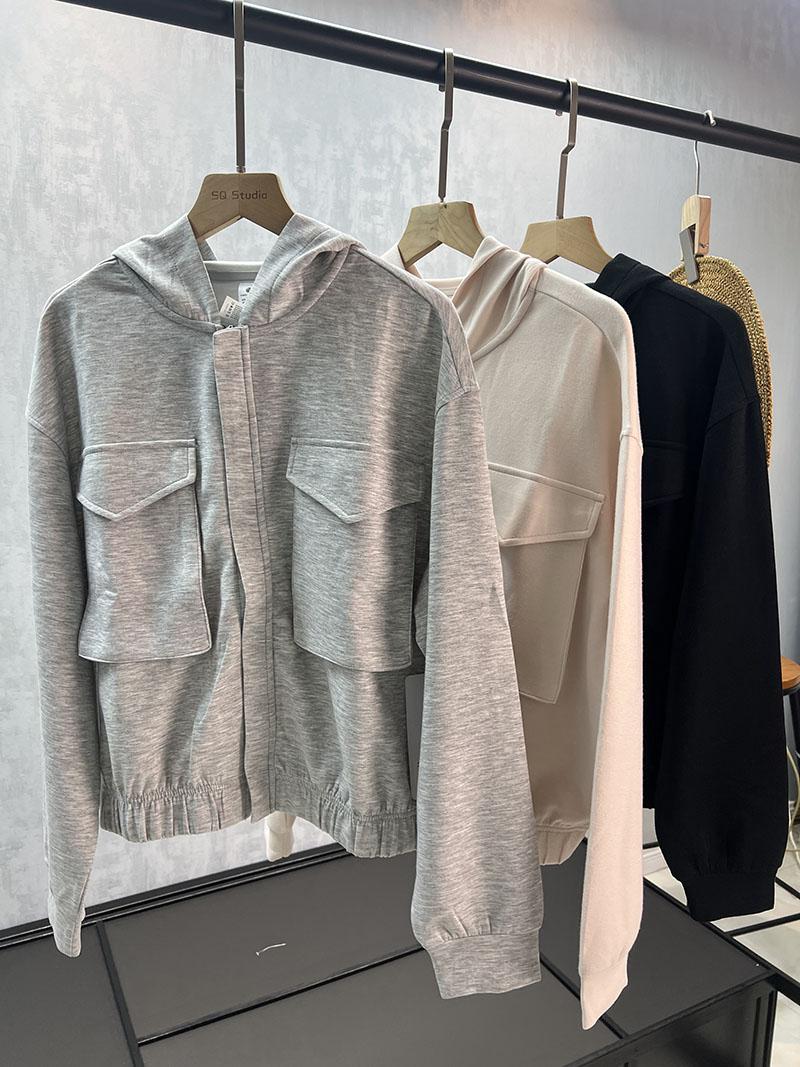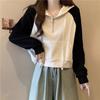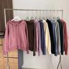 Sei jauiq2025 Primavera y Otoño Nuevo Suéter Cárdigan Corto con Cremallera y Capucha Combinable Informal Suelto para Mujer