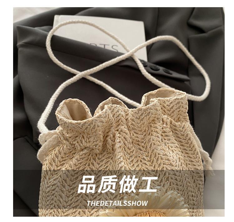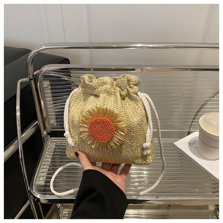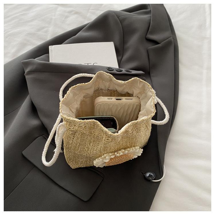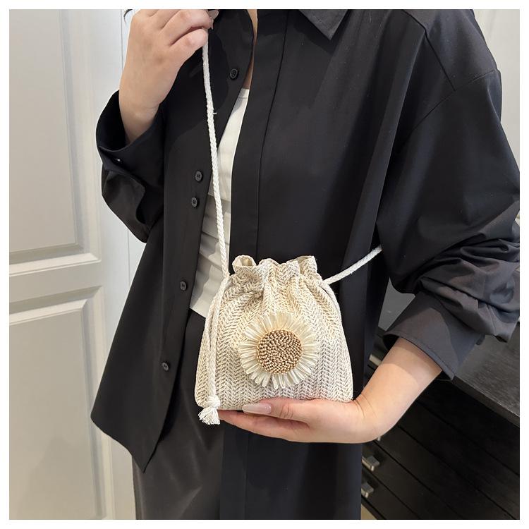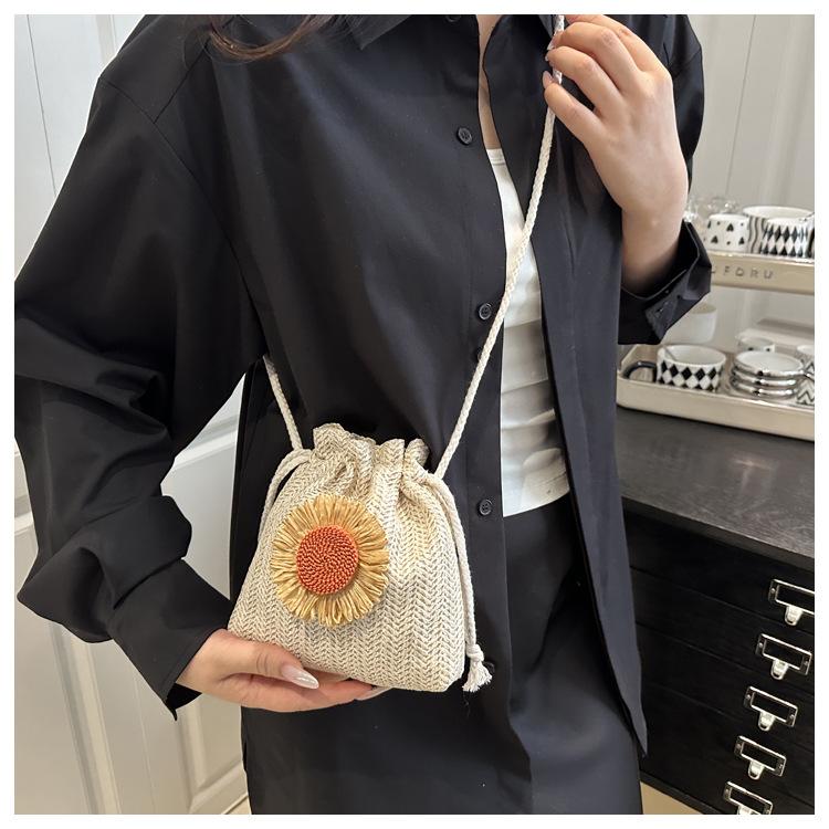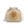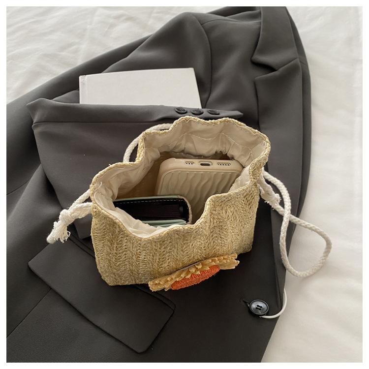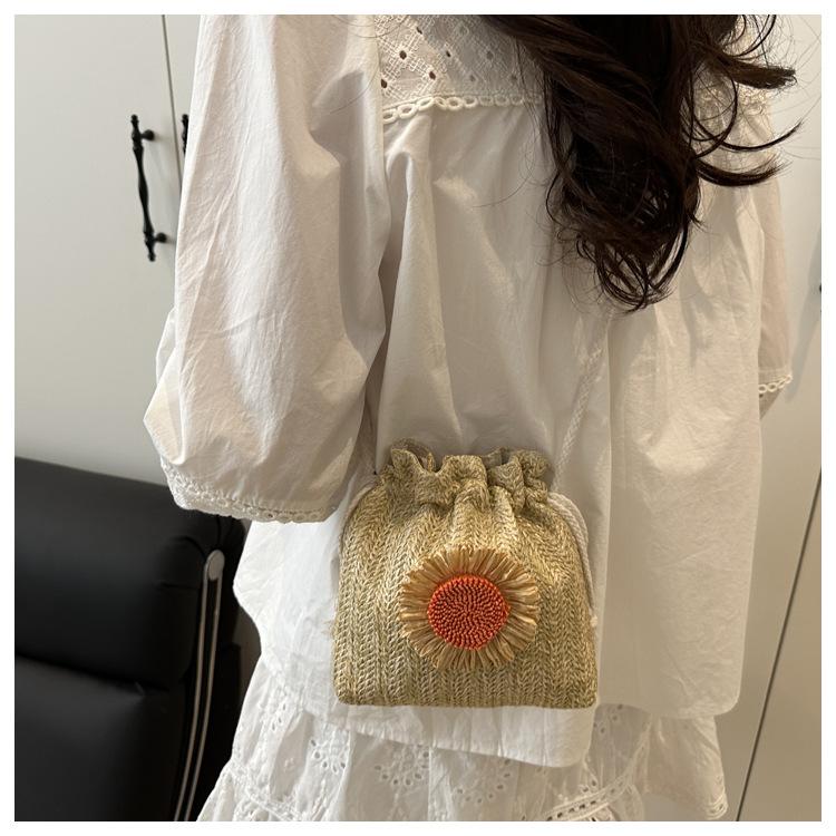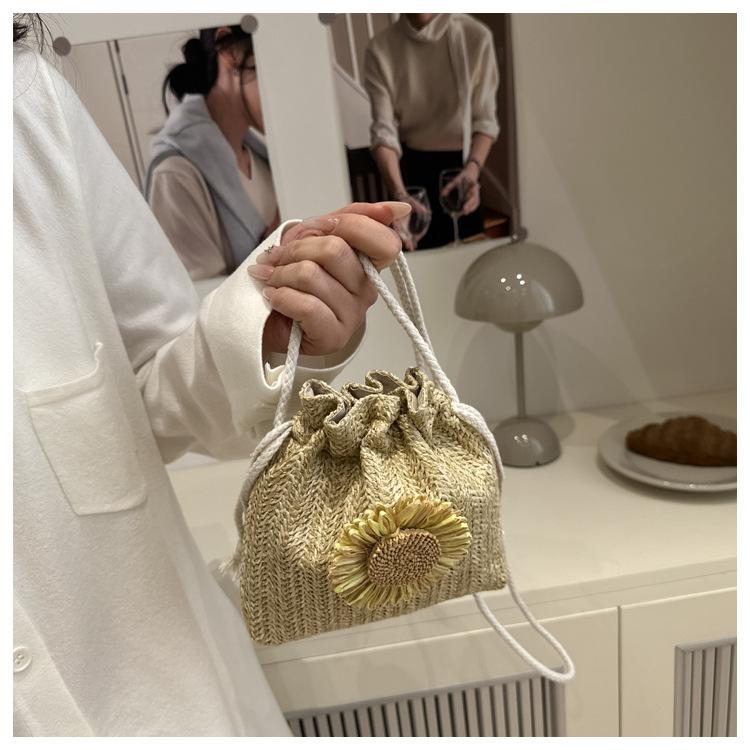 Bolso de paja popular de verano, bolso pequeño con flores para mujer, bolso estilo cubo estilo occidental, bolso tejido para vacaciones en la playa, nuevo 2025