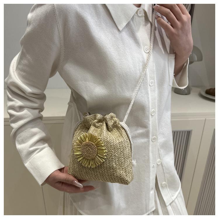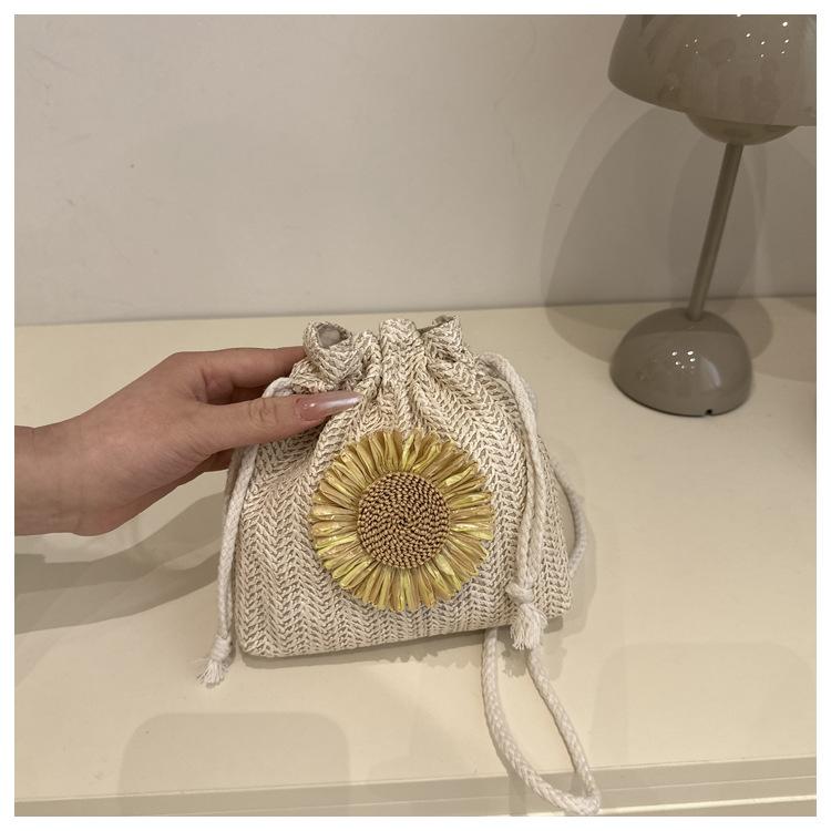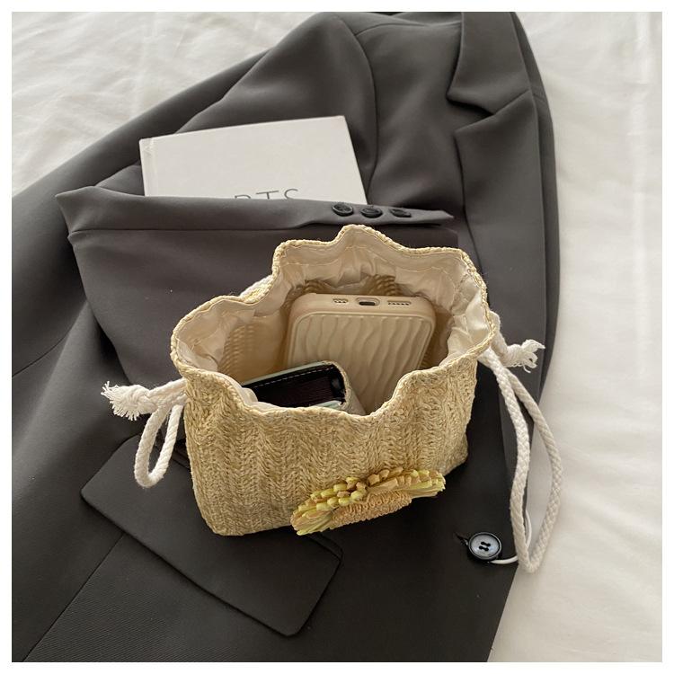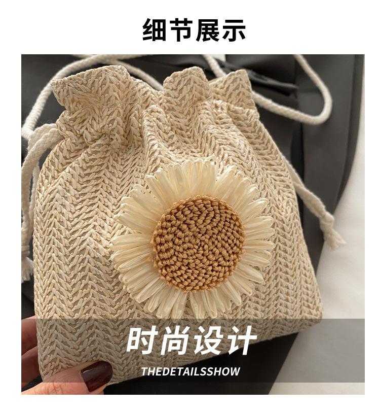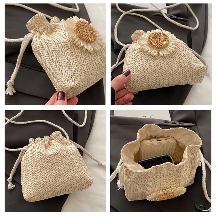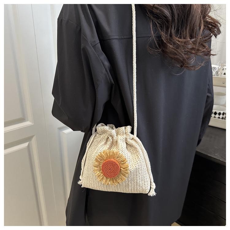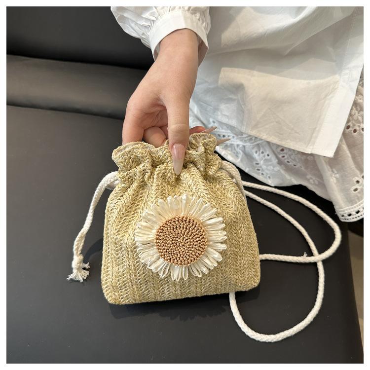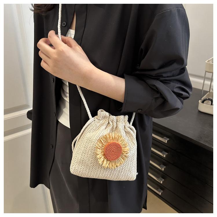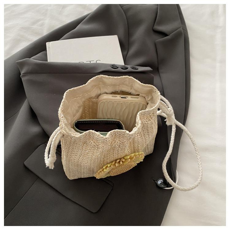 Bolso de paja popular de verano, bolso pequeño con flores para mujer, bolso estilo cubo estilo occidental, bolso tejido para vacaciones en la playa, nuevo 2025