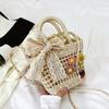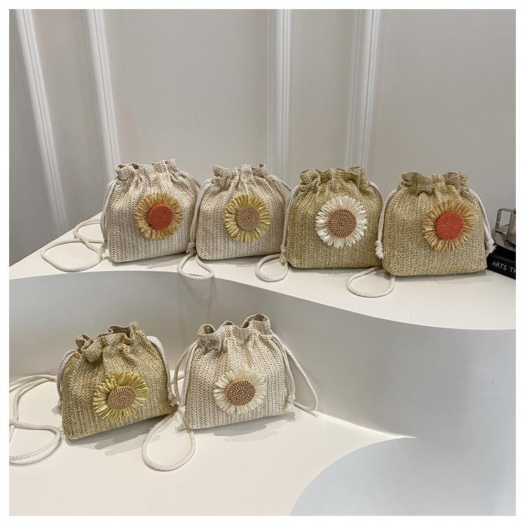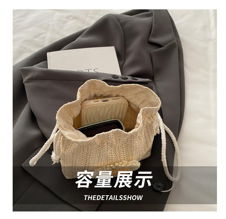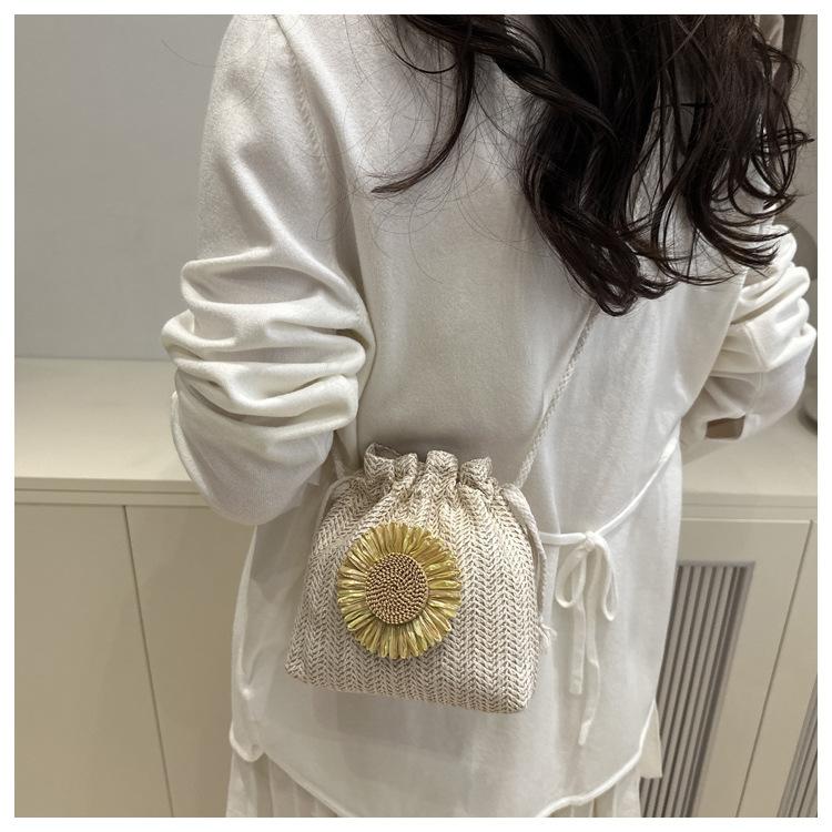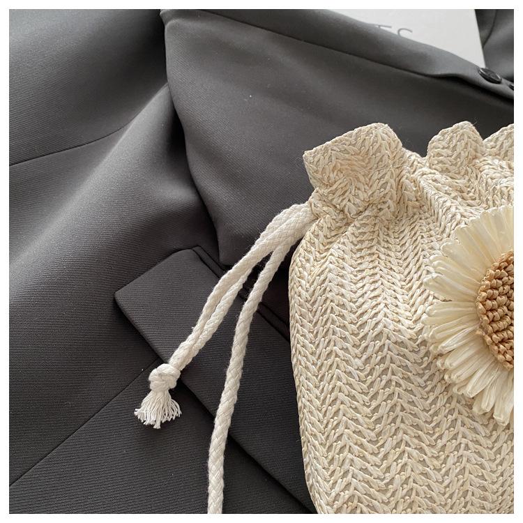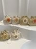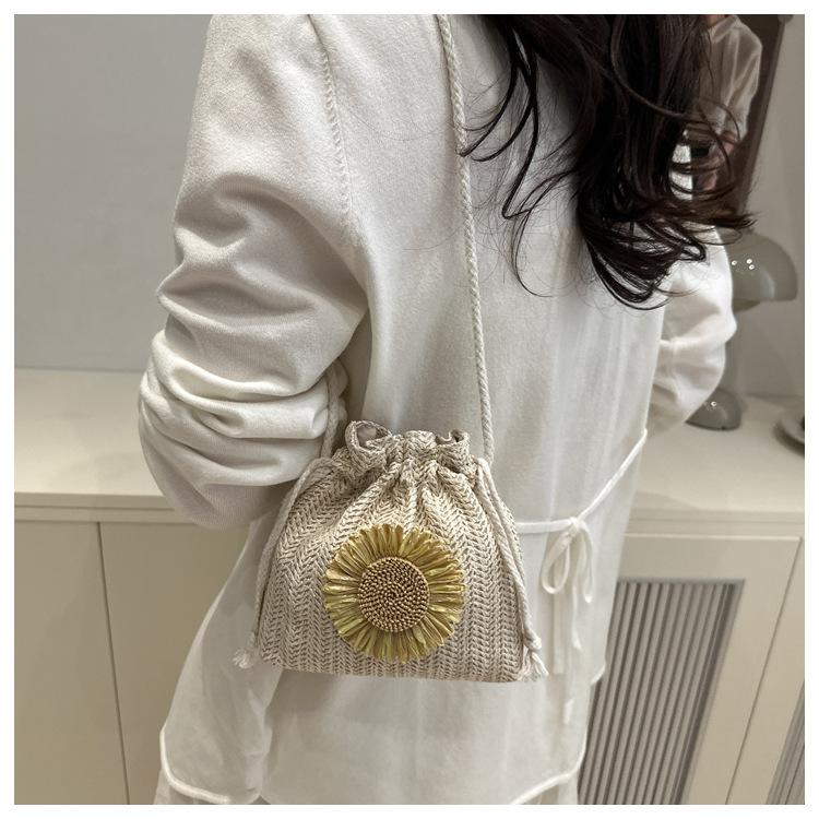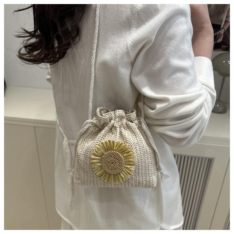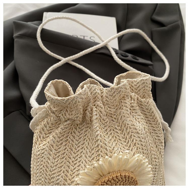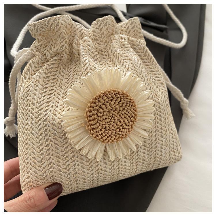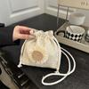 Bolso de paja popular de verano, bolso pequeño con flores para mujer, bolso estilo cubo estilo occidental, bolso tejido para vacaciones en la playa, nuevo 2025