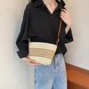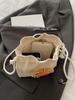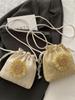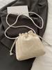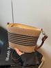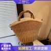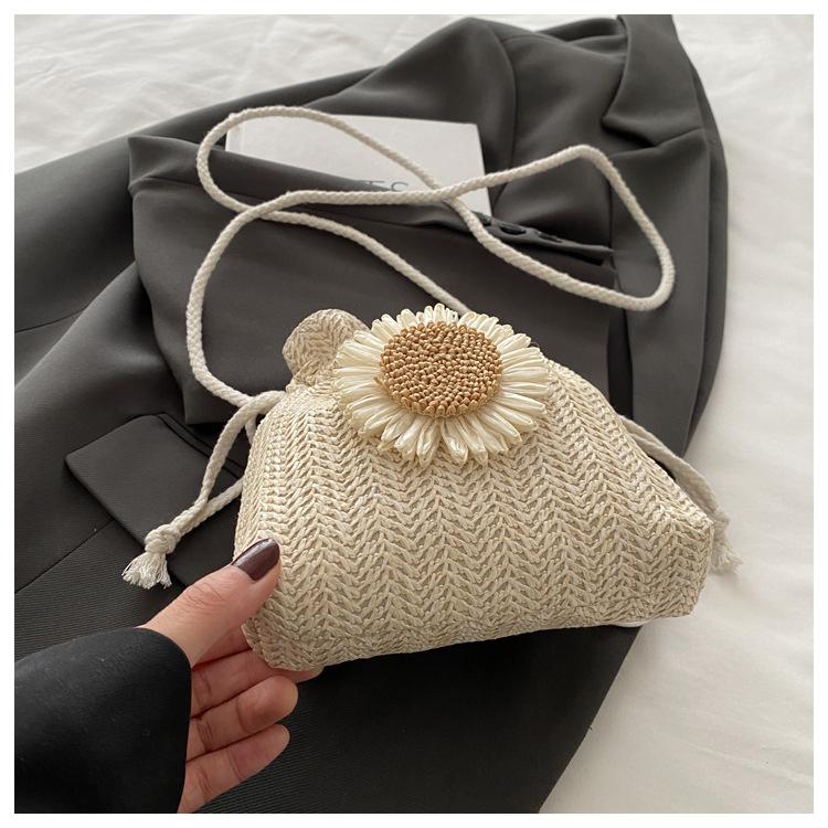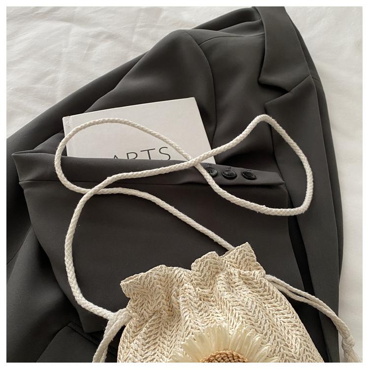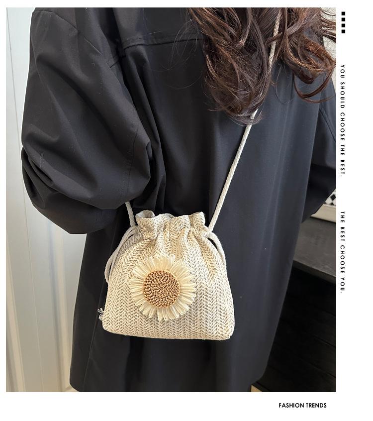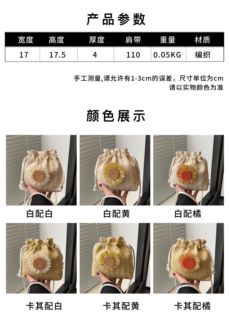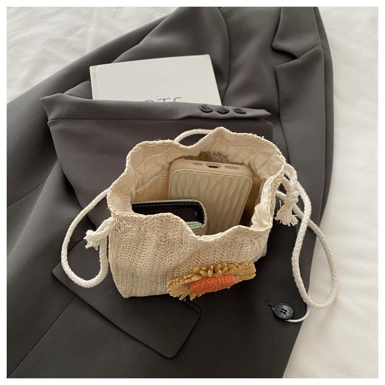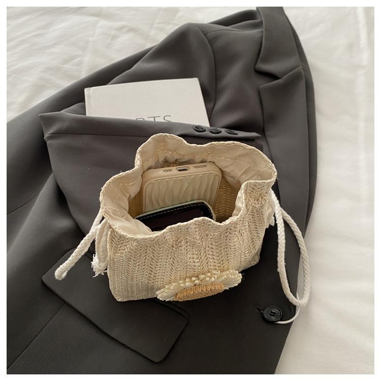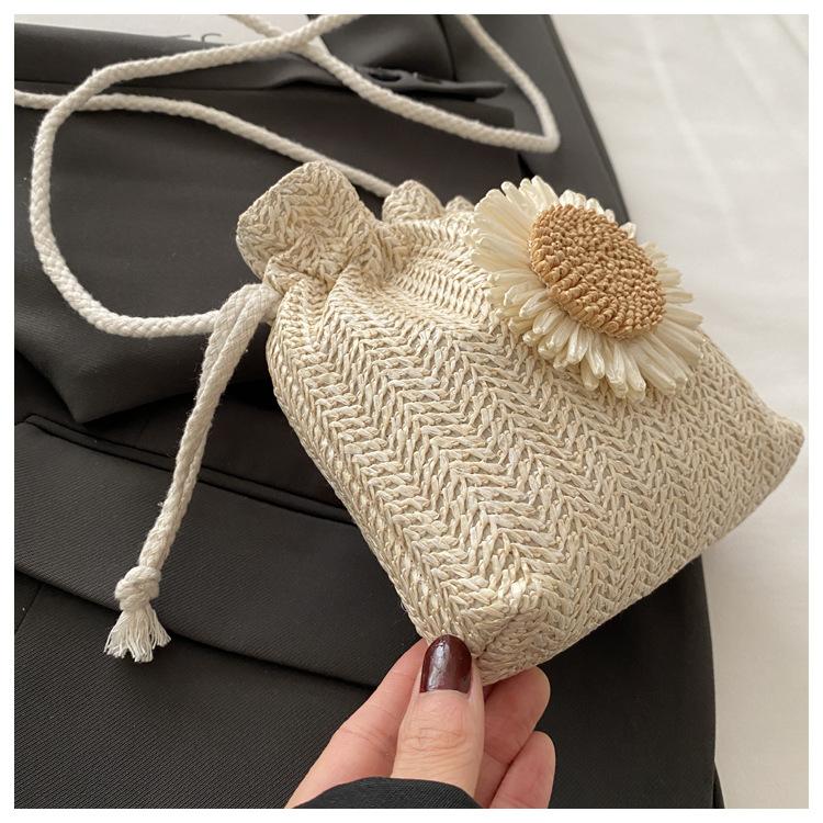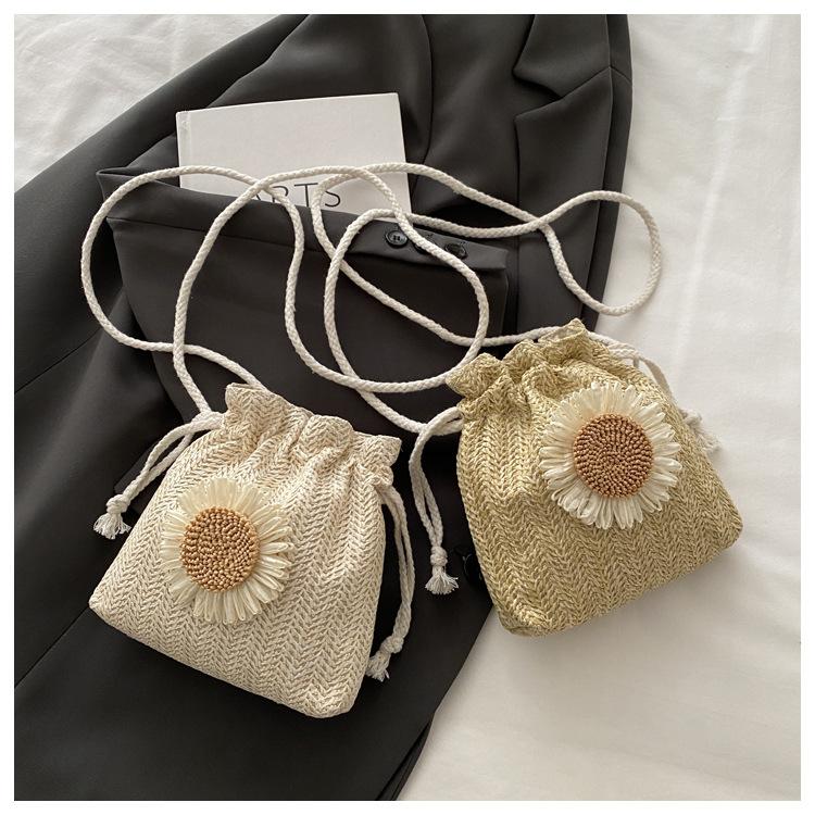 Bolso de paja popular de verano, bolso pequeño con flores para mujer, bolso estilo cubo estilo occidental, bolso tejido para vacaciones en la playa, nuevo 2025