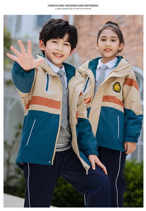 Traje de tres piezas de uniforme de primaria ropa de jardín de infancia otoño e invierno cortavientos cálido traje de ropa de clase estudiantes de secundaria