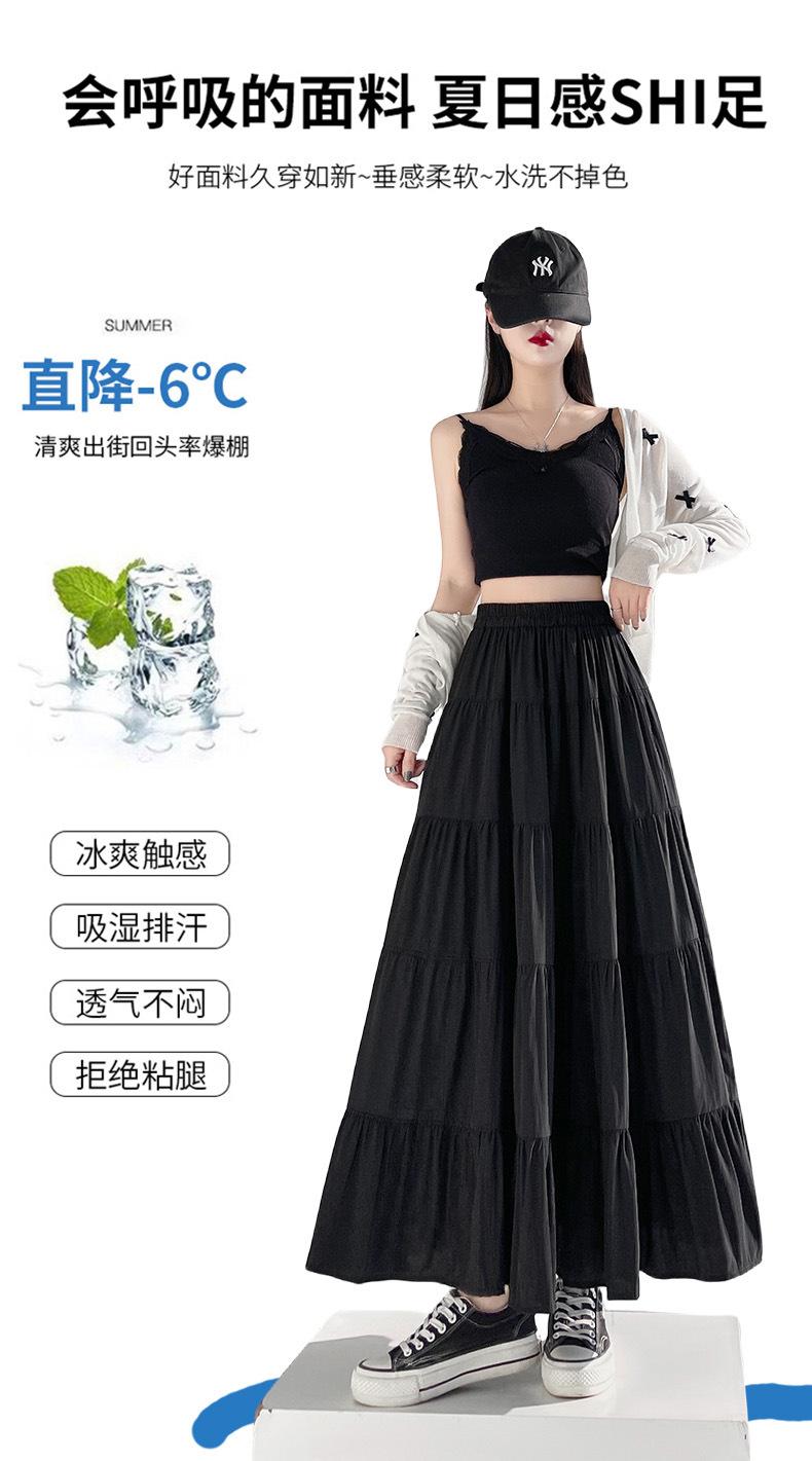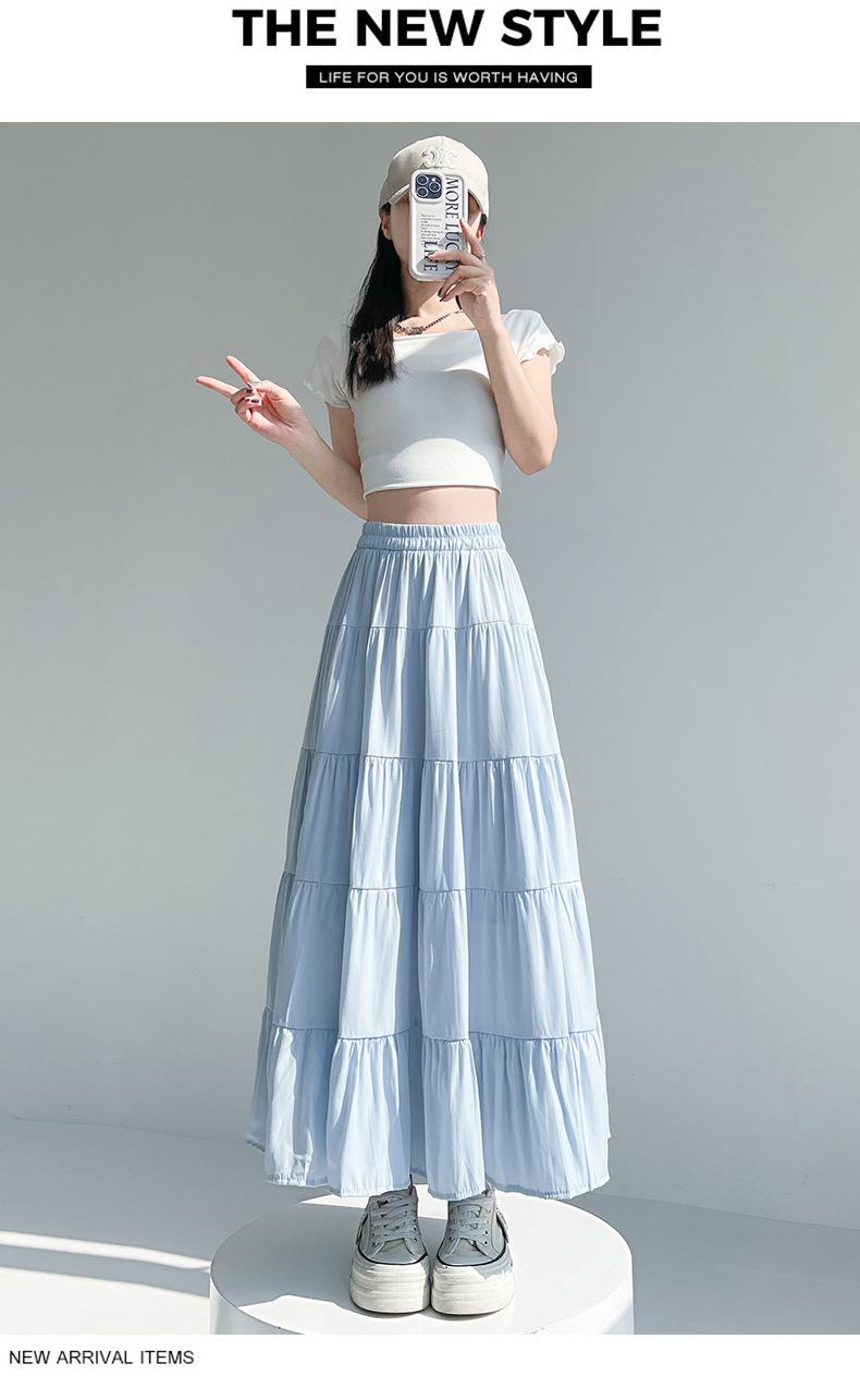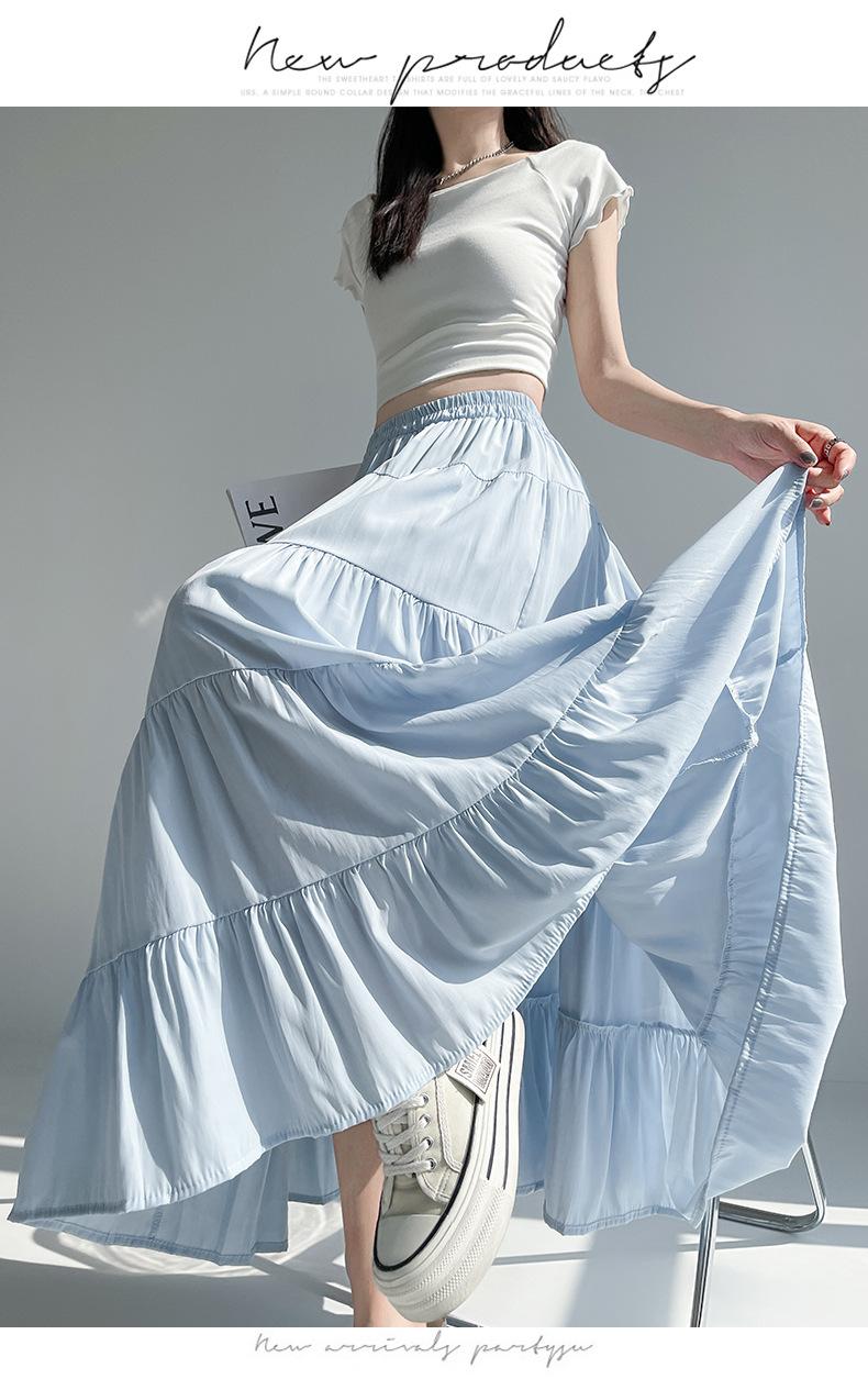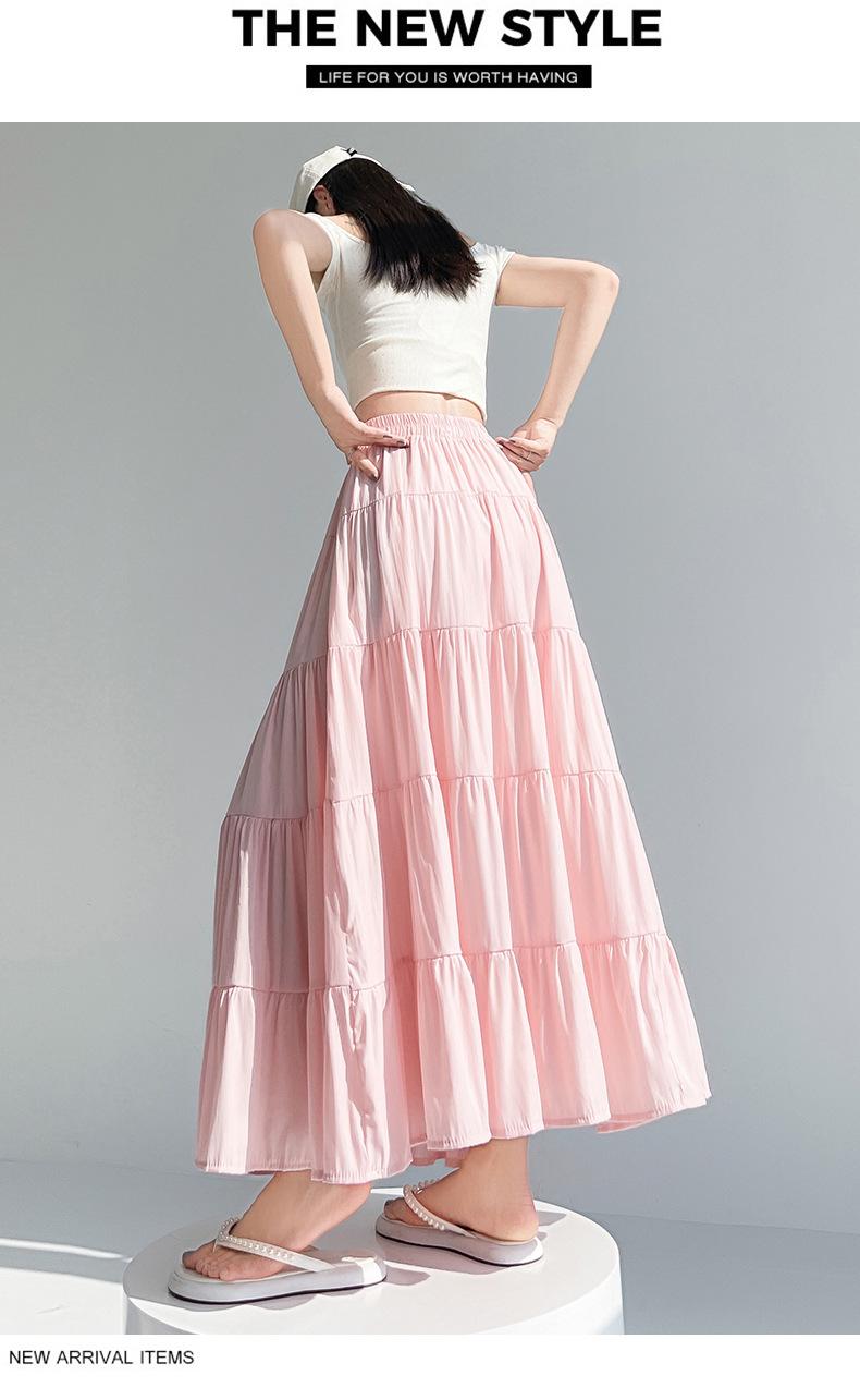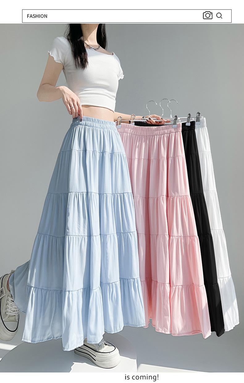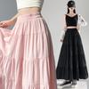 Falda de Pastel Elegante Suave para Mujer 2023 Nuevo Verano Look Adelgazante de Cintura Alta Versátil Falda Paraguas de Vuelo Amplio Falda Larga Línea A